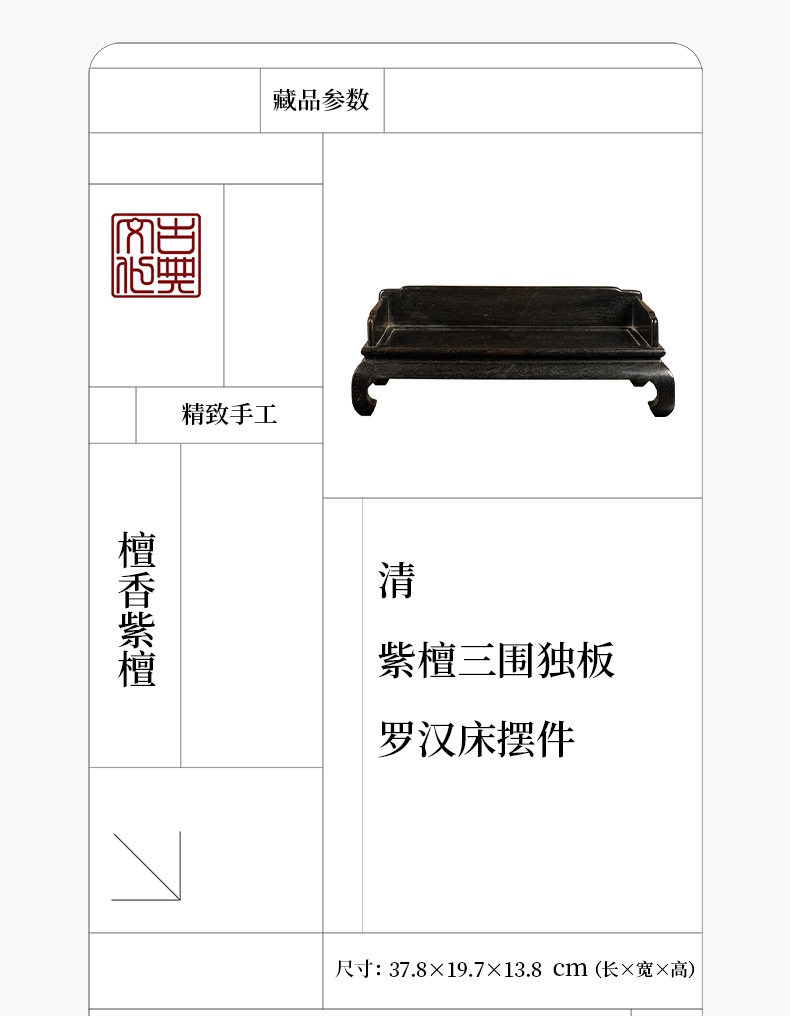 清 紫檀三围独板罗汉床摆件