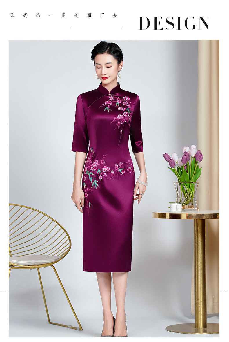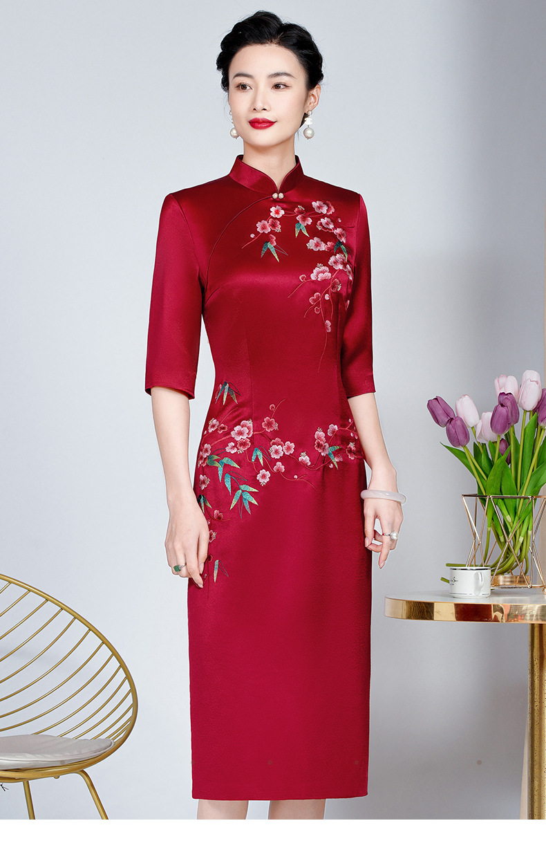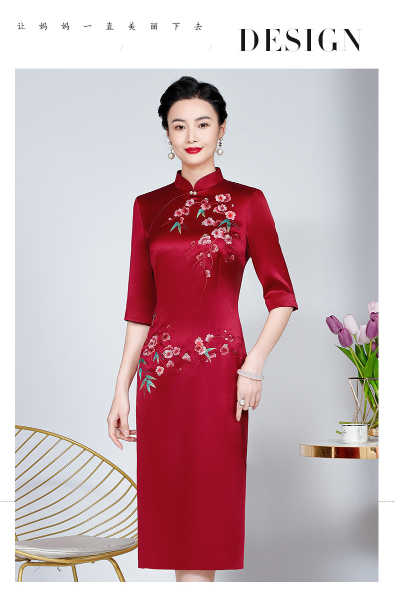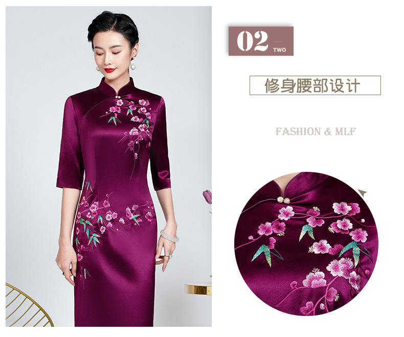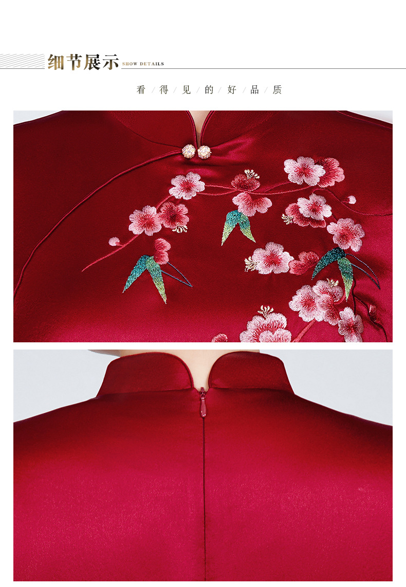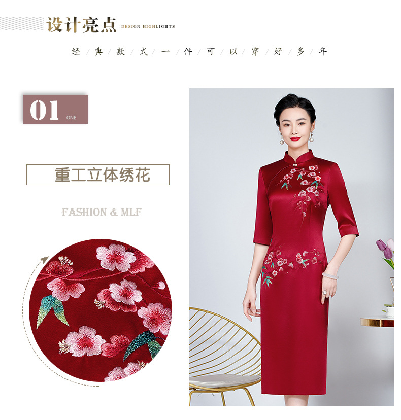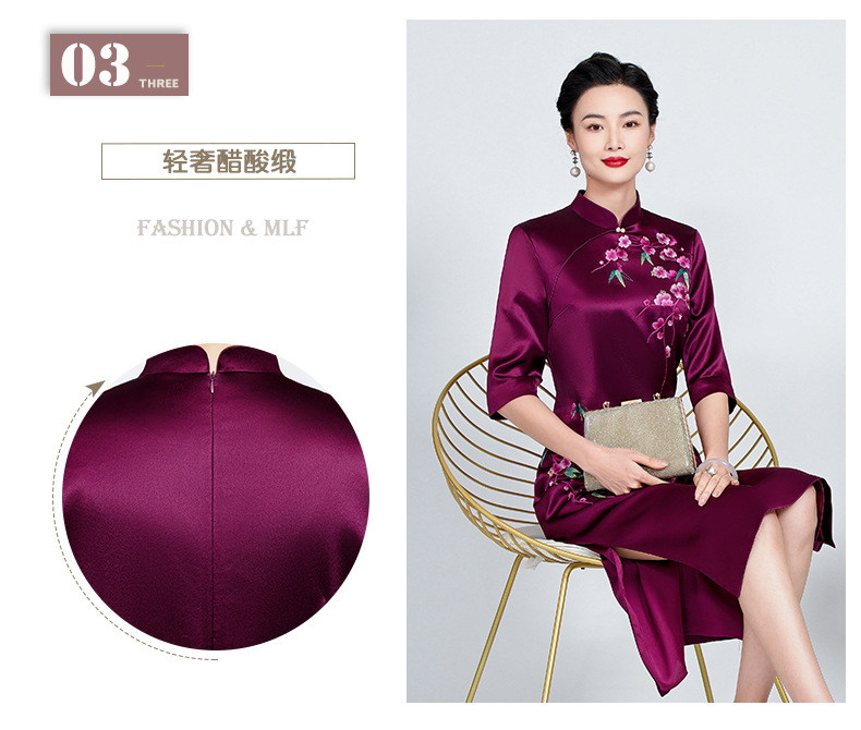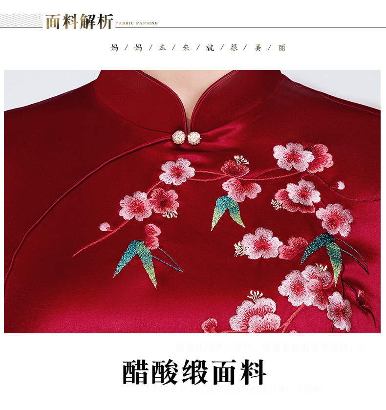 MLY旗袍春夏醋酸缎刺绣女复古改良旗袍婚礼喜婆婆优雅宴会