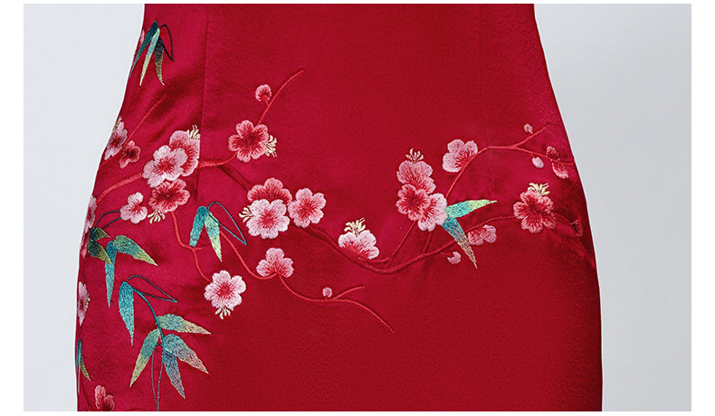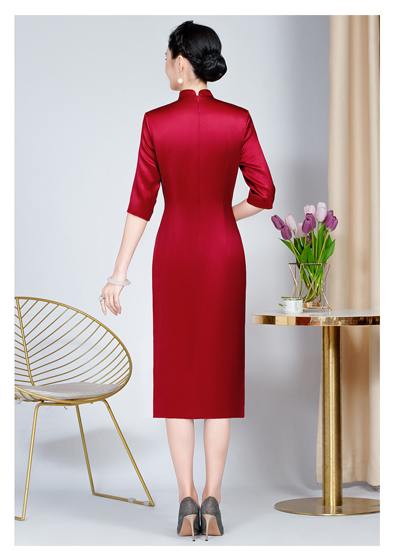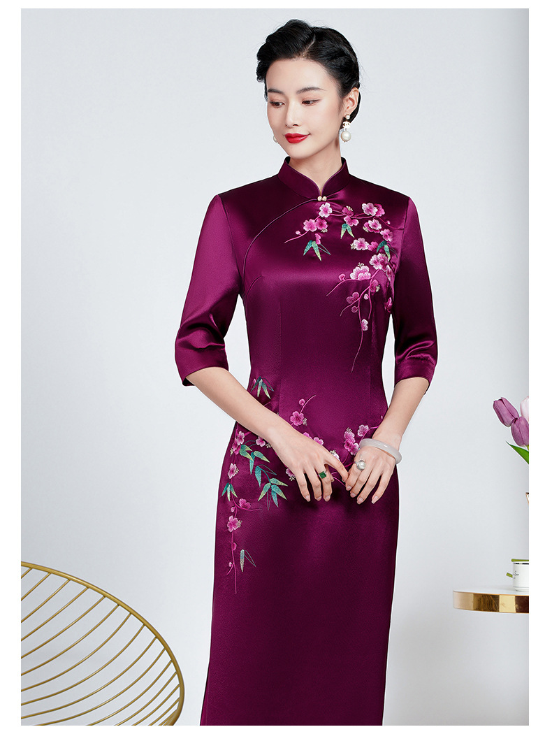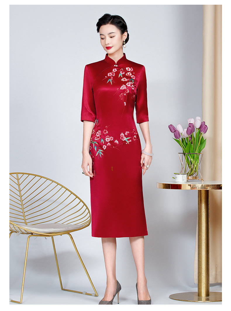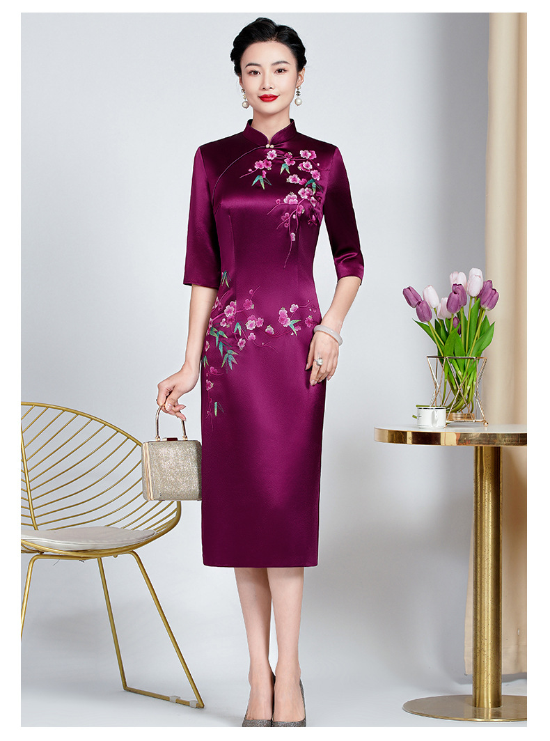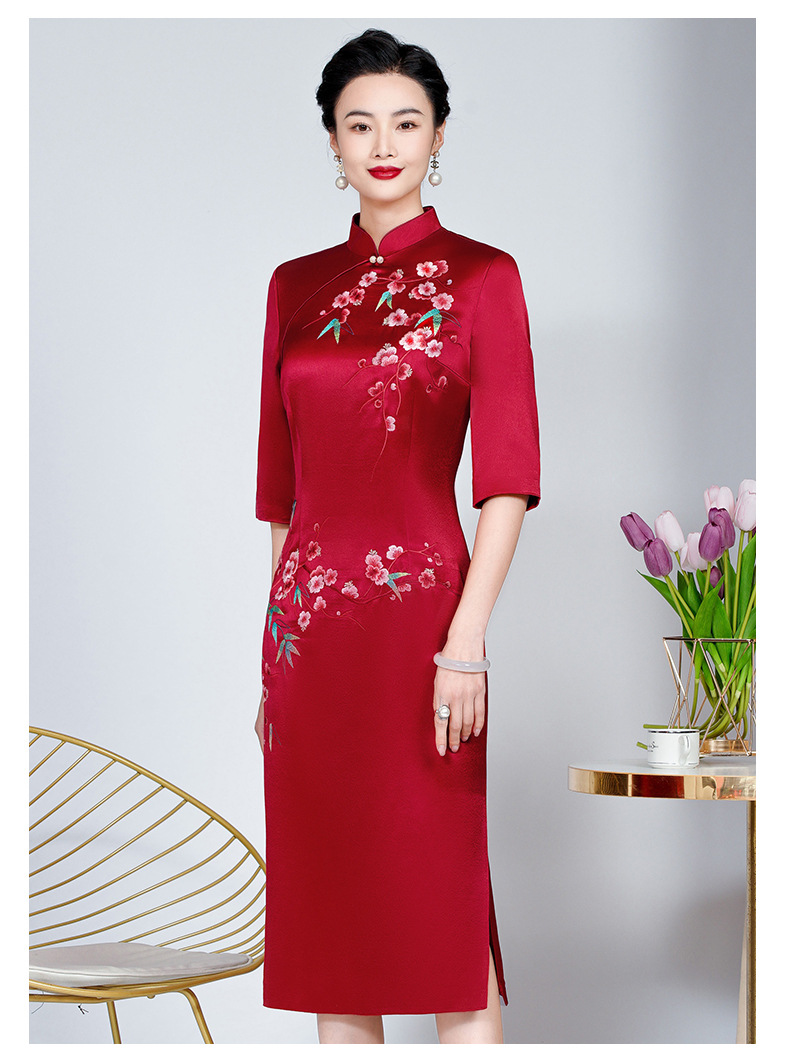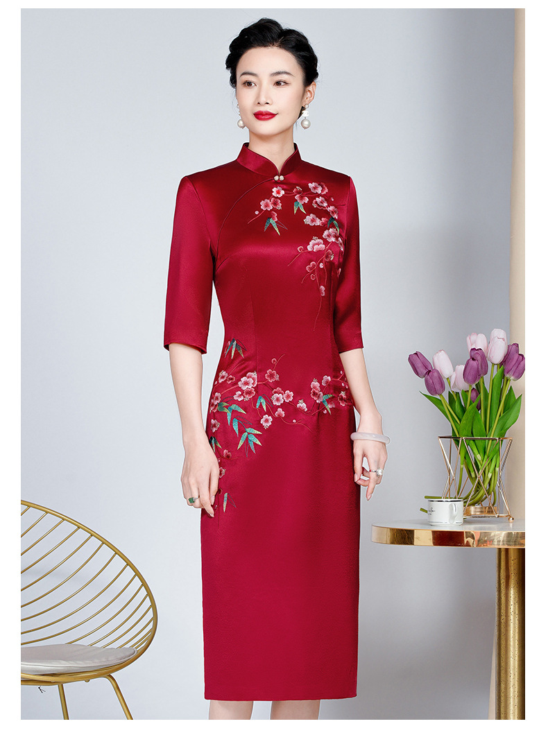 MLY旗袍春夏醋酸缎刺绣女复古改良旗袍婚礼喜婆婆优雅宴会