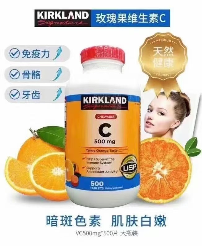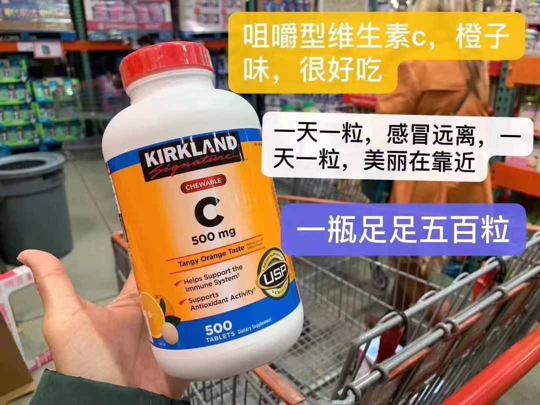 可以嚼的VC 🔥🔥🇺🇸美国kirkland橙味维生素C,🍊🍊很多成年人因疲劳导致感冒发烧的,平时就要多补充维生素,一个正常成年人所需的维生素C是200~300mg,每天只需要一片,就能补充身体所需的维生素。维生素C能增强抵抗力,促进铁的吸收,防止有坏血病等。😋这是嚼着吃很方便的,一瓶已经有500粒了!