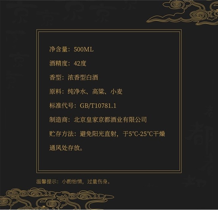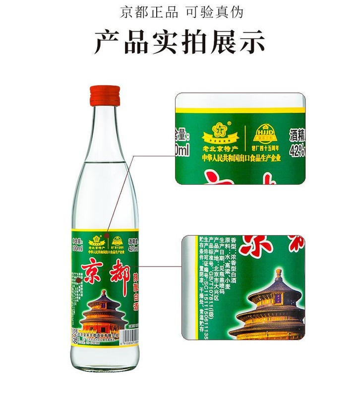 【推荐】京都 二锅头 陈酿42度 蓝色 浓香型 500ml *12【整箱装】