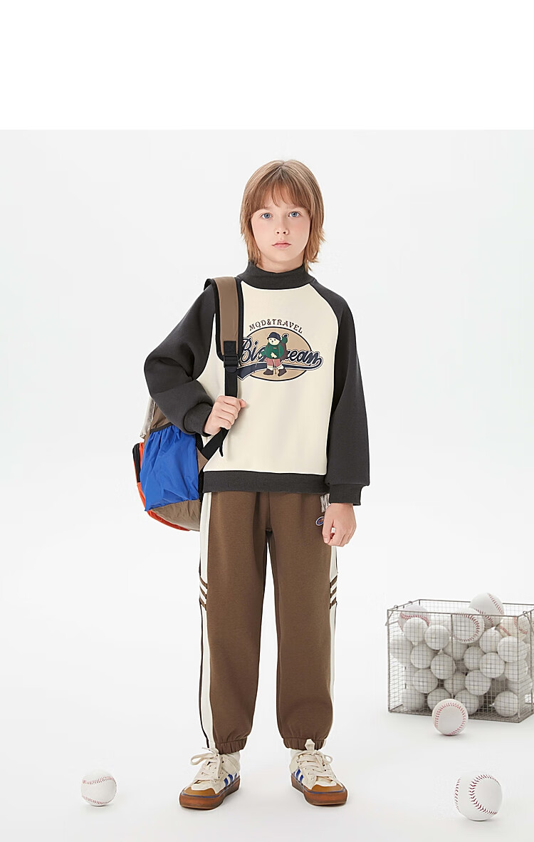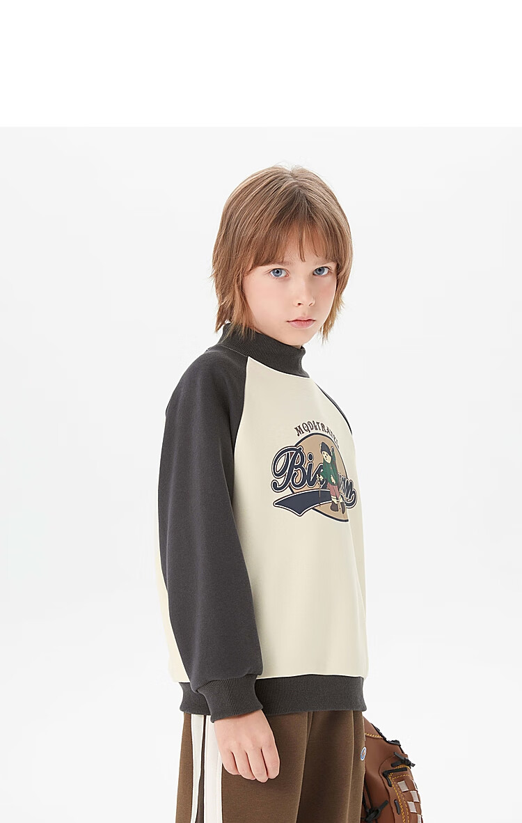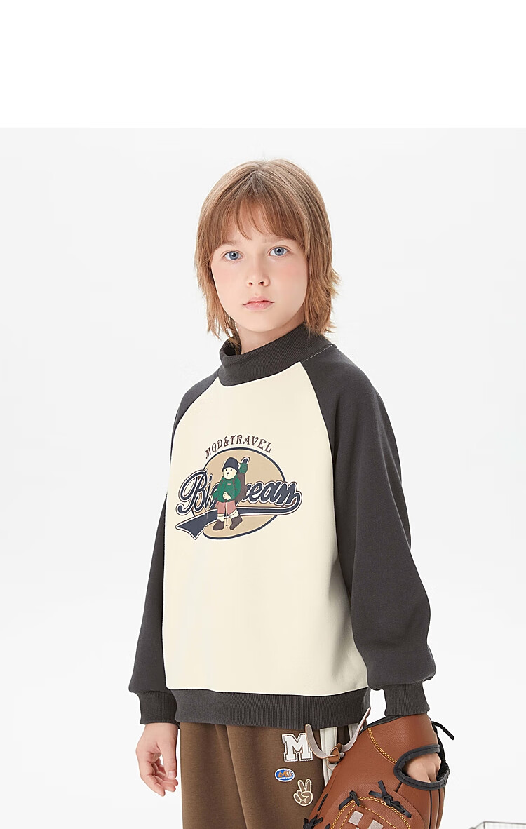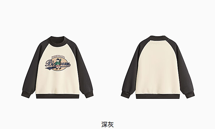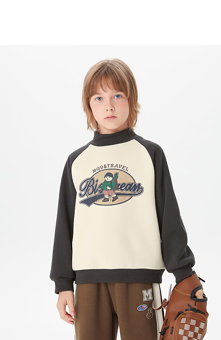 【MQD】童装男大童冬新款撞色插肩袖美式复古学院风加绒卫衣