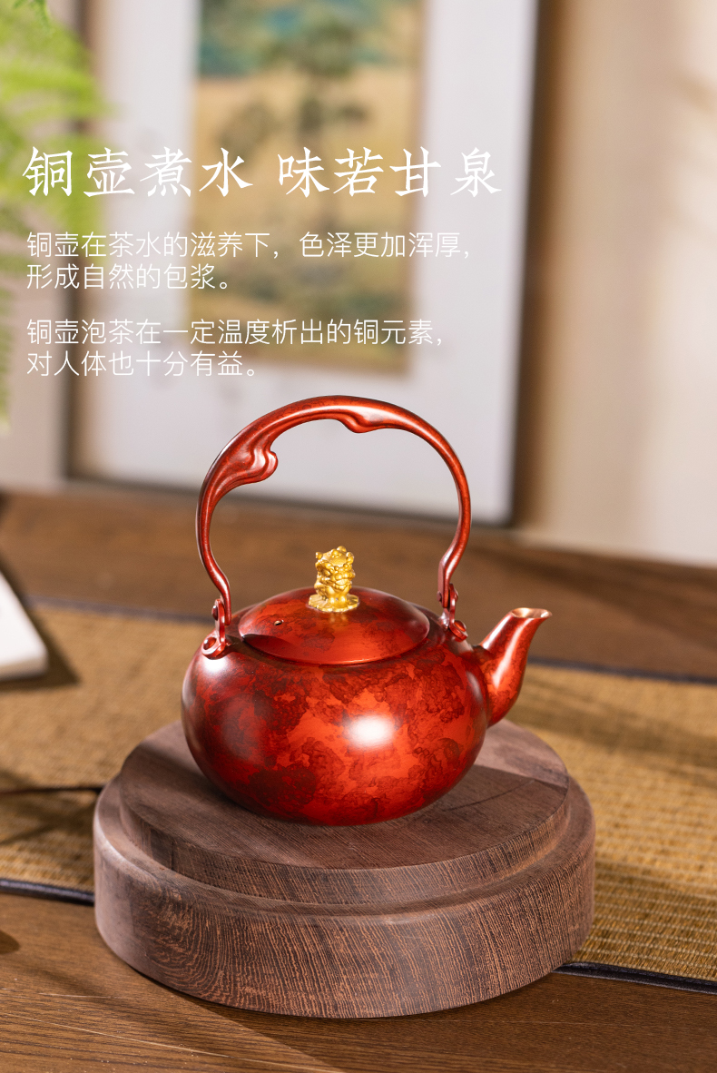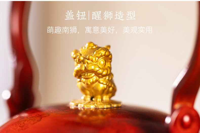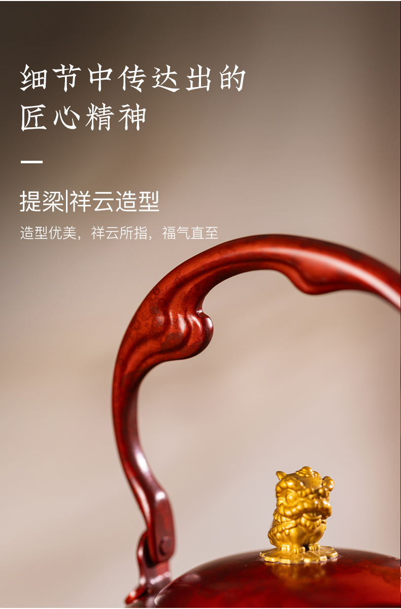 朱炳仁铜 一狮无忧壶 泡茶壶工夫茶 紫铜壶高端 送礼