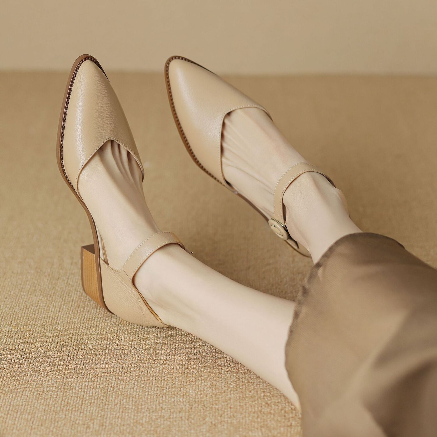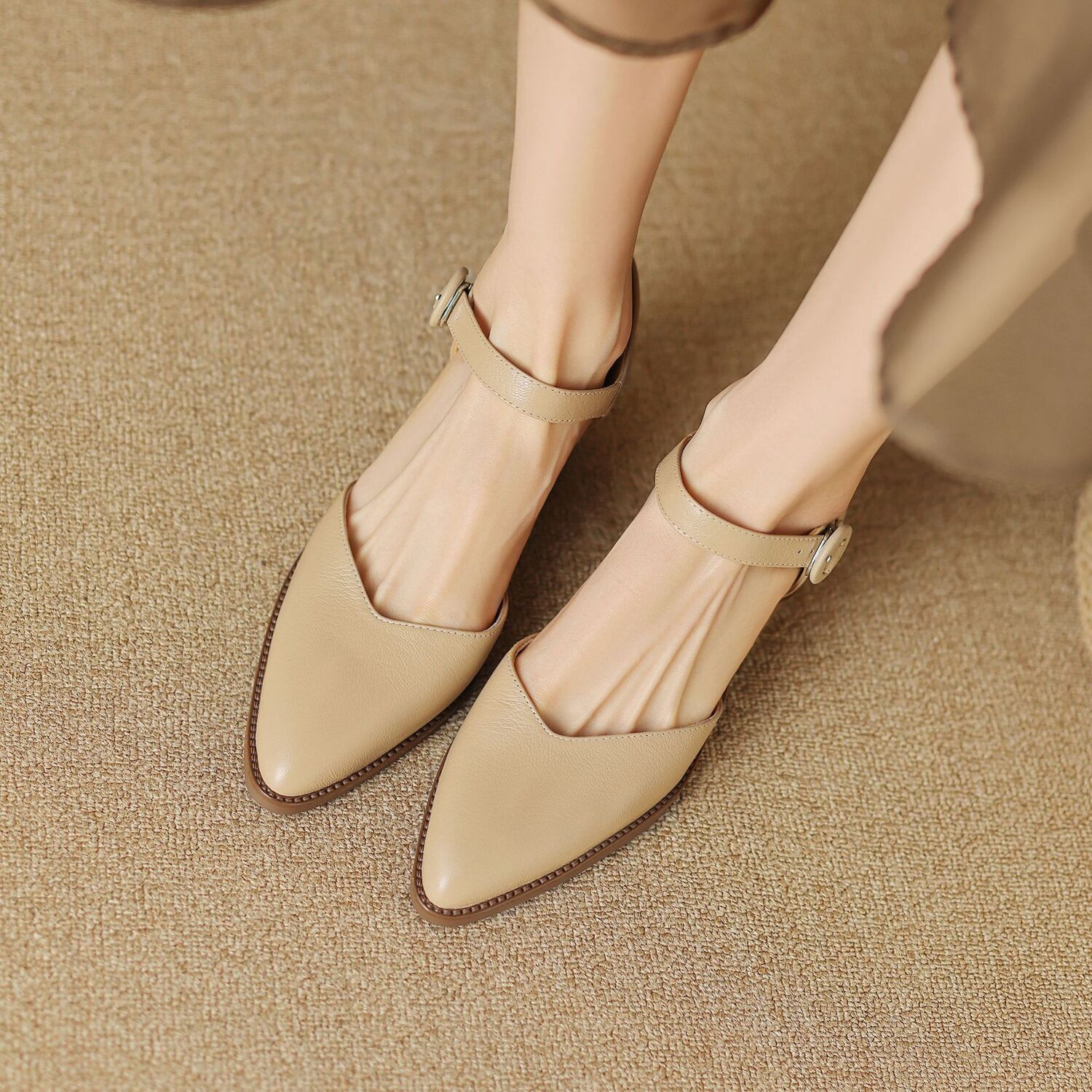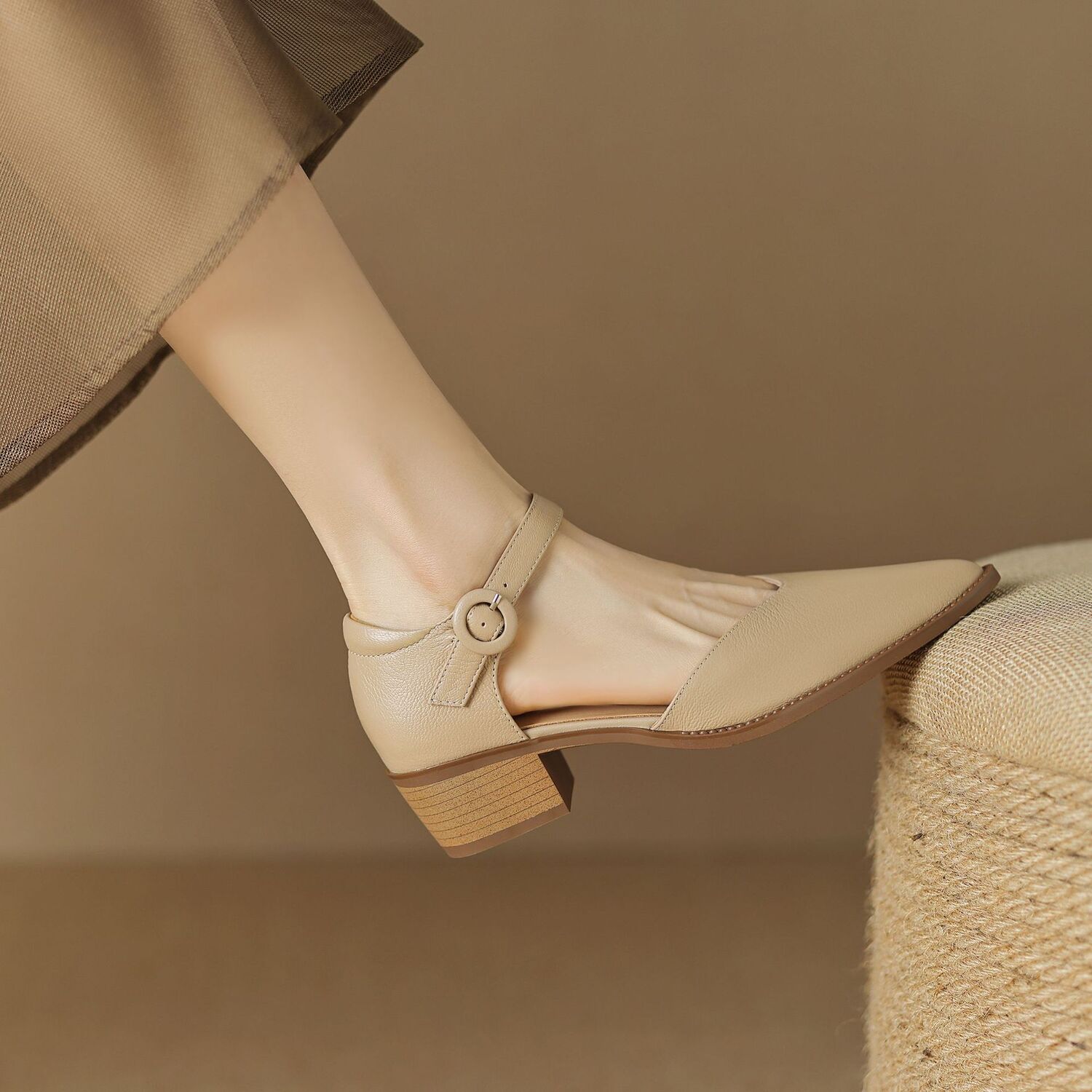 一字扣包头凉鞋,粗跟通勤凉鞋工作单鞋DTN-S6277