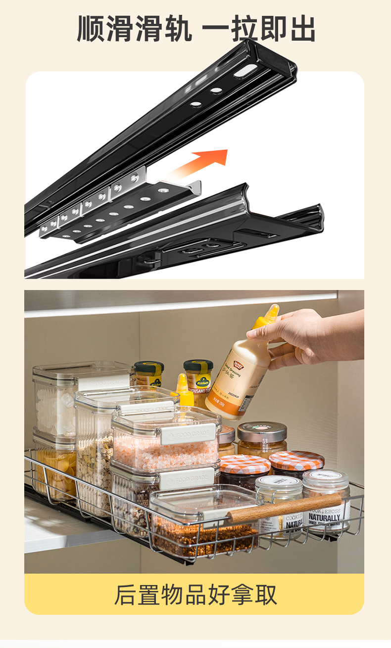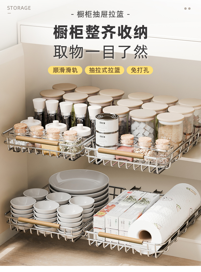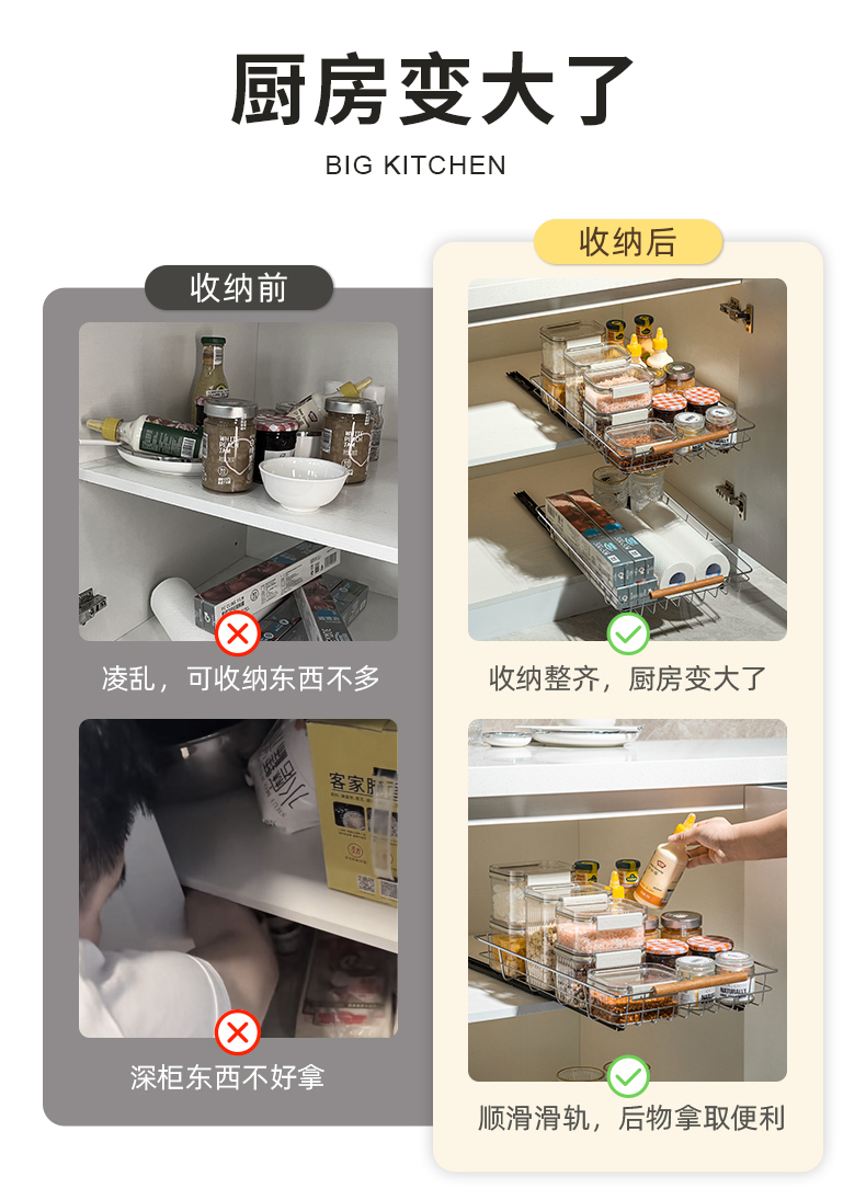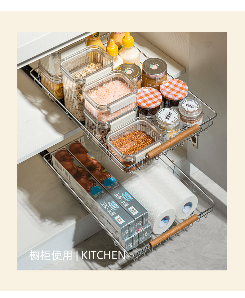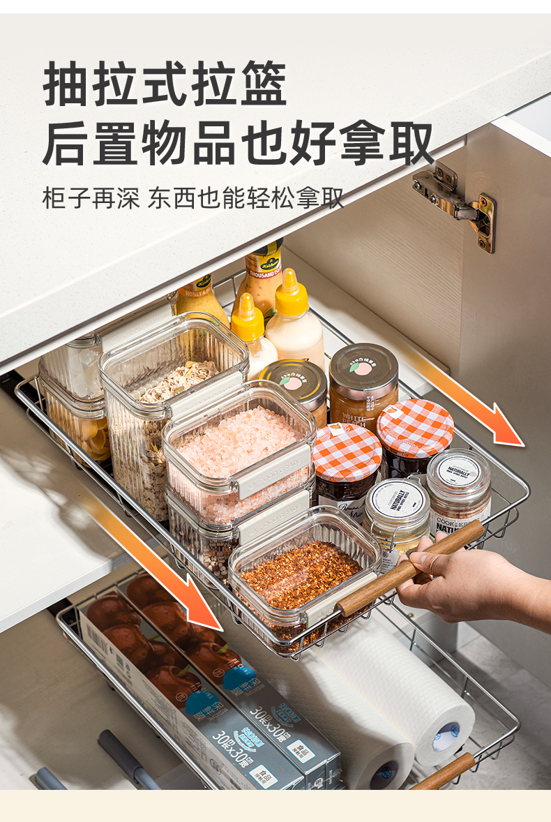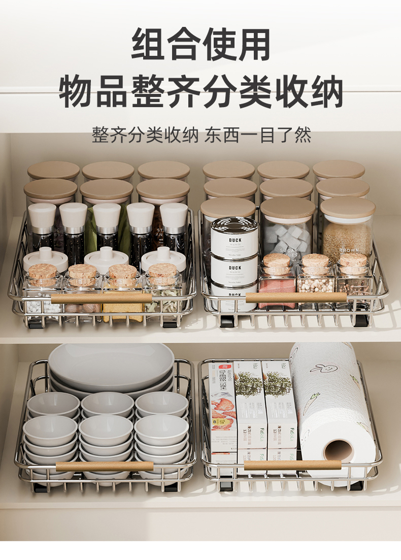 摩登主妇厨房多功能置物架抽屉式拉篮不锈钢调料品架子碗碟收纳架