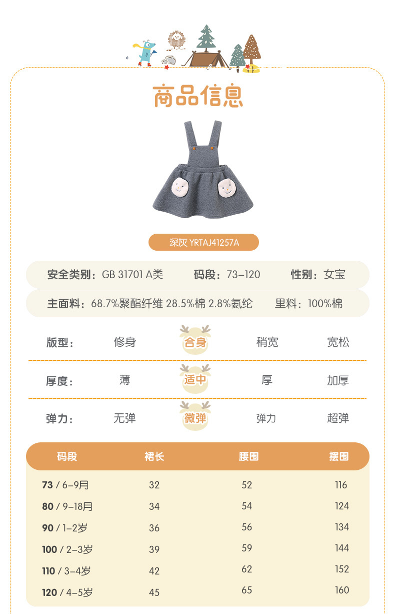 英氏女童超萌背带裙双肩带时尚连衣裙 秋冬款