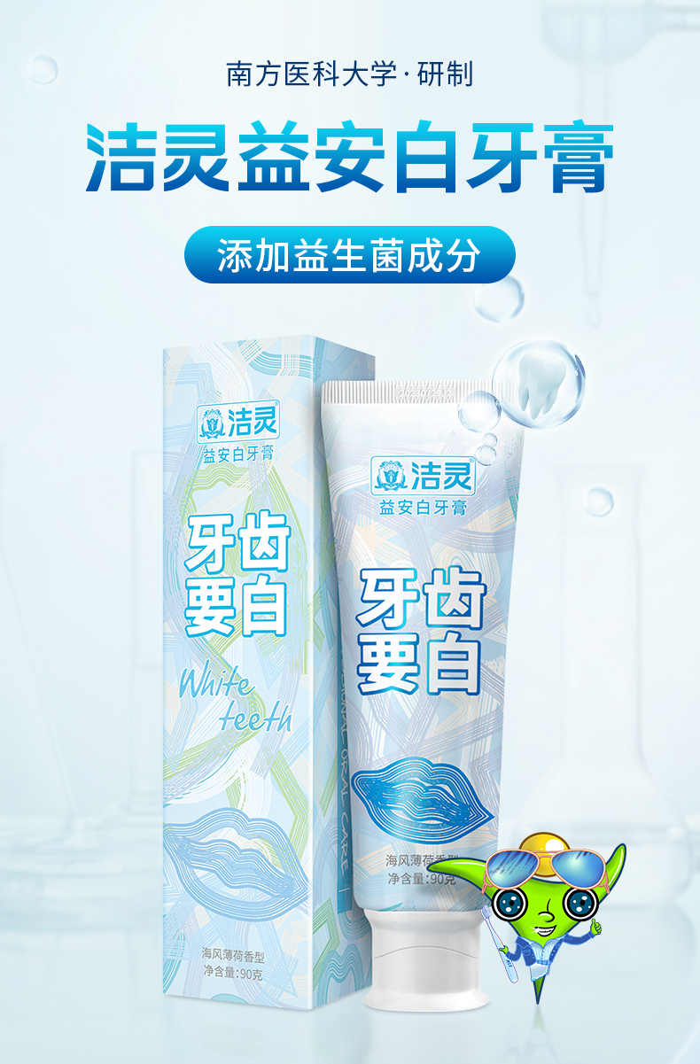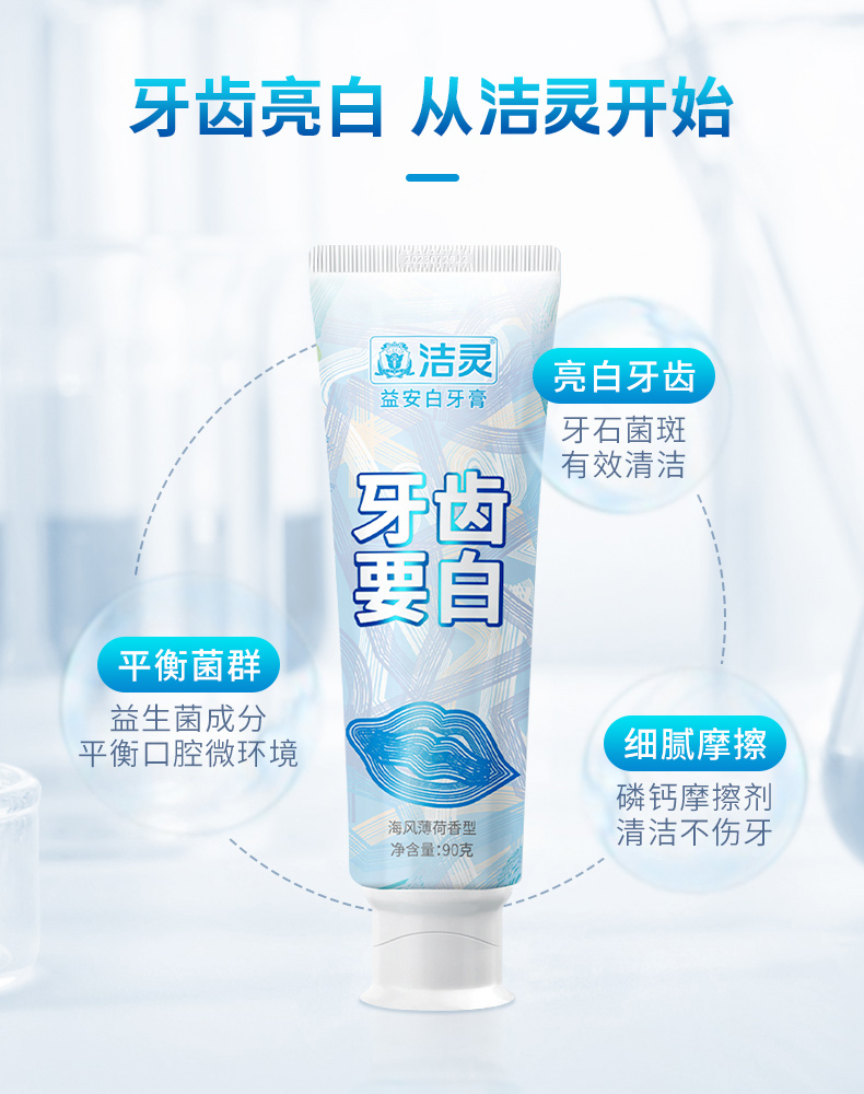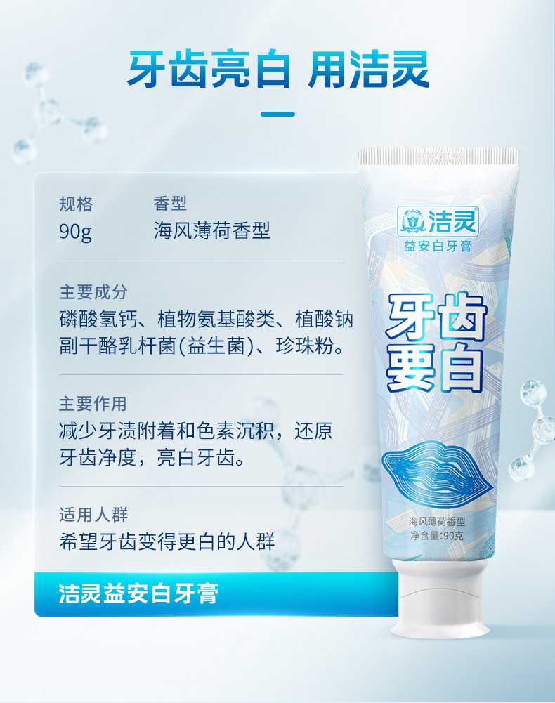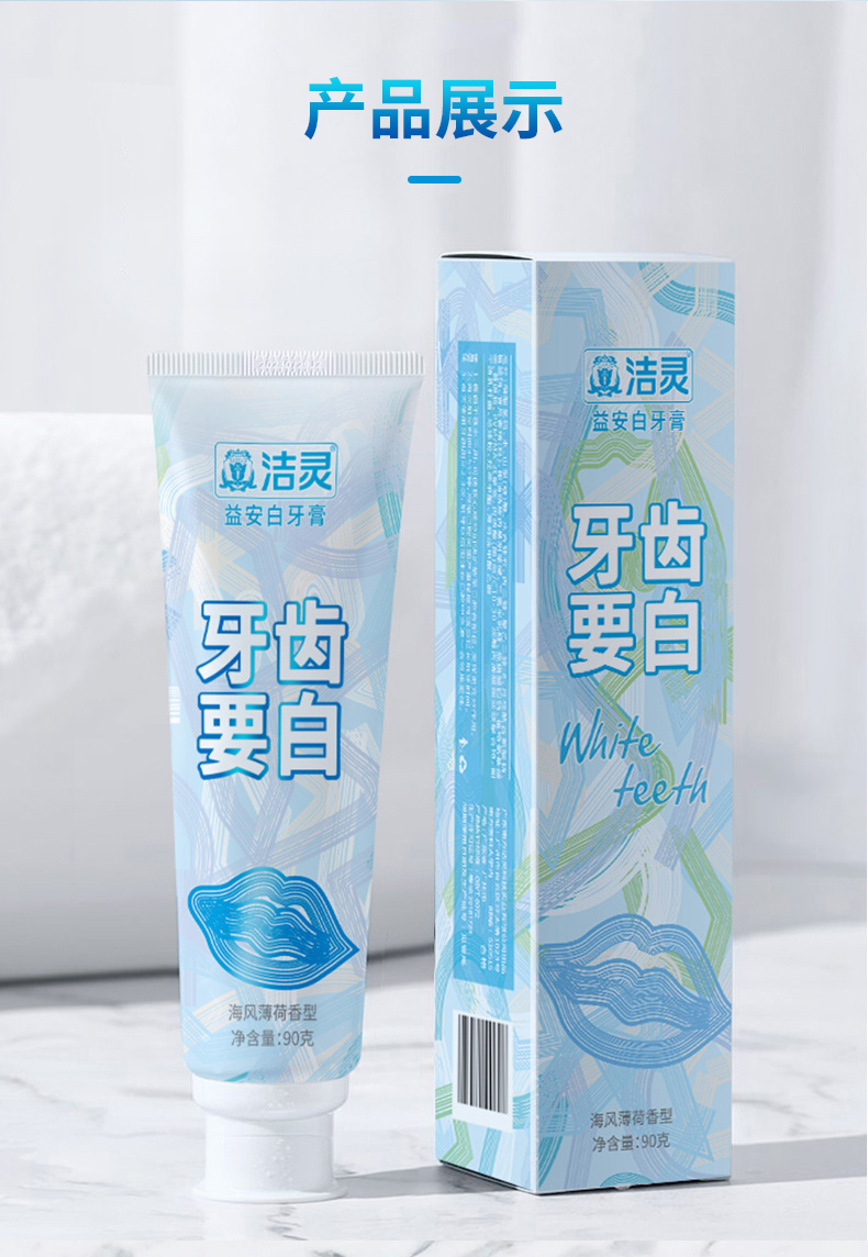 洁灵益安白牙膏牙齿要白 口腔清洁美亮白护理男女去黄牙垢去茶渍