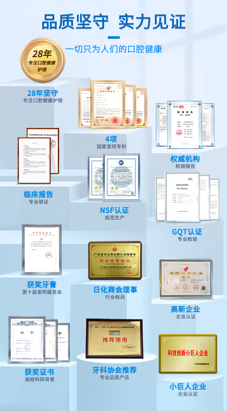 - 洁灵牙膏,由南方医科大学研制,牙膏的核心8081功效成分效果出众,在第十届全国发明展览会成为获奖牙膏。