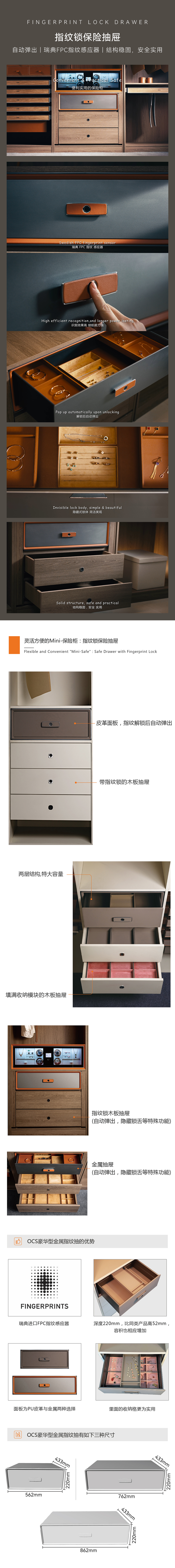 留存道指纹锁金属抽屉-可定制皮革颜色