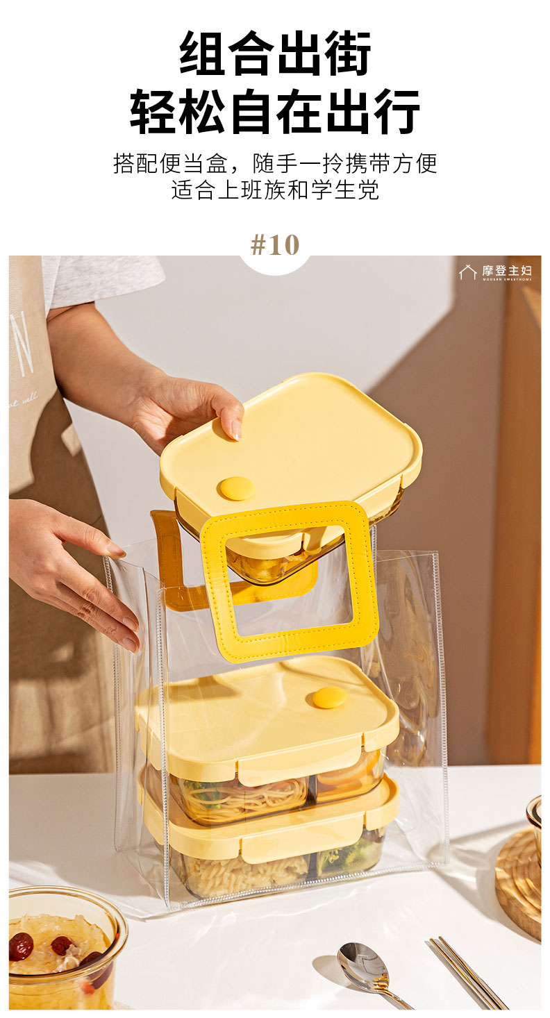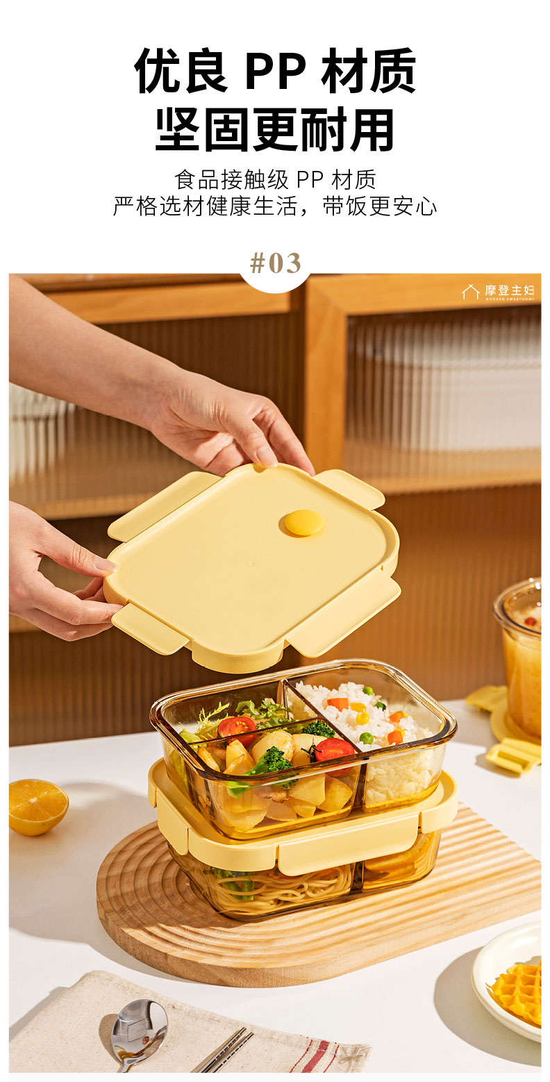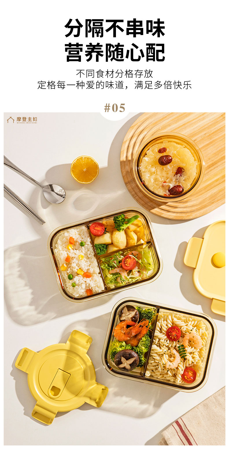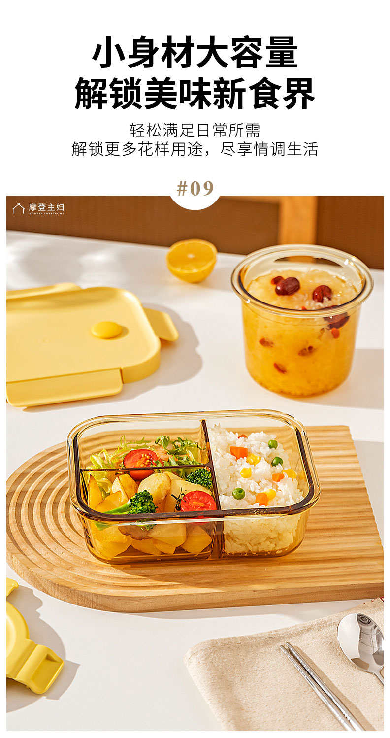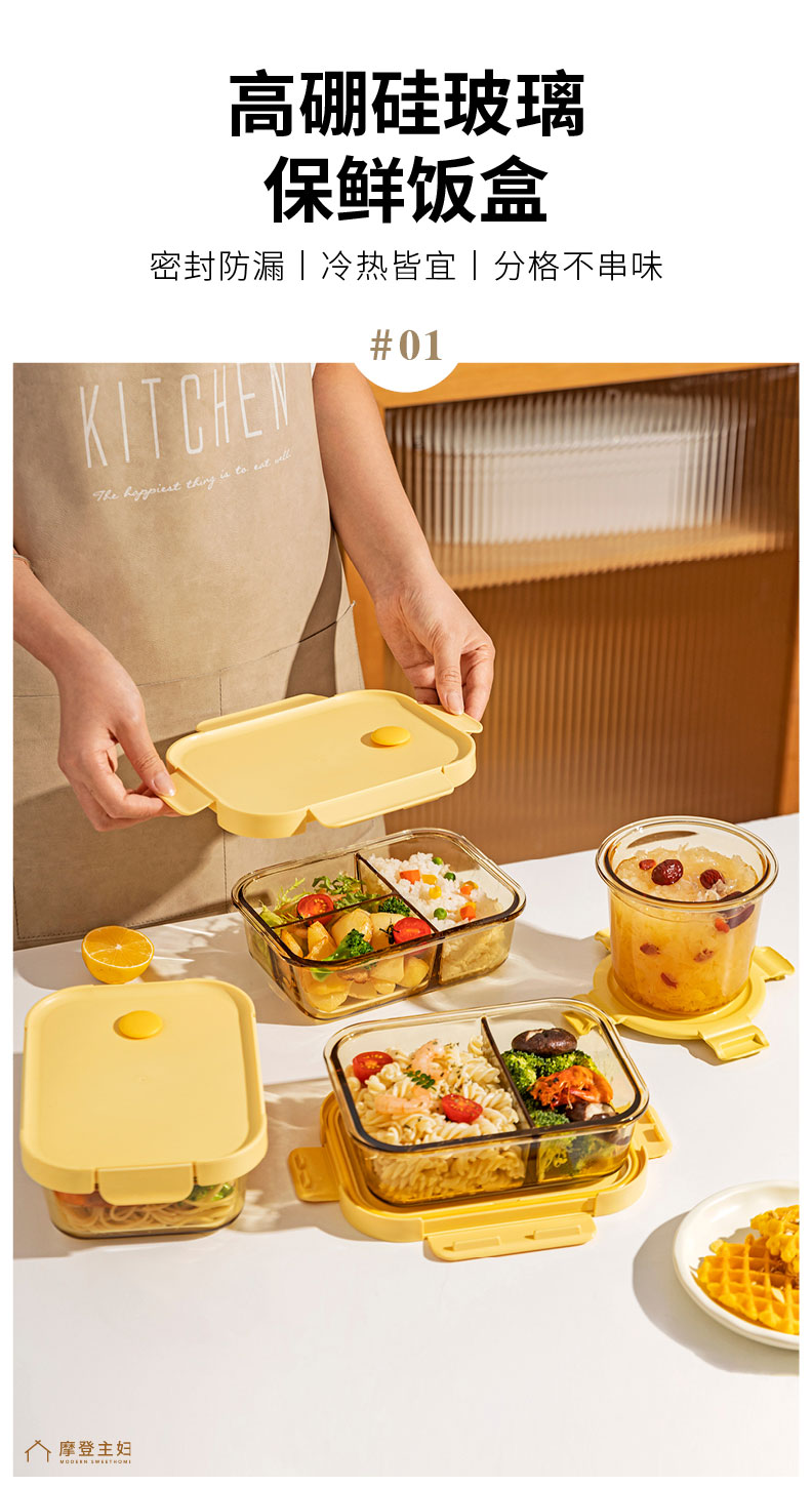 摩登主妇玻璃饭盒微波炉专用加热分隔保鲜盒上班族便当盒带饭餐盒