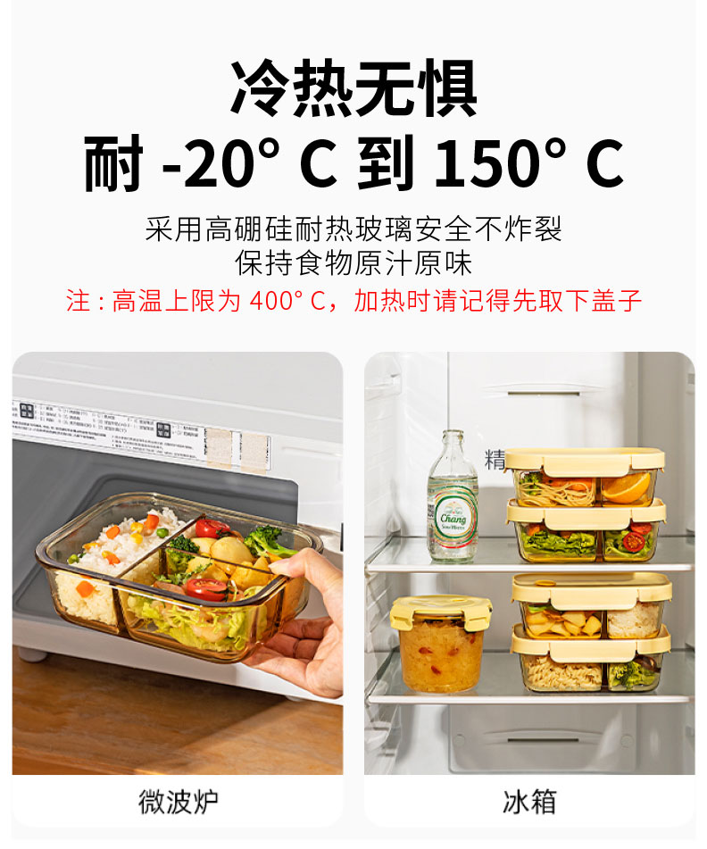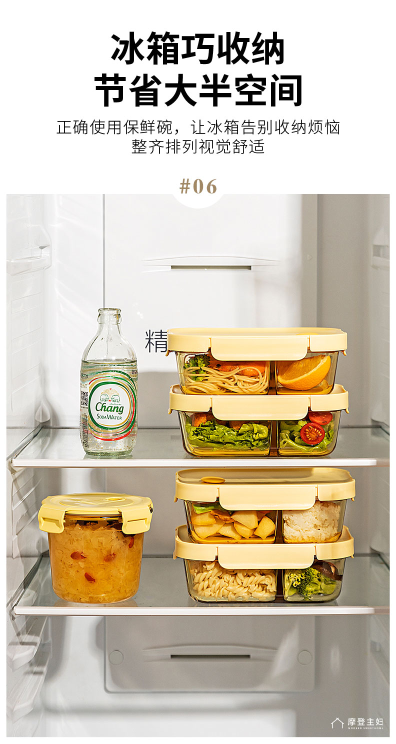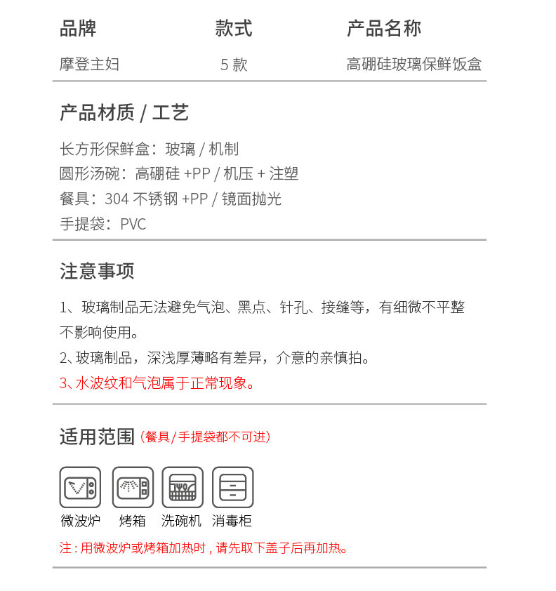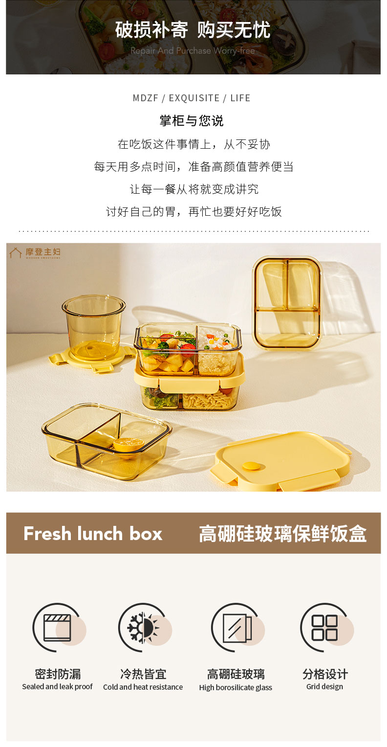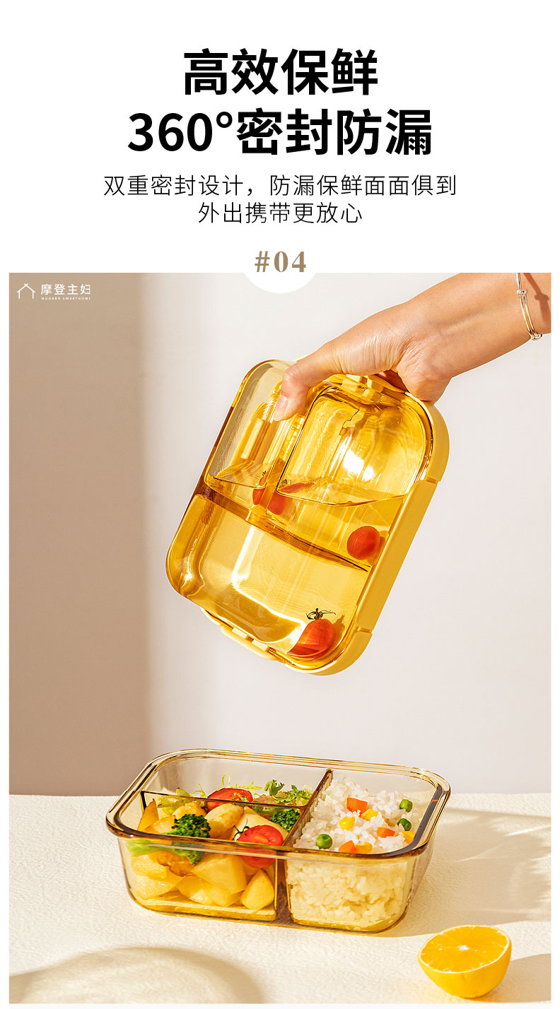 摩登主妇玻璃饭盒微波炉专用加热分隔保鲜盒上班族便当盒带饭餐盒