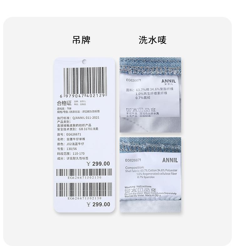 女童全腰牛仔单裤夏季新款安奈儿童装EG626671