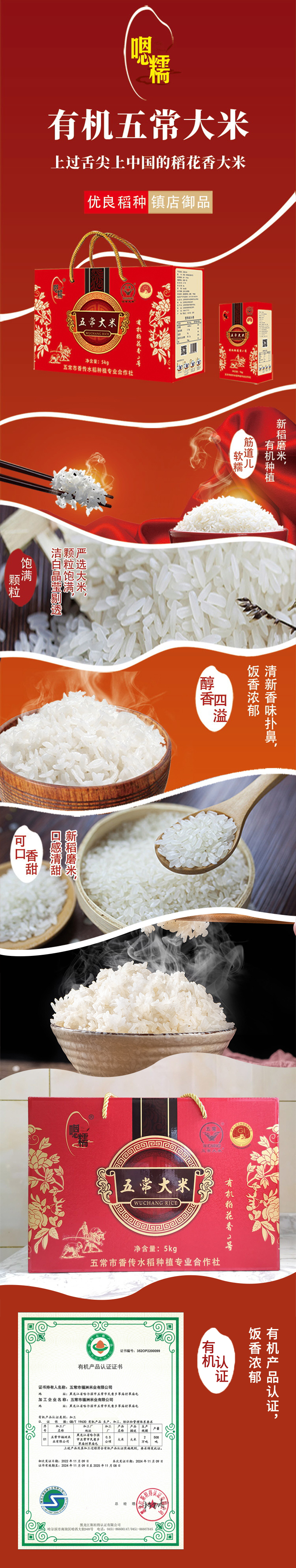 嗯糯有机五常大米 有机认证 新稻磨米 颗粒饱满 软糯劲道
