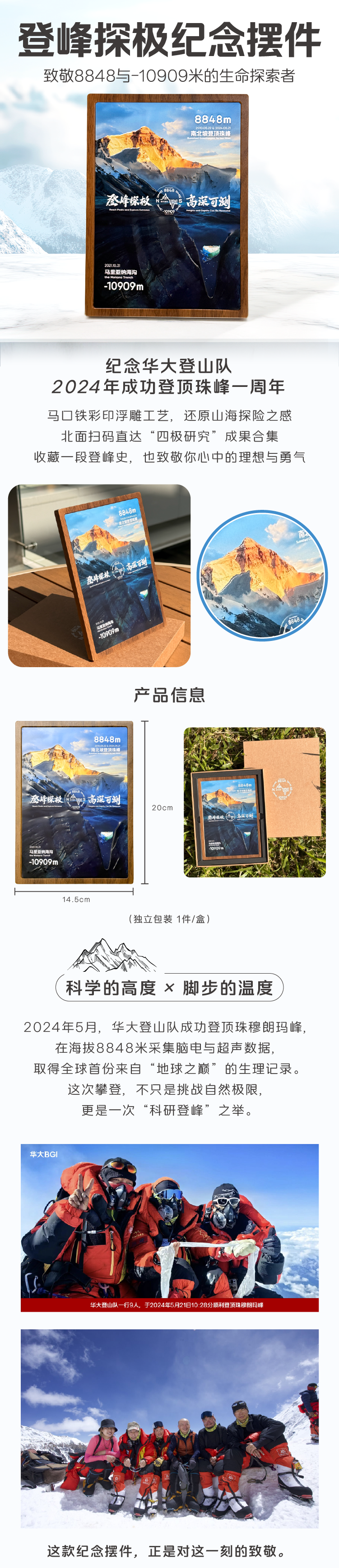 华大集团文创 华大登峰造极纪念摆件 创意实用大气 木质 马口铁彩印浮雕工艺 独立包装