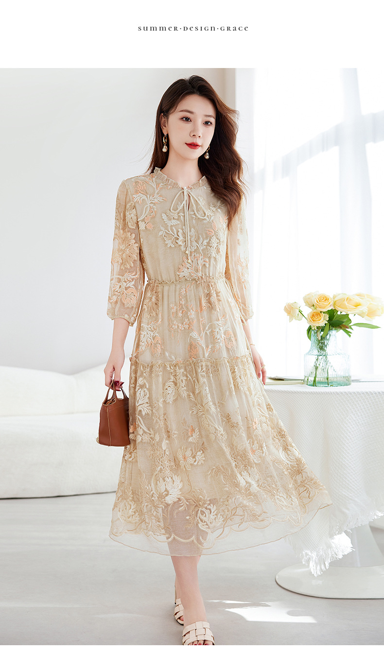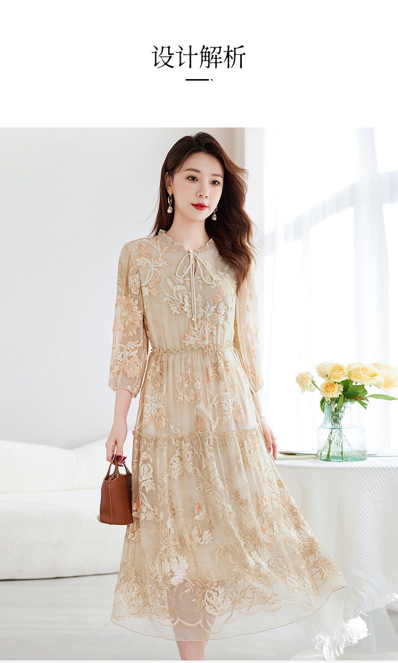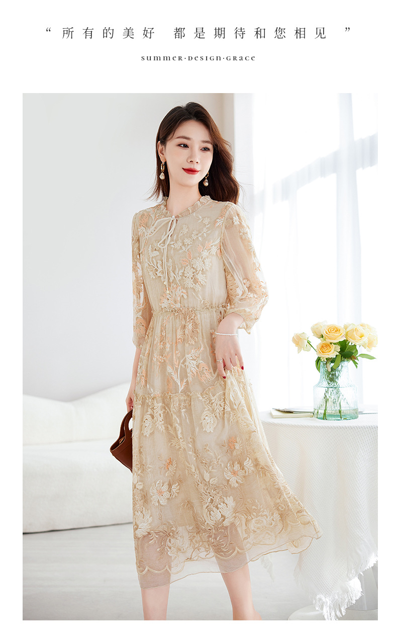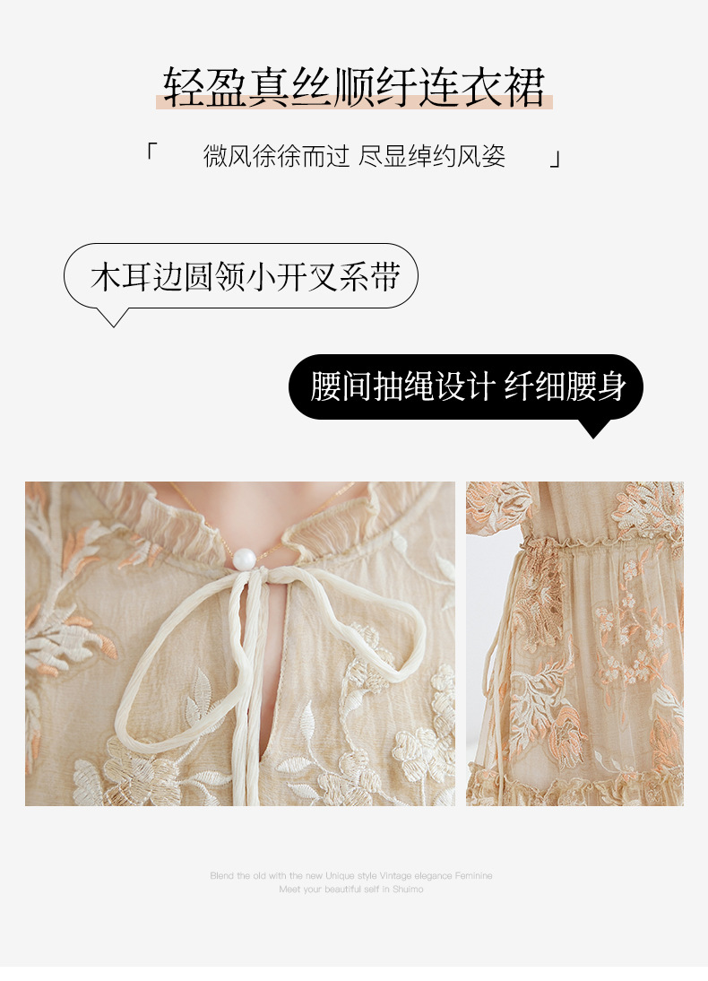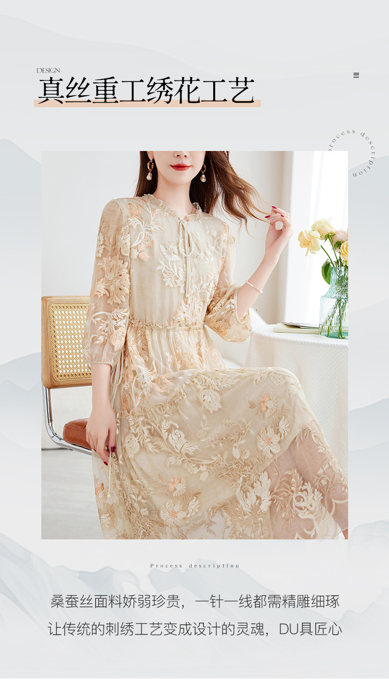 QS-82599330【真丝顺纡绣花】重工刺绣中长款连衣裙气质显瘦桑蚕丝连衣裙9330