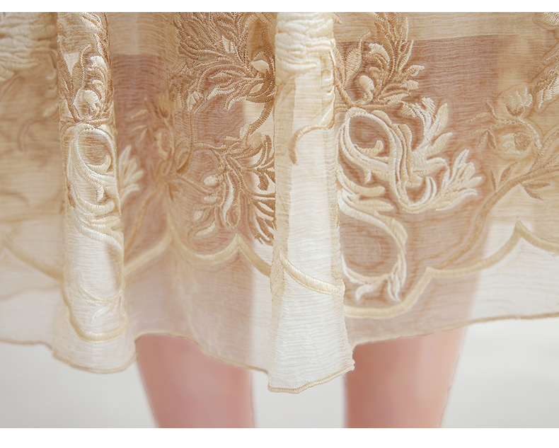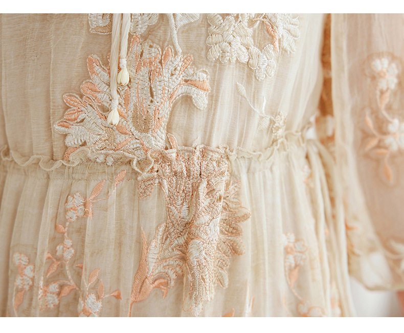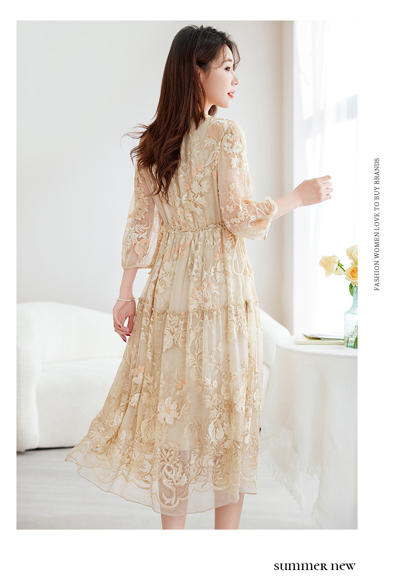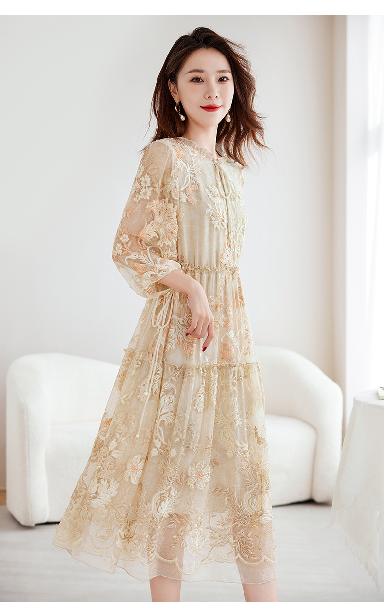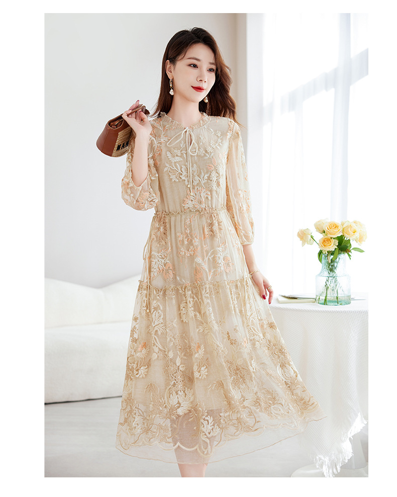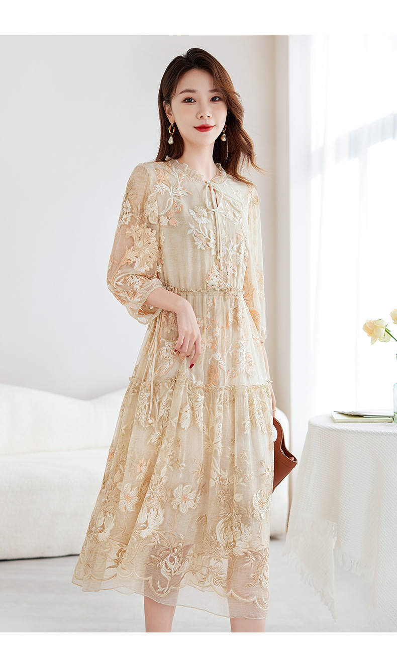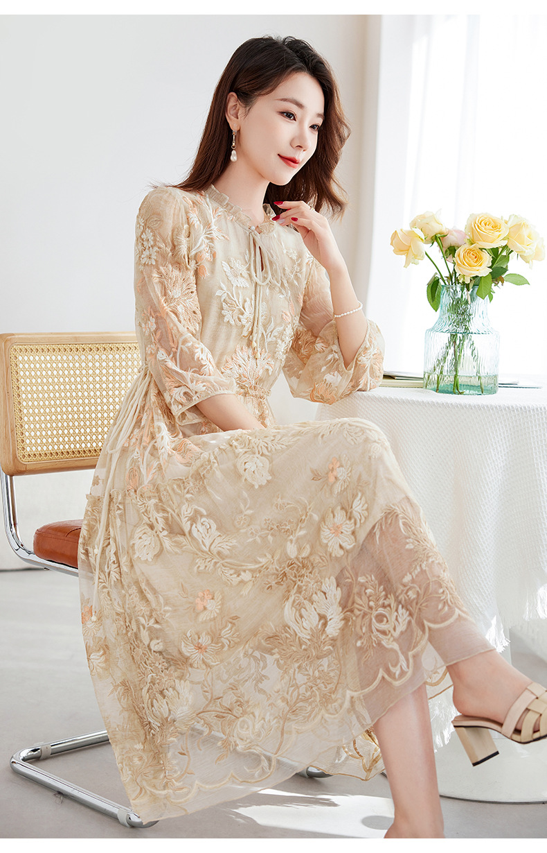 QS-82599330【真丝顺纡绣花】重工刺绣中长款连衣裙气质显瘦桑蚕丝连衣裙9330
