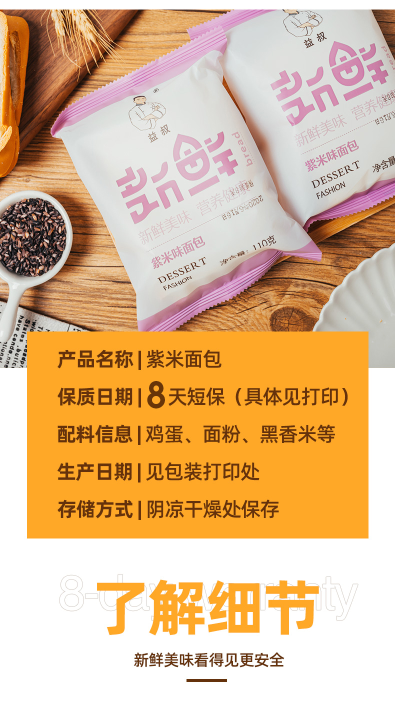 【常州馆】益叔紫米面包夹心三明治营养早餐代餐零食