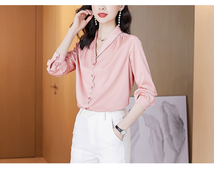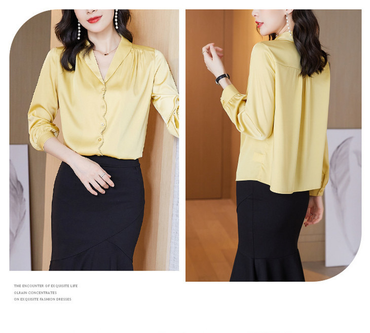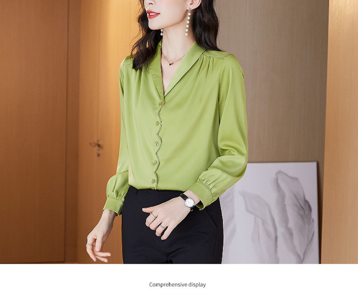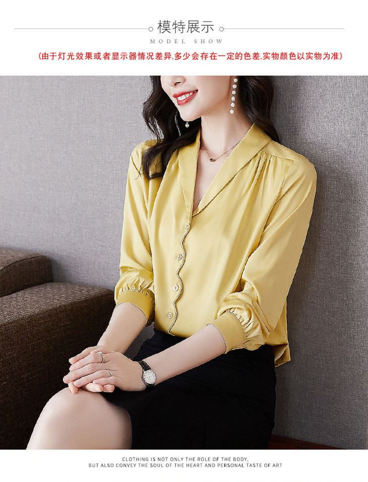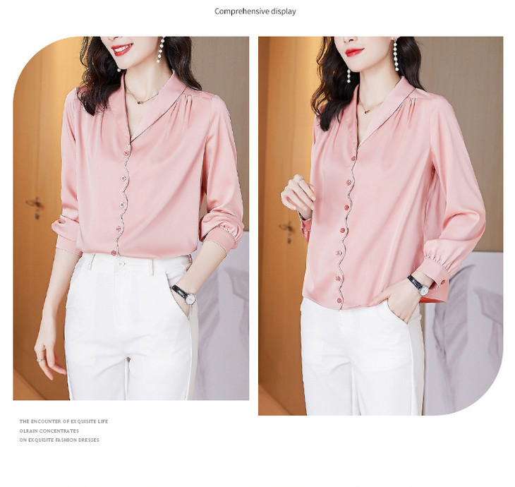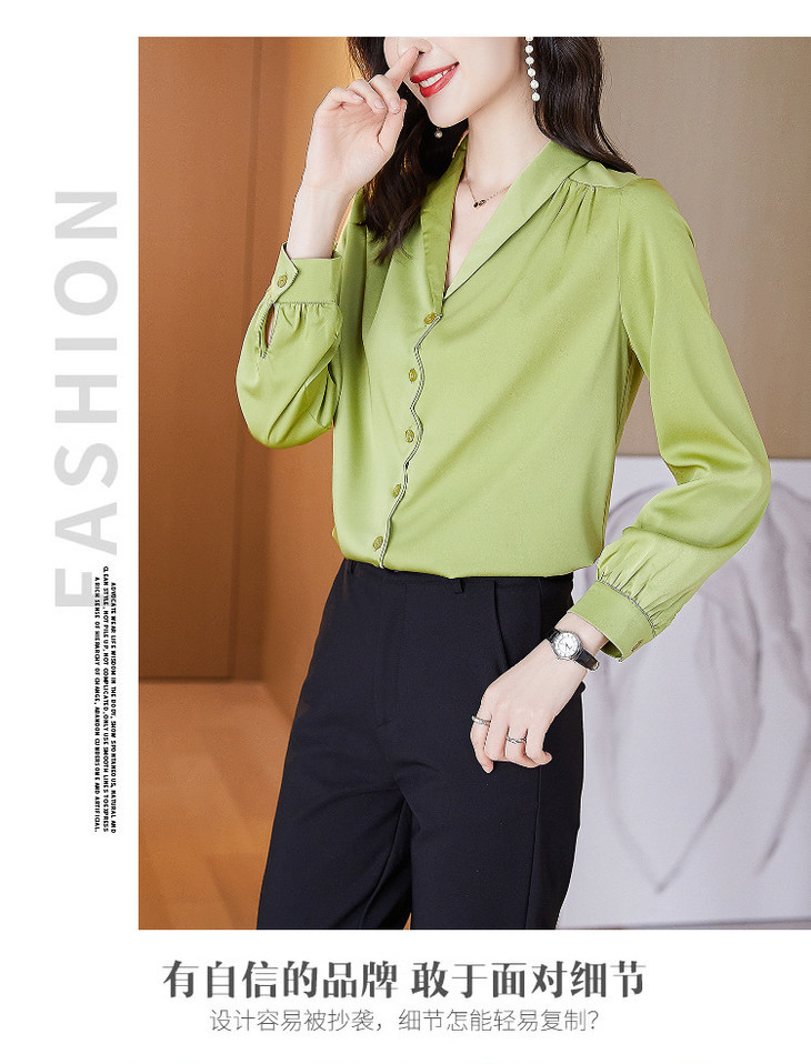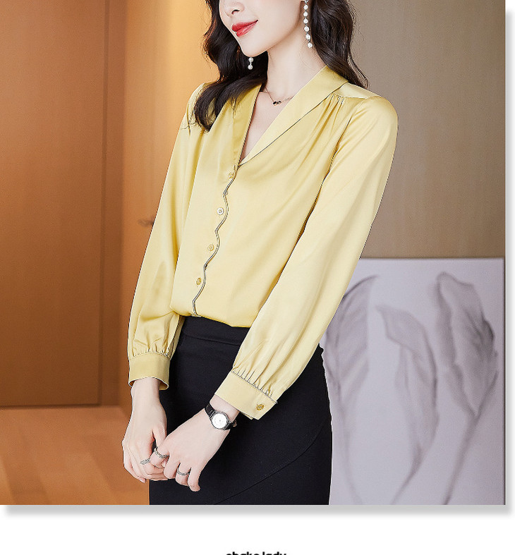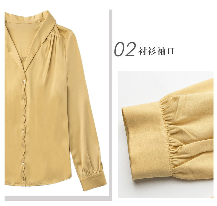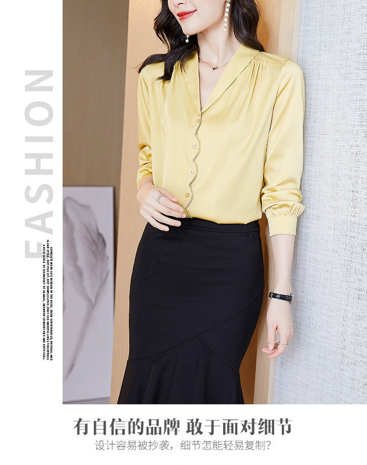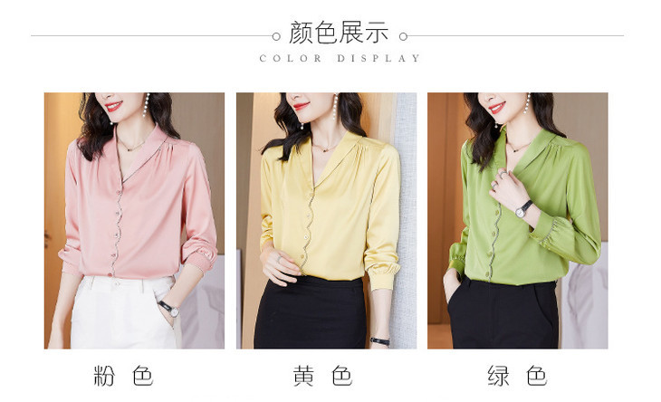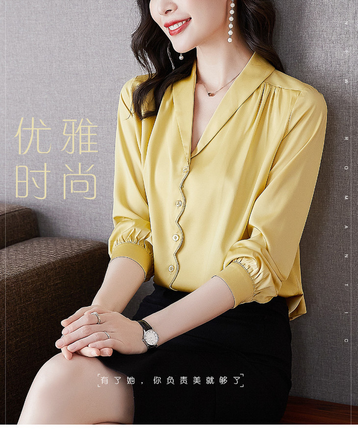MZ 105308早秋气质V领醋酸绸缎衬衫