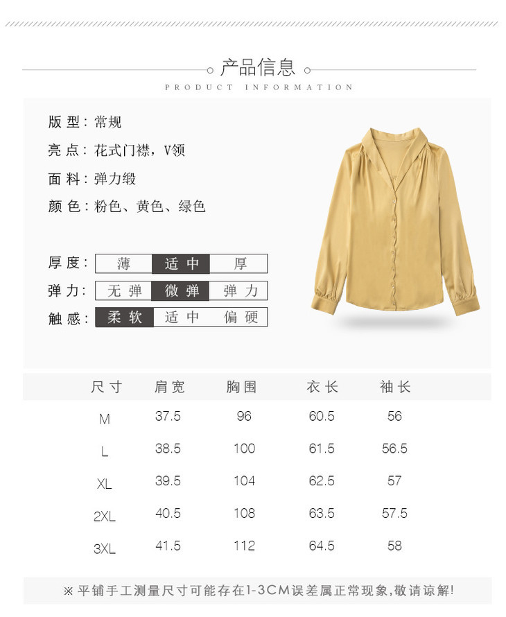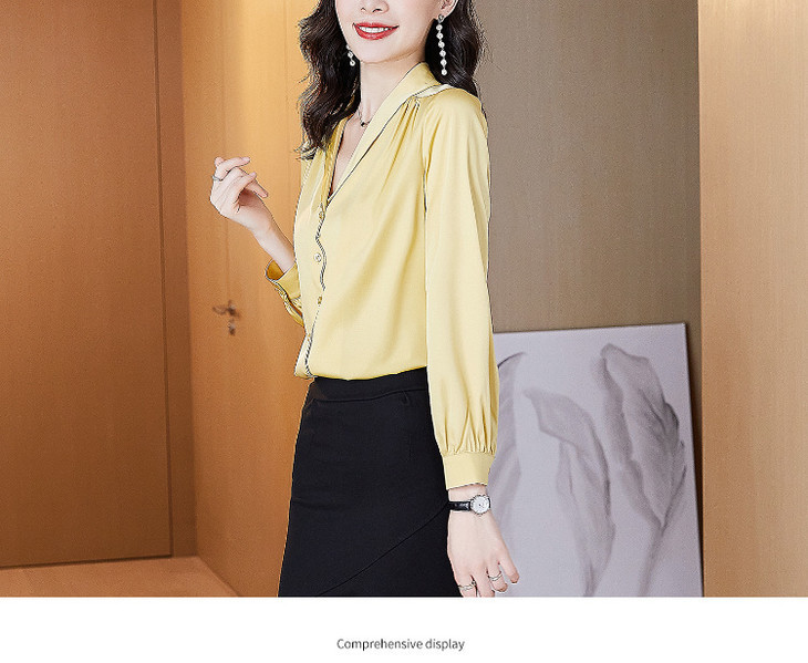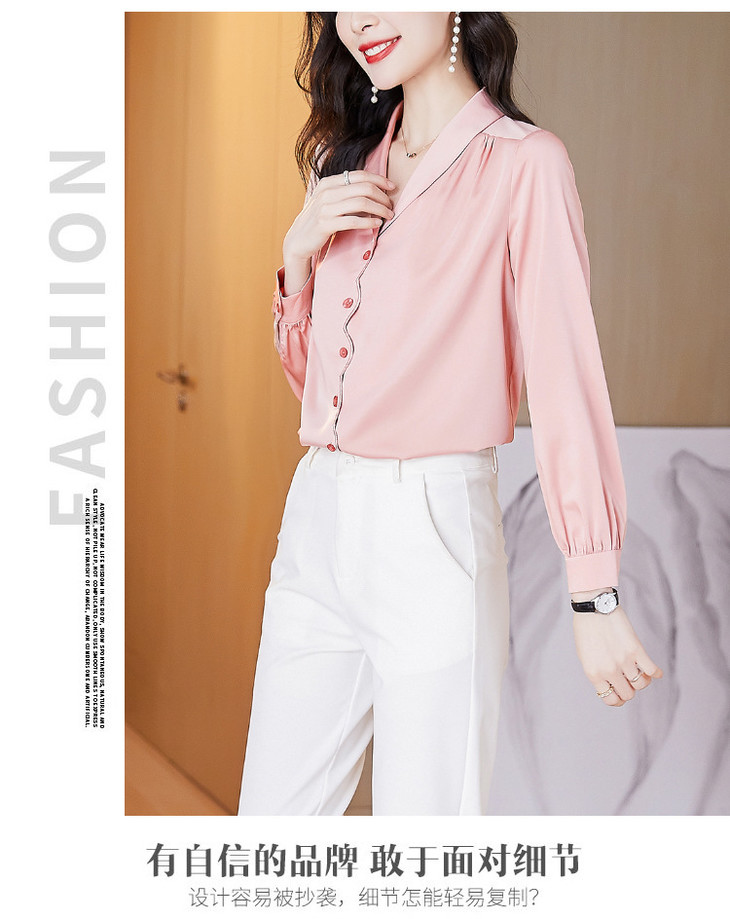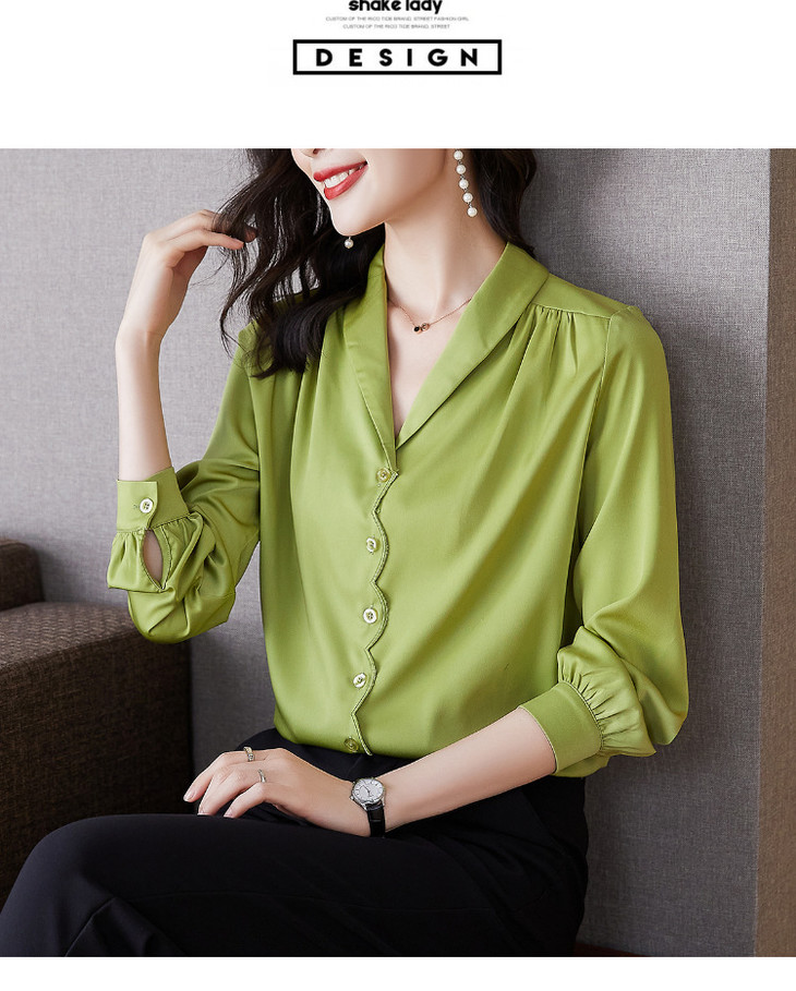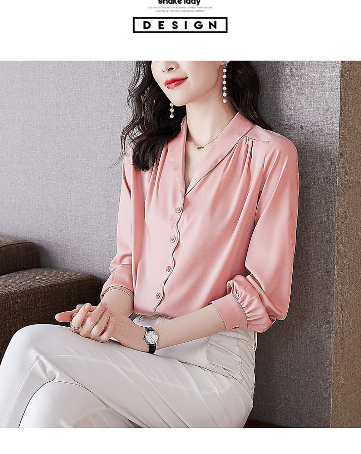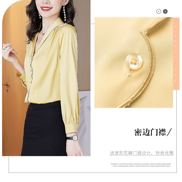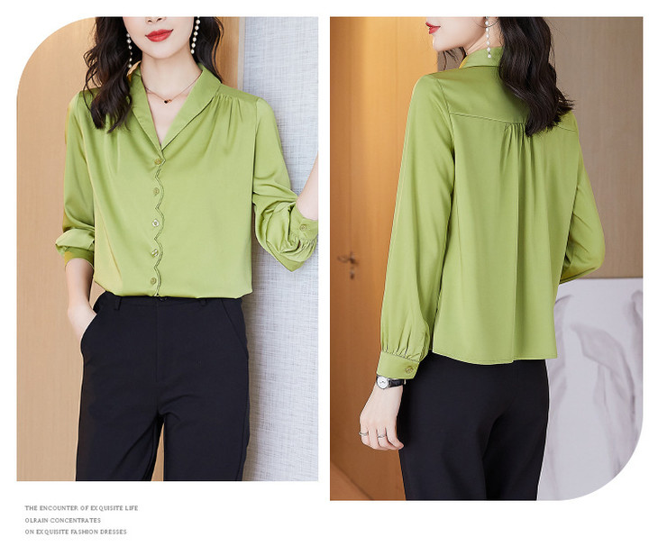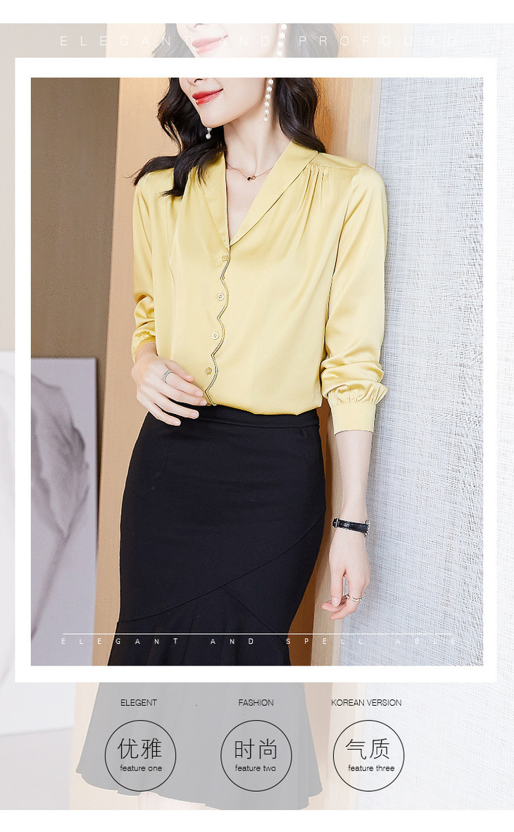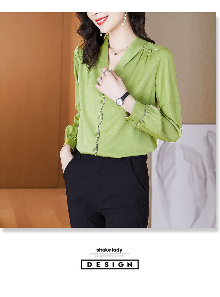 MZ 105308早秋气质V领醋酸绸缎衬衫