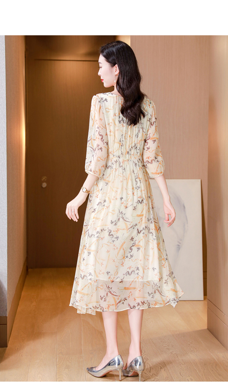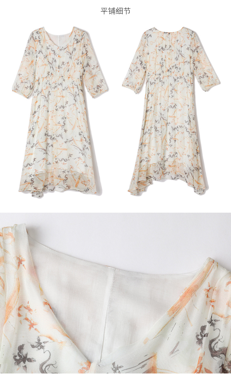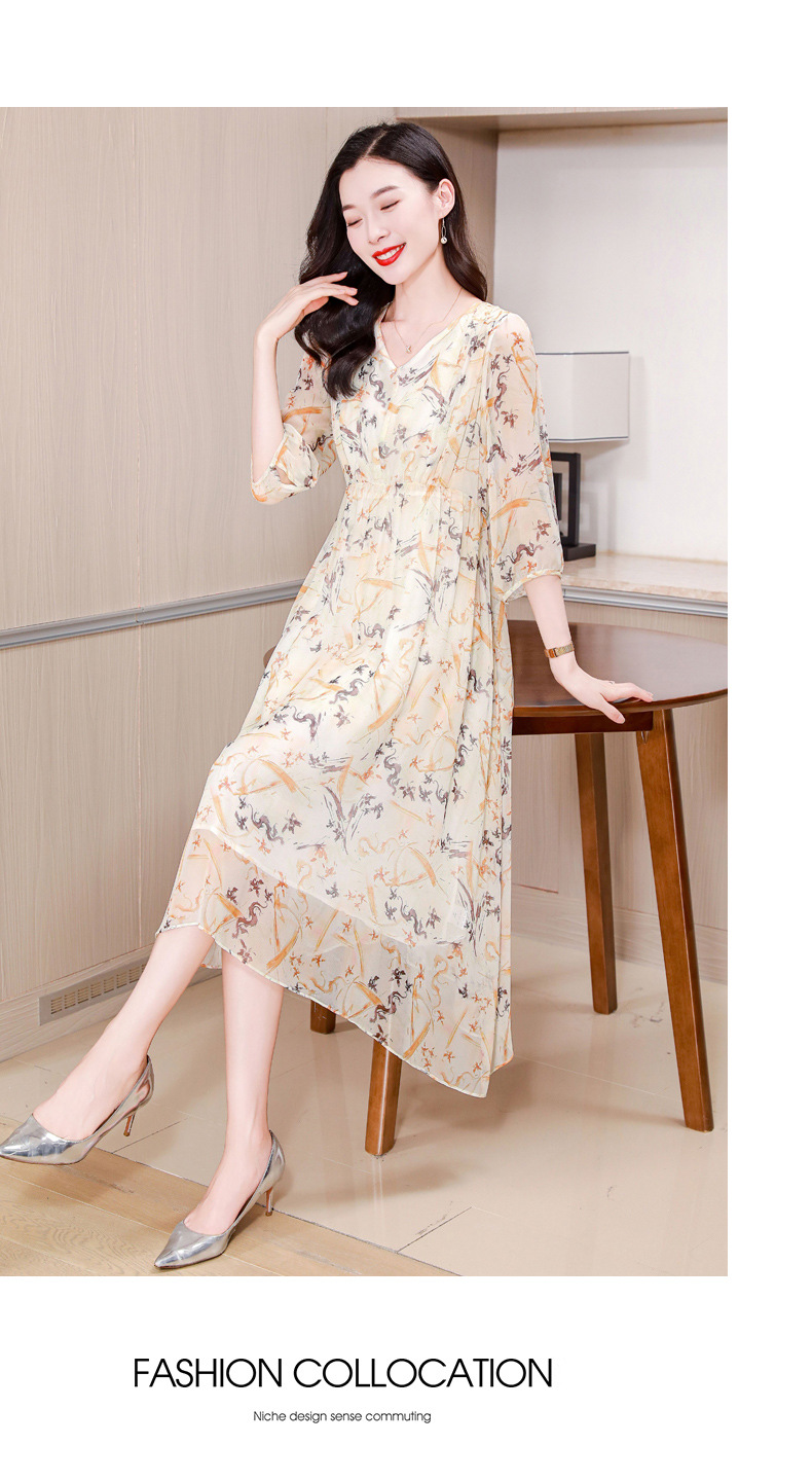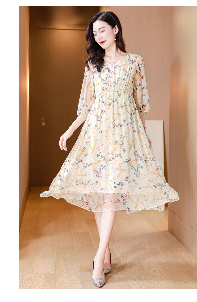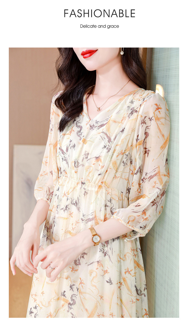 ASE-25012夏季印花V领气质知性百搭真丝连衣裙