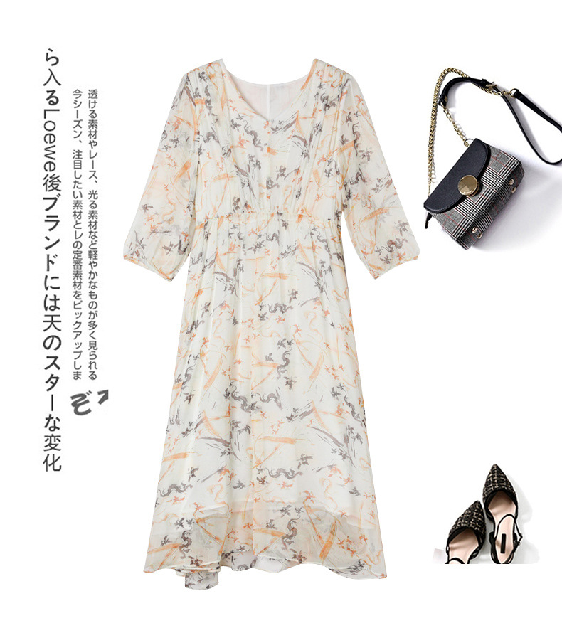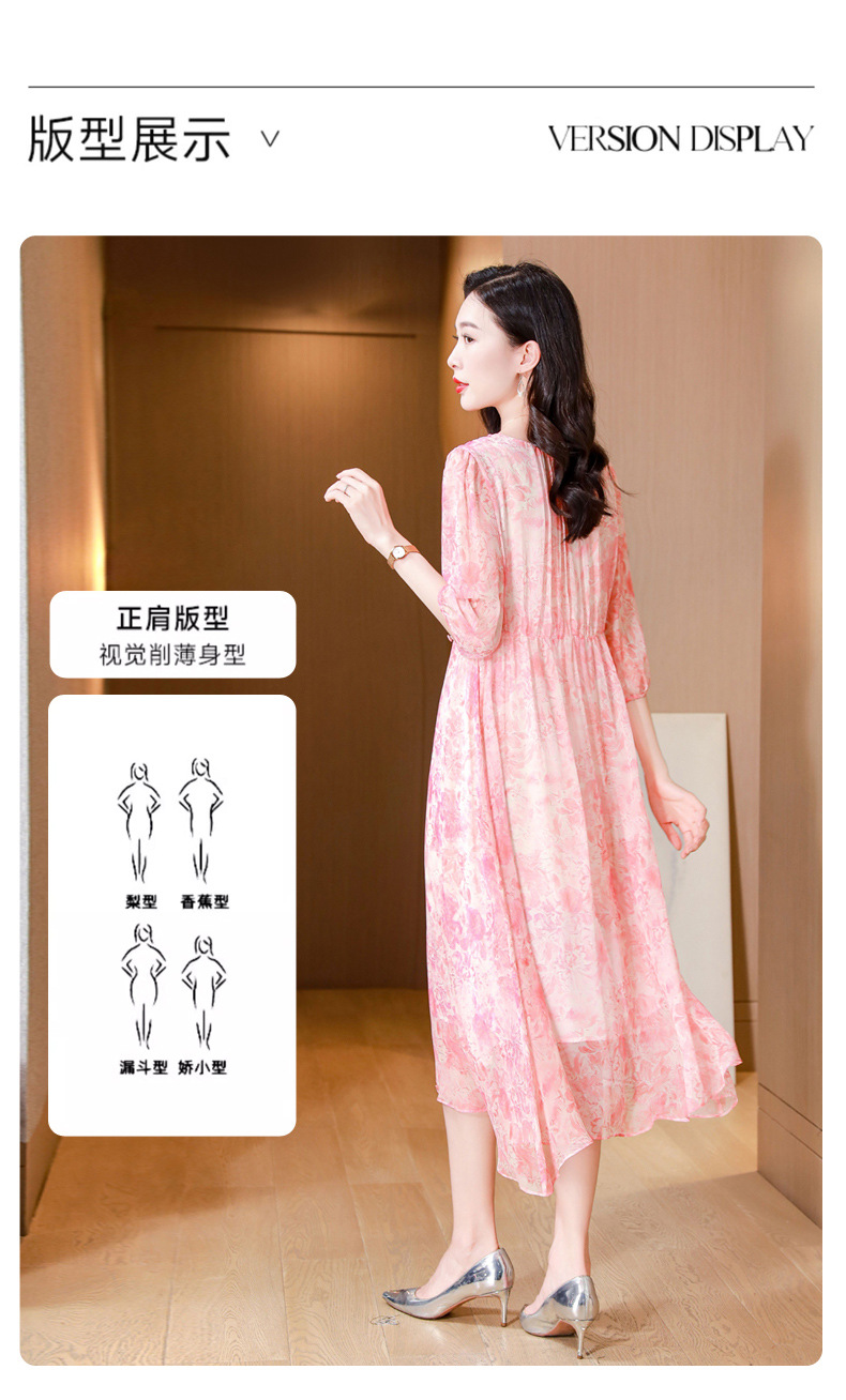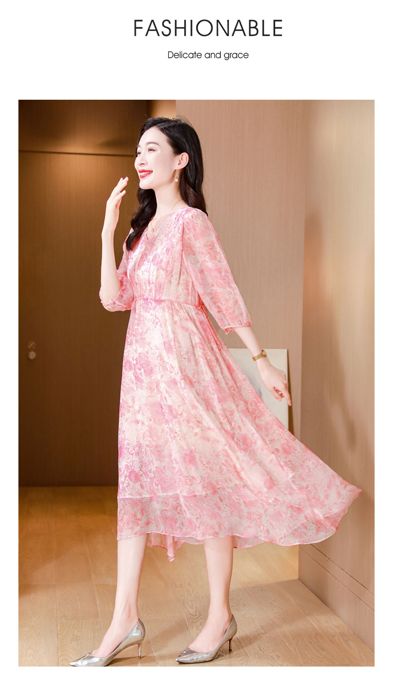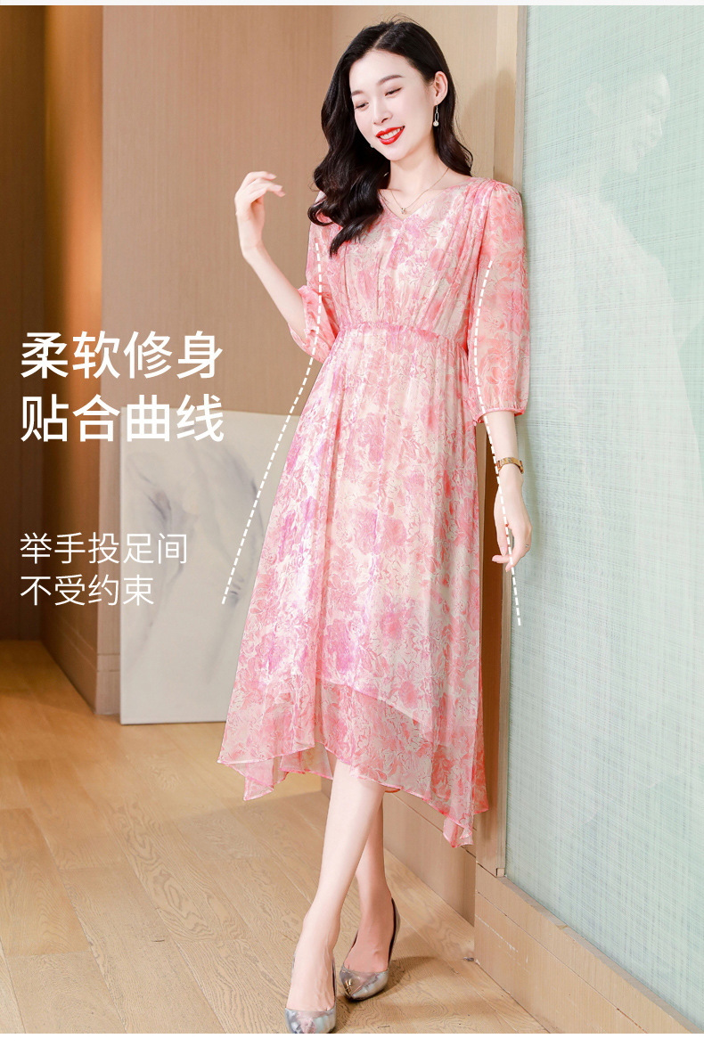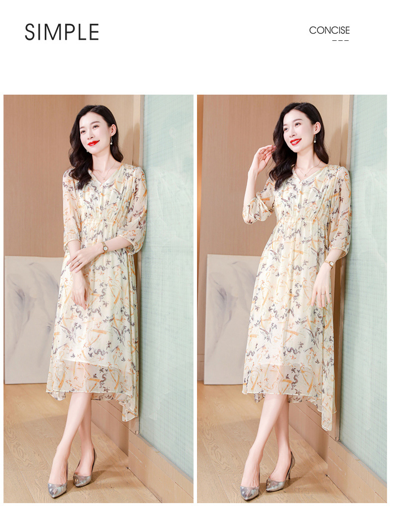 ASE-25012夏季印花V领气质知性百搭真丝连衣裙