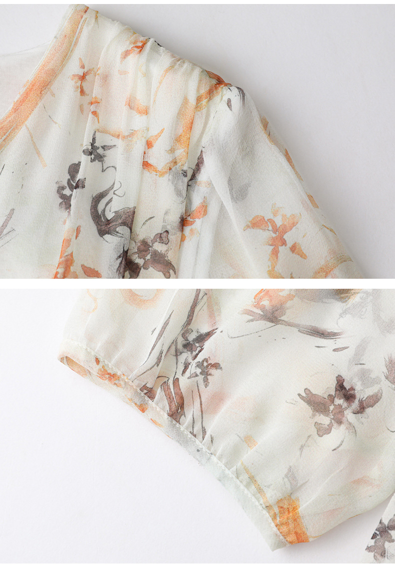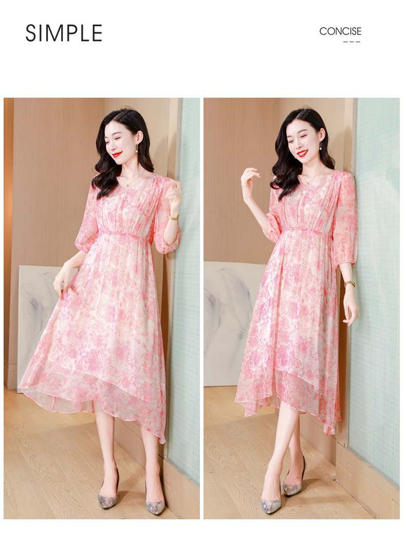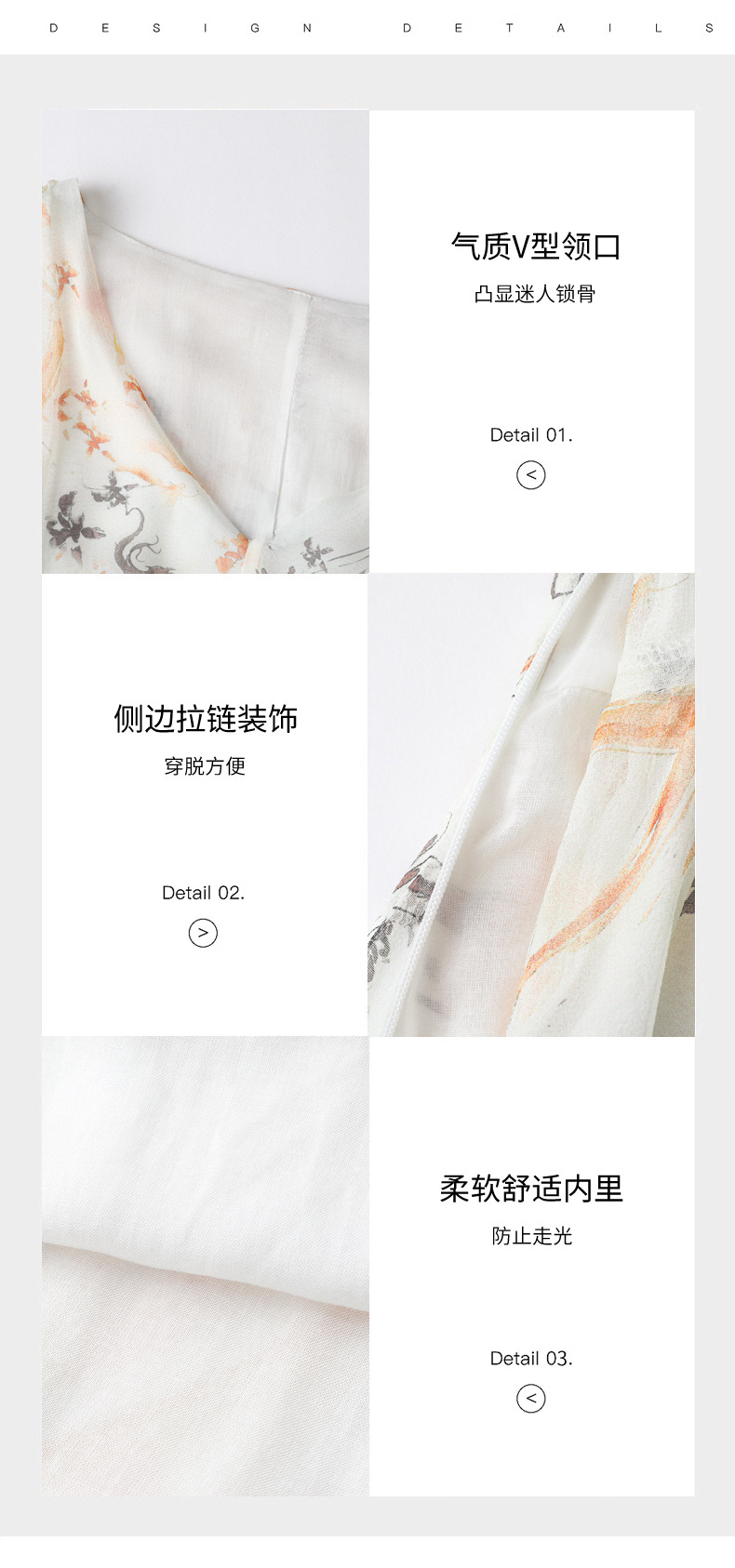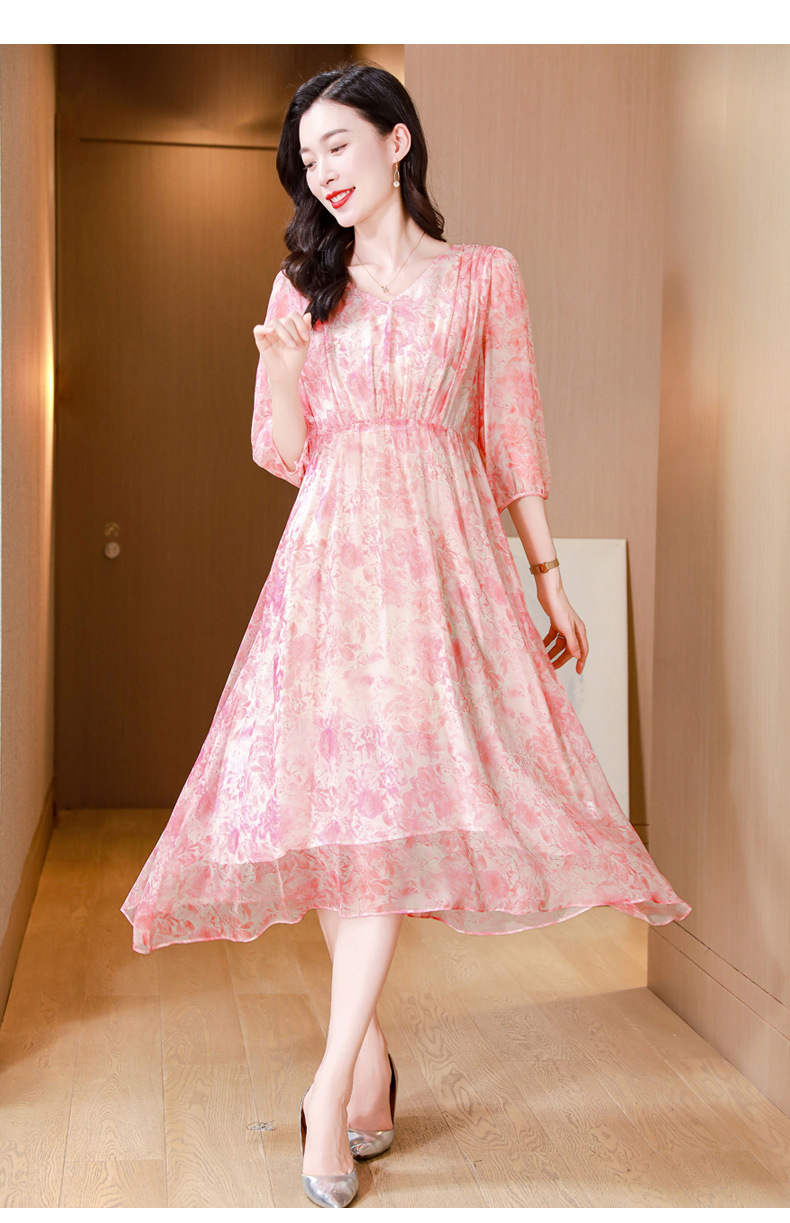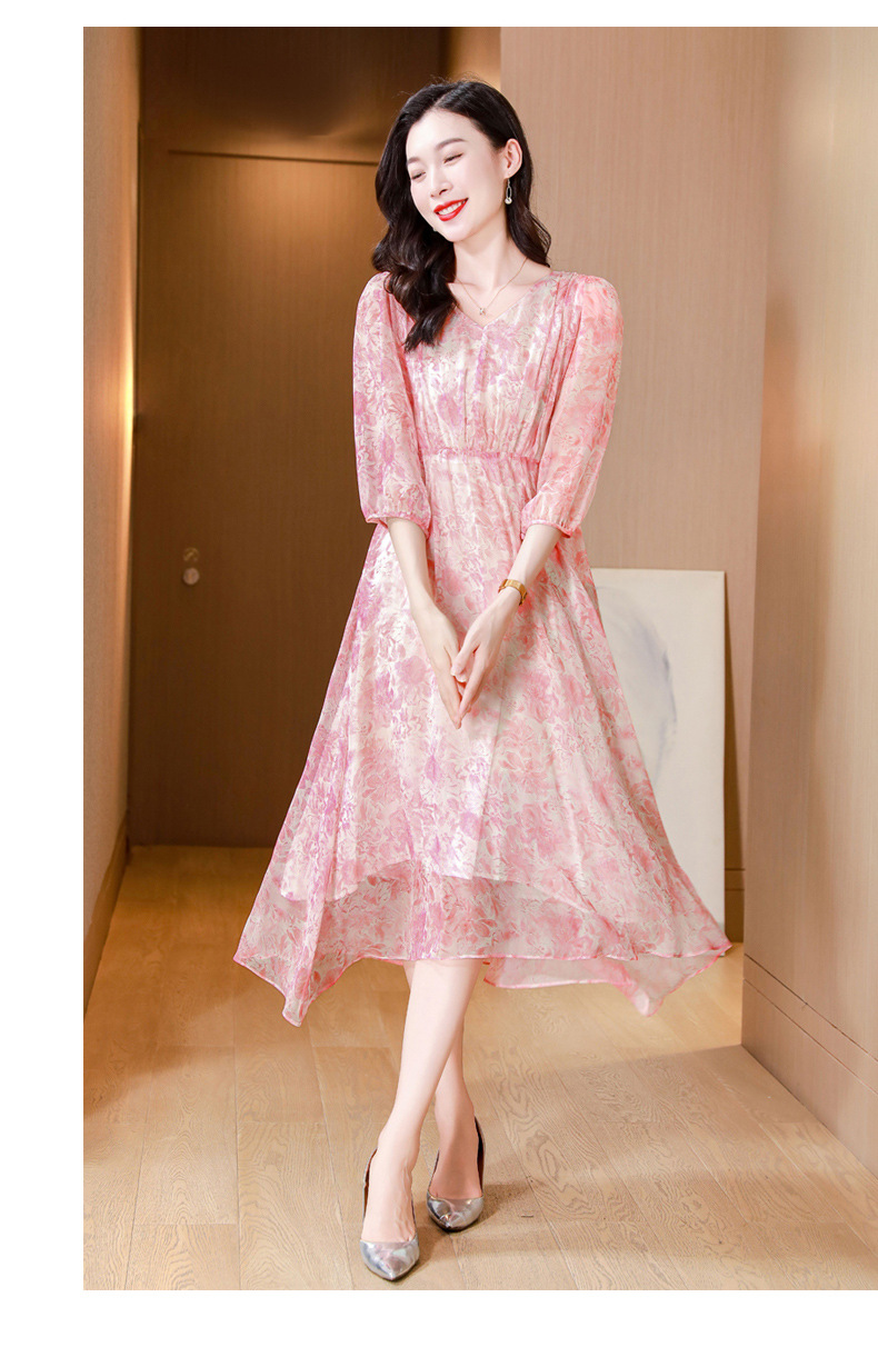 ASE-25012夏季印花V领气质知性百搭真丝连衣裙