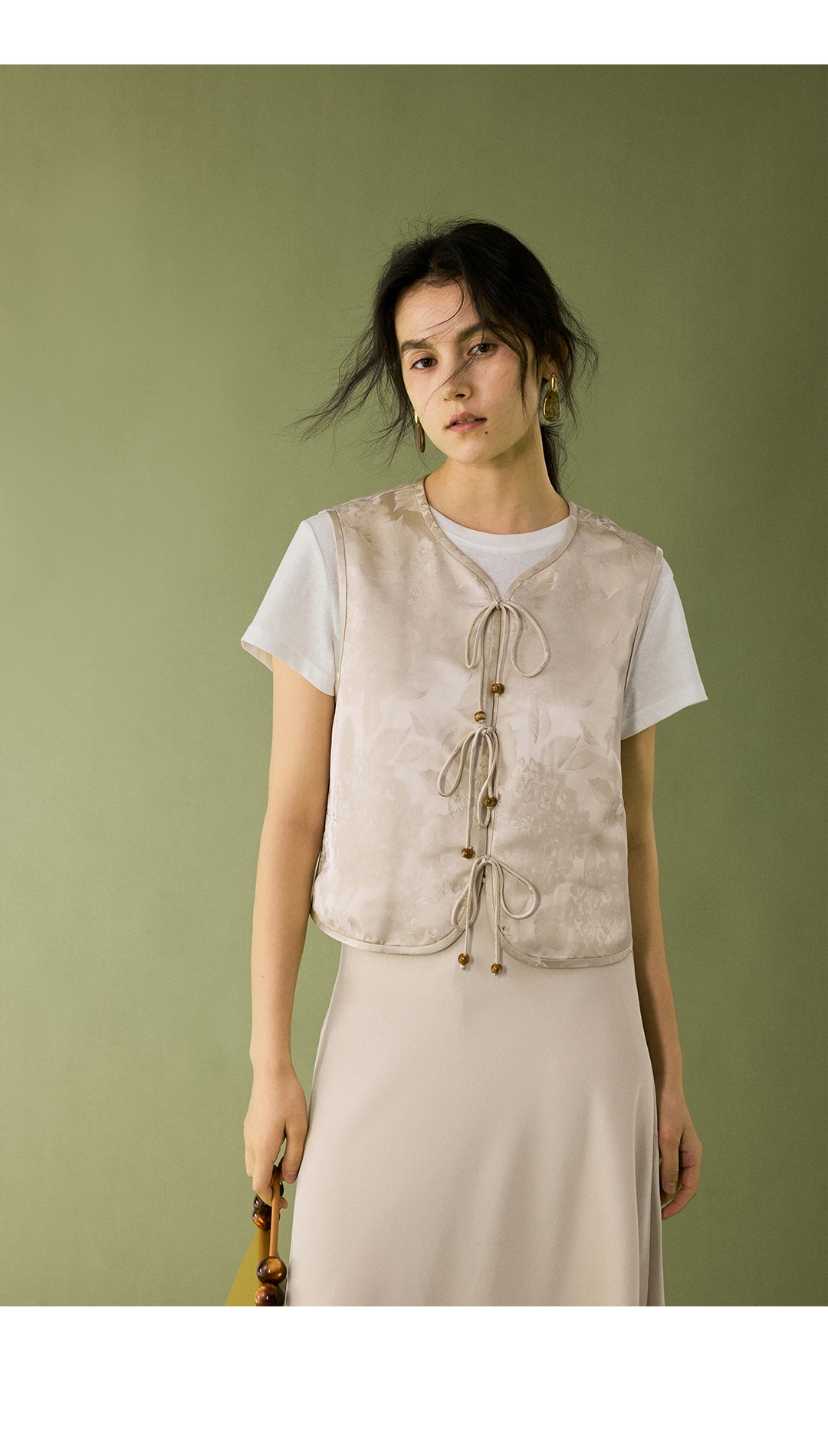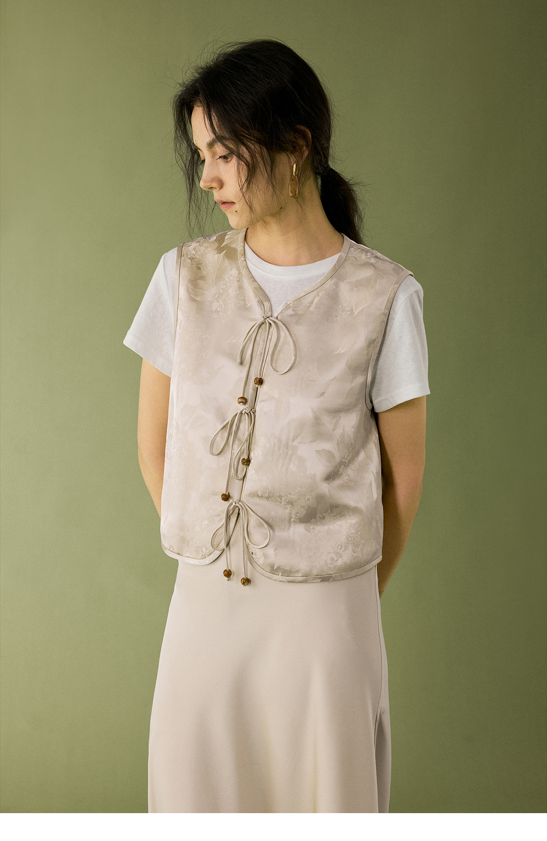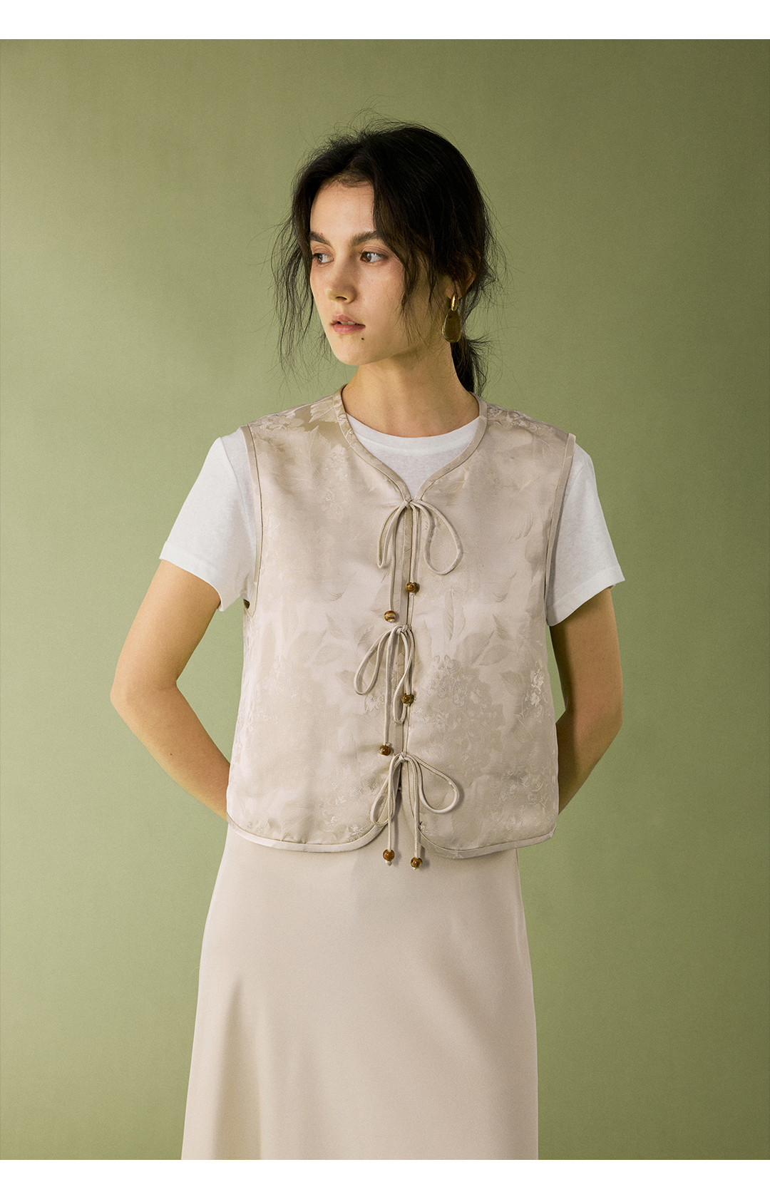 HeyDress提花缎面系绳马甲