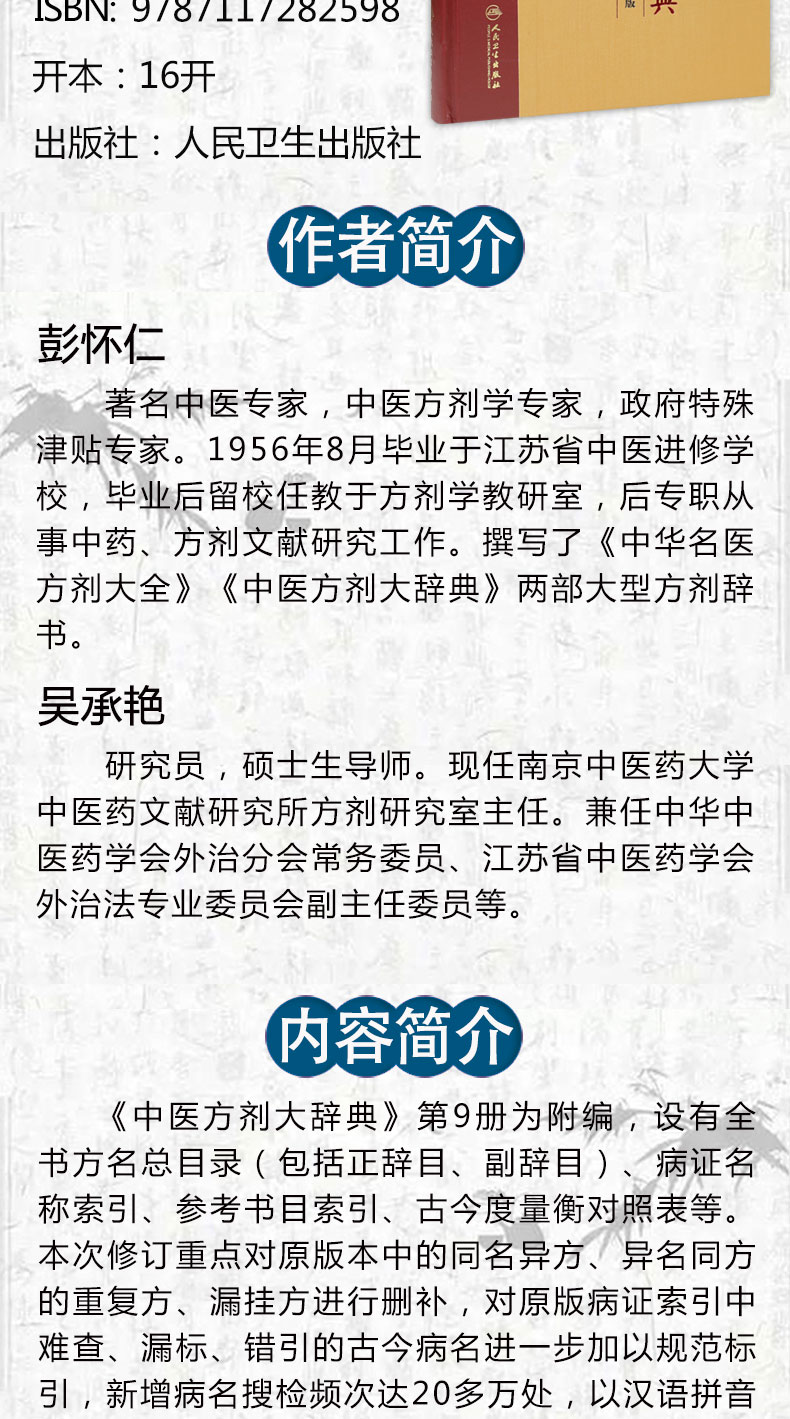 [旗舰店 现货]中医方剂大辞典(第2版)第九册 彭怀仁、王旭东、吴承艳等 主编 方剂学 9787117282598 2019年11月参考书 人卫