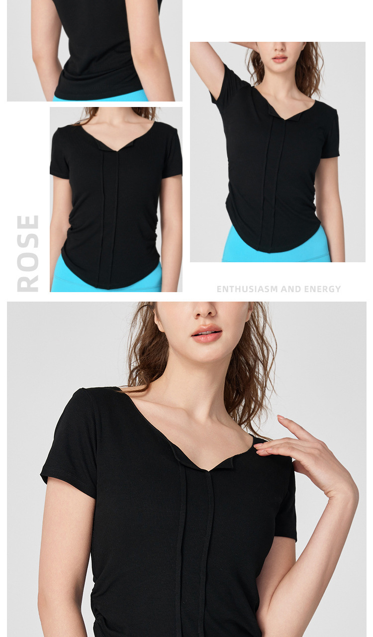 跃牌【海听系列】2025年夏季新款设计感小众短袖V领纯欲辣妹风T恤XC72