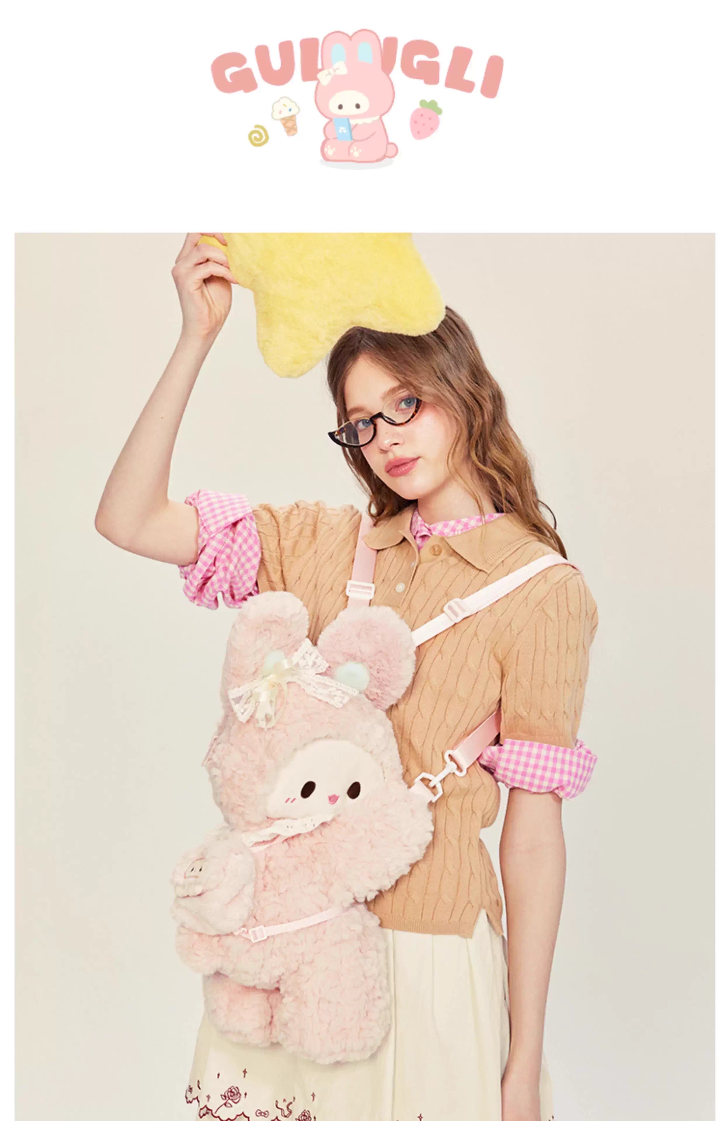 小羊古力·兔子·毛绒趴趴包plus版(粉色)