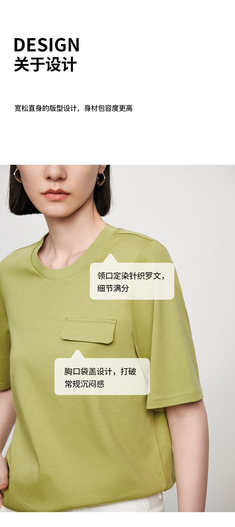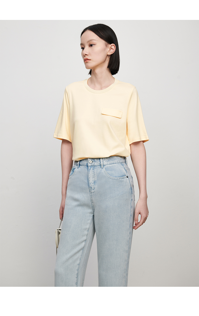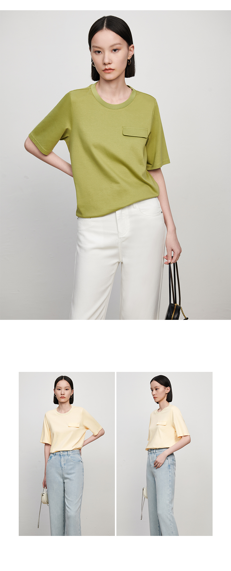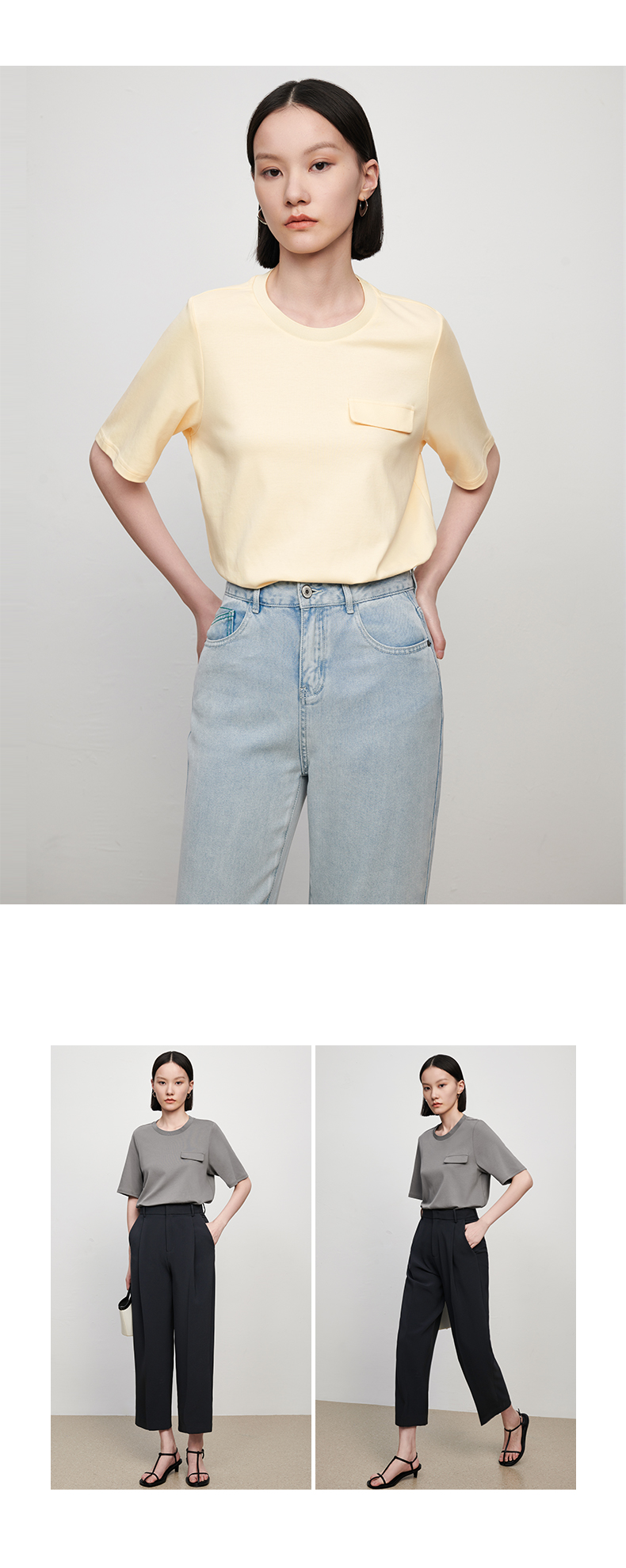IN AND ON21431夏季新款全棉短袖T恤女短款直筒显瘦口袋纯色上衣