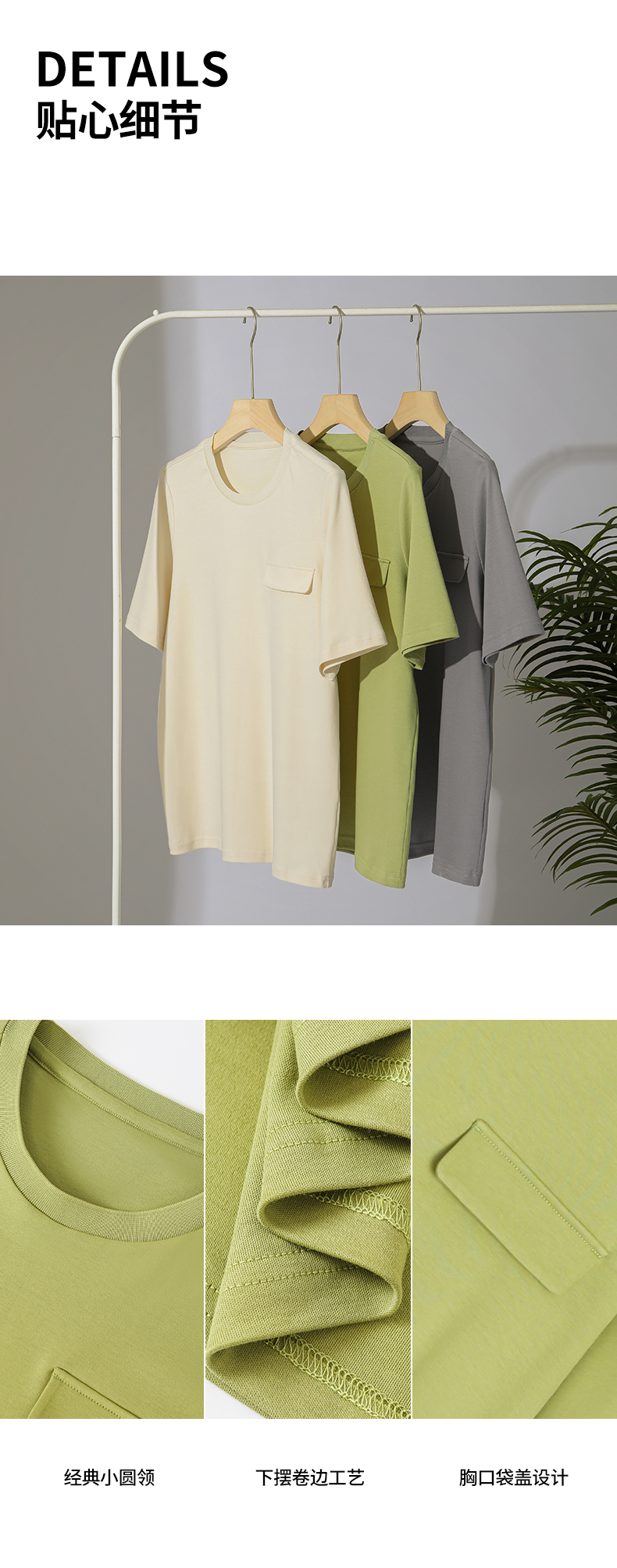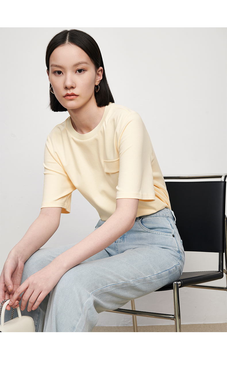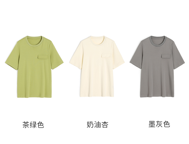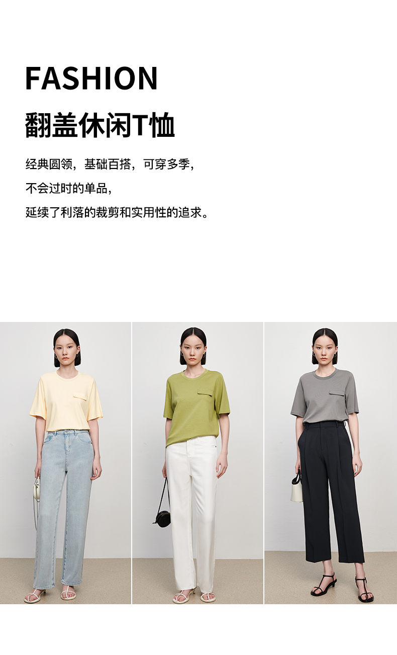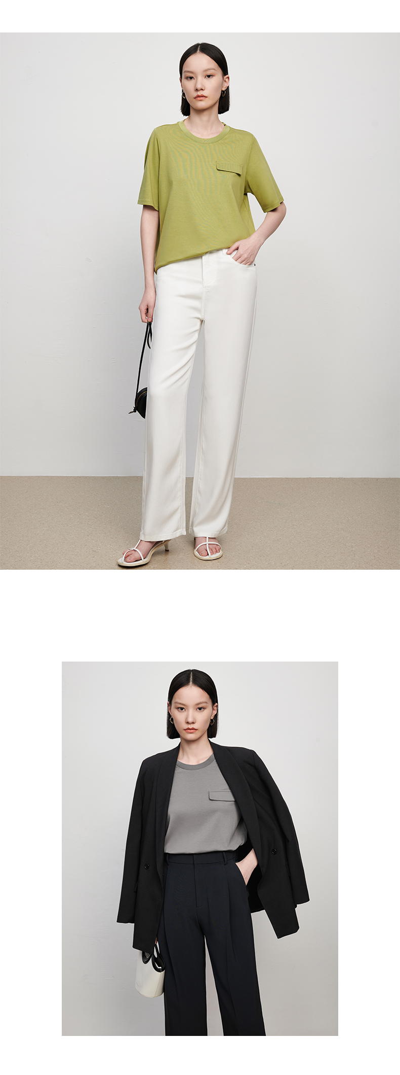 IN AND ON21431夏季新款全棉短袖T恤女短款直筒显瘦口袋纯色上衣