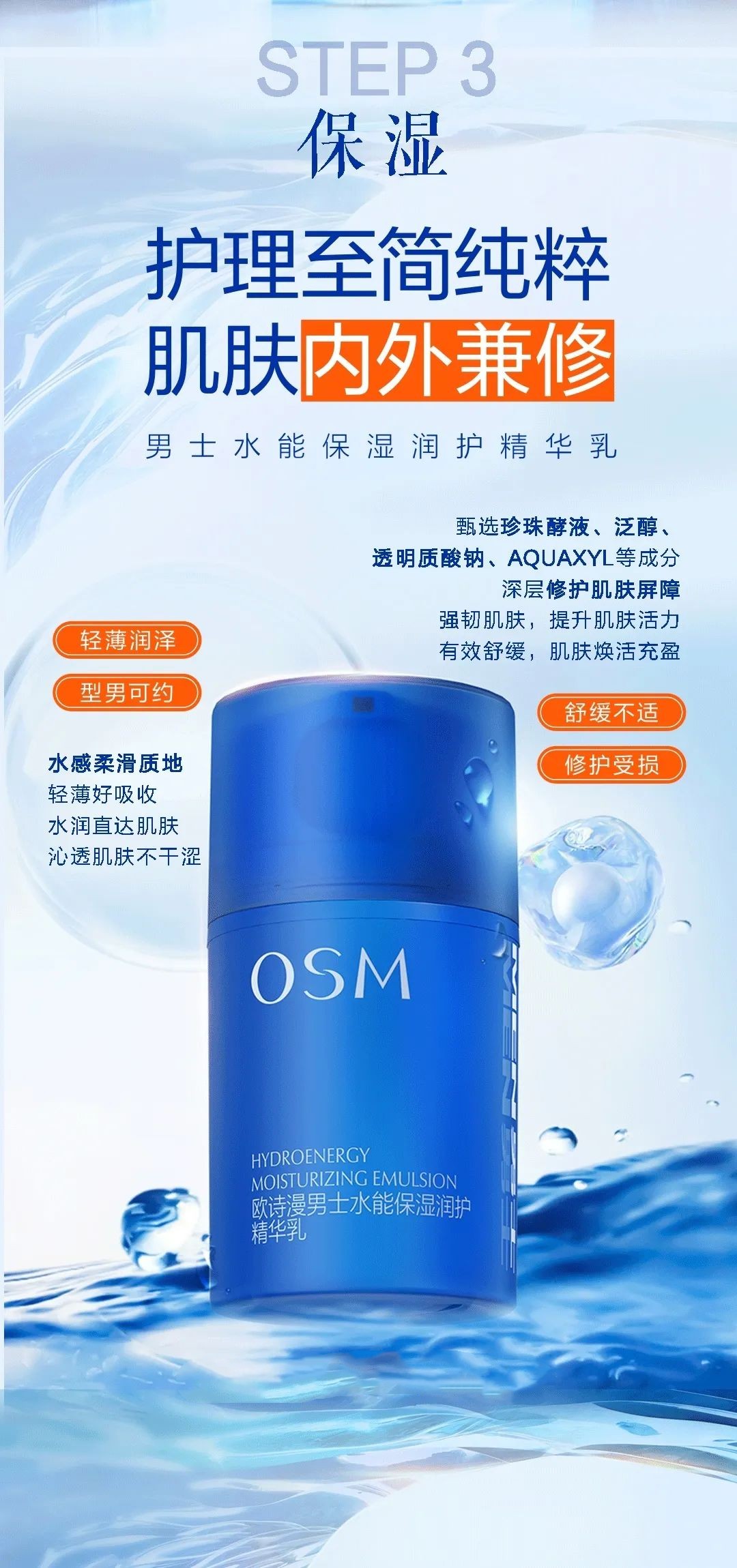 欧诗漫男士水能保湿润护洁面乳 绵密泡沫 深入清洁毛孔污垢120g