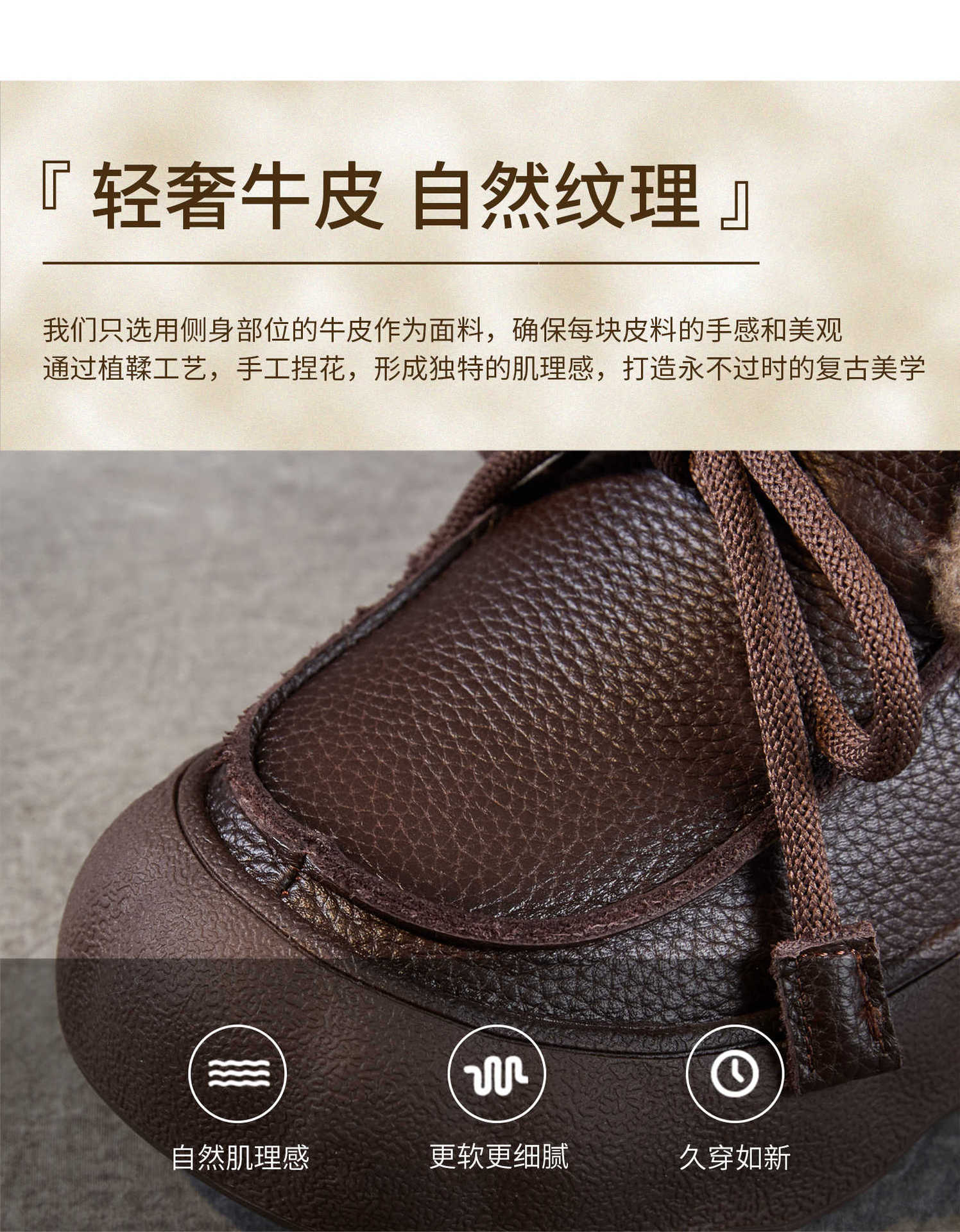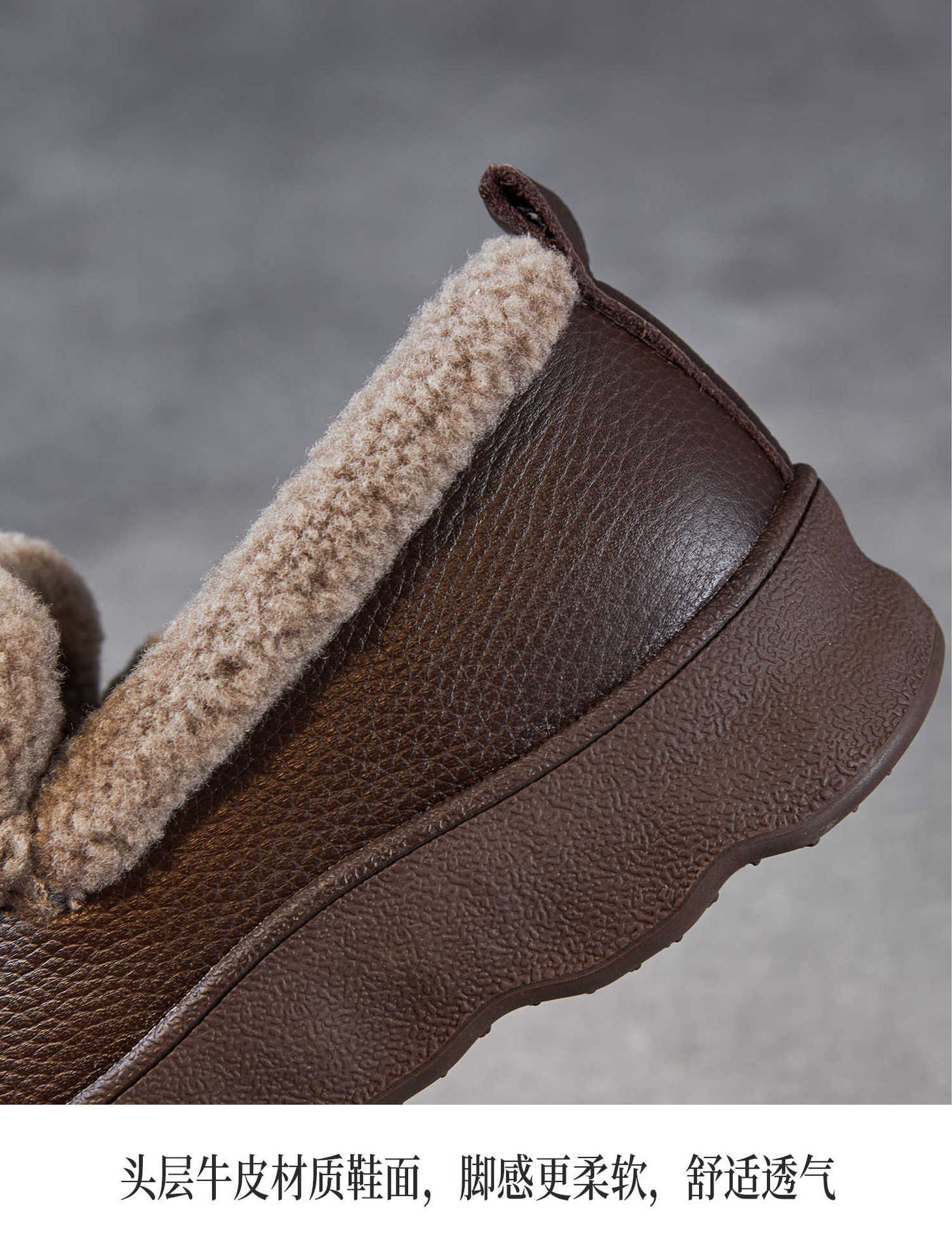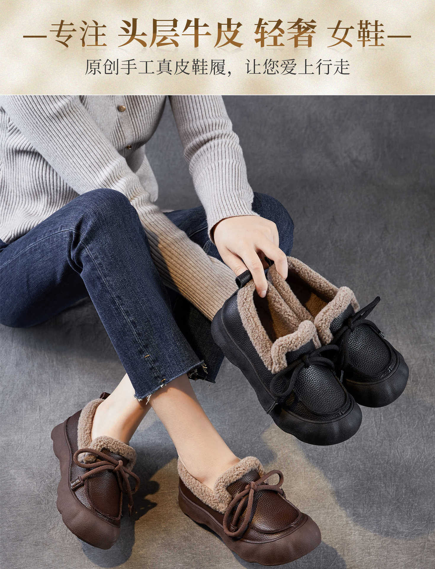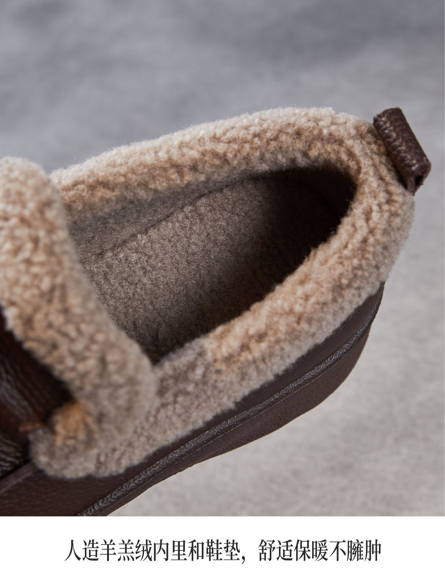 加绒保暖系带厚底休闲头层牛皮,复古平底毛毛棉鞋ZM258718