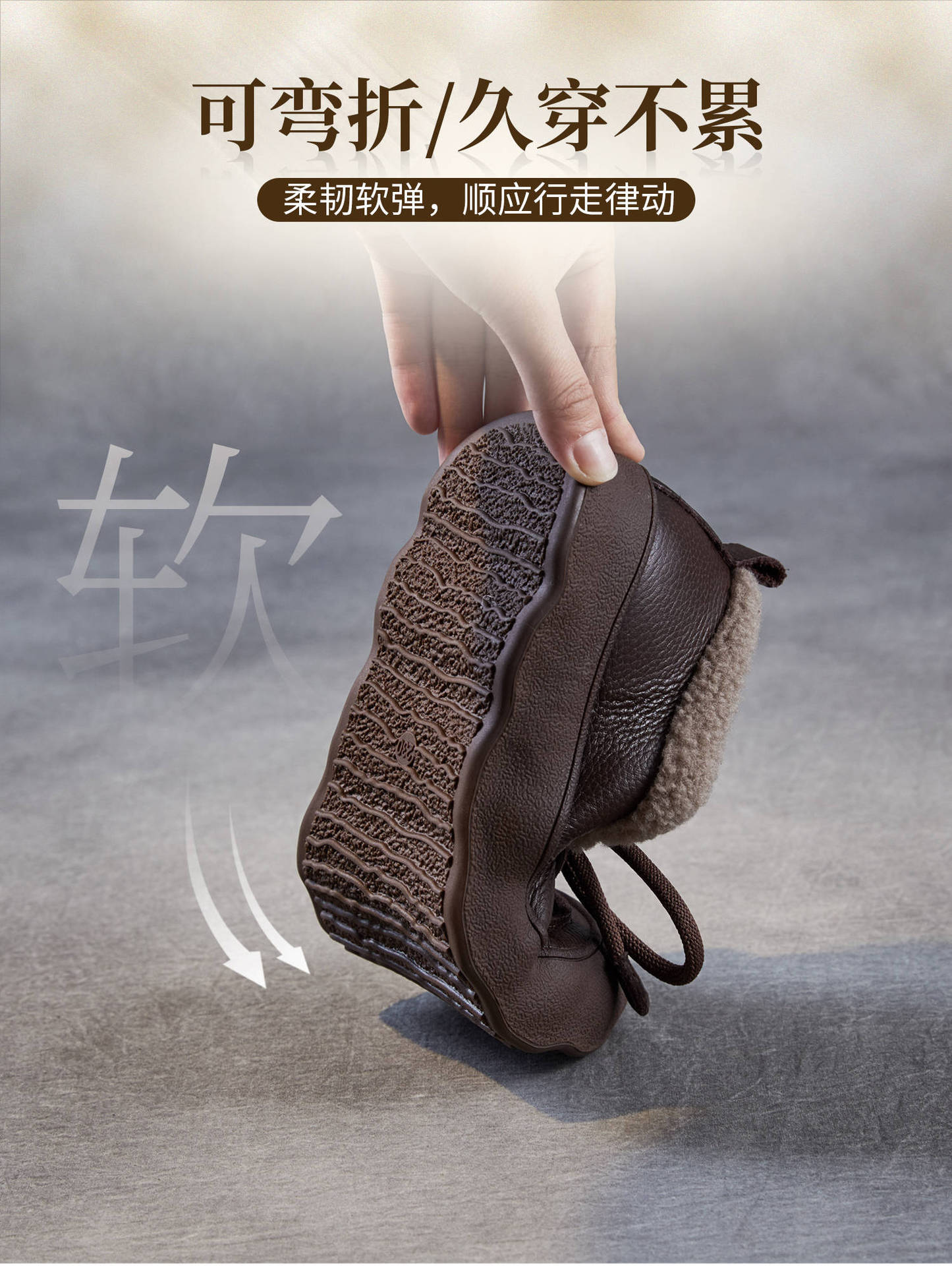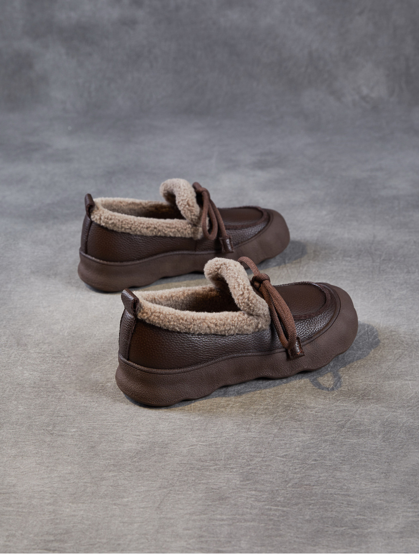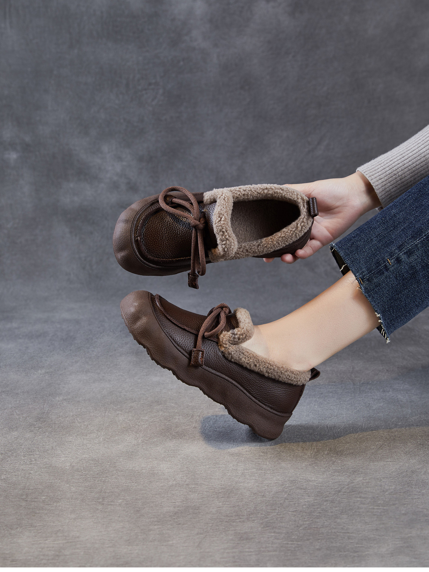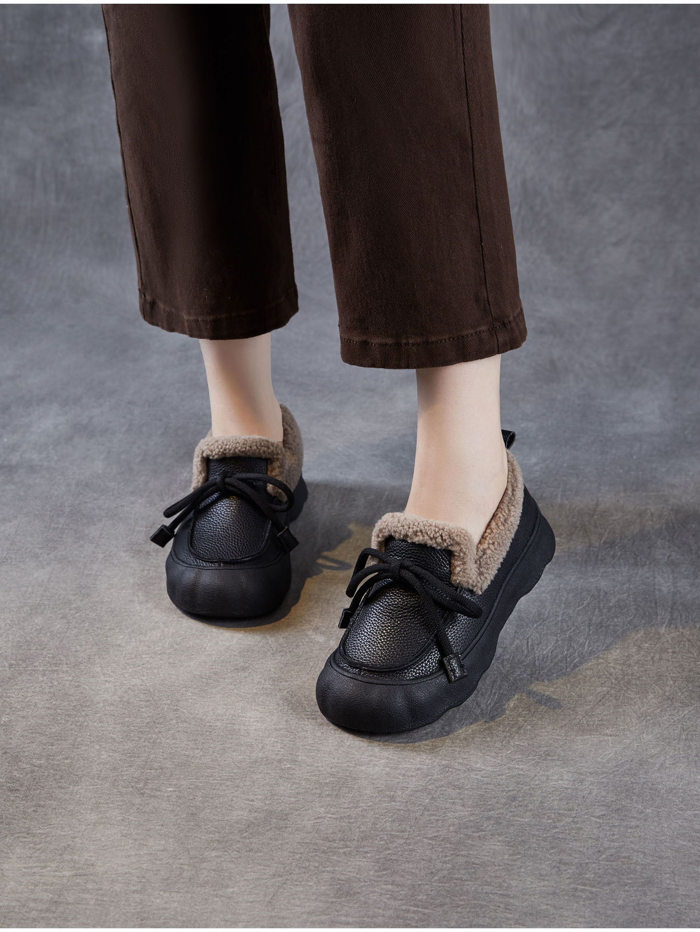 加绒保暖系带厚底休闲头层牛皮,复古平底毛毛棉鞋ZM258718