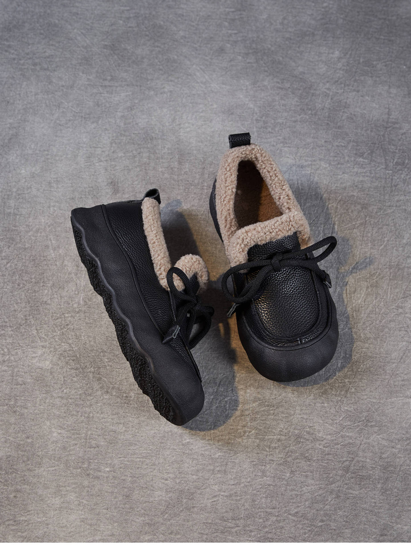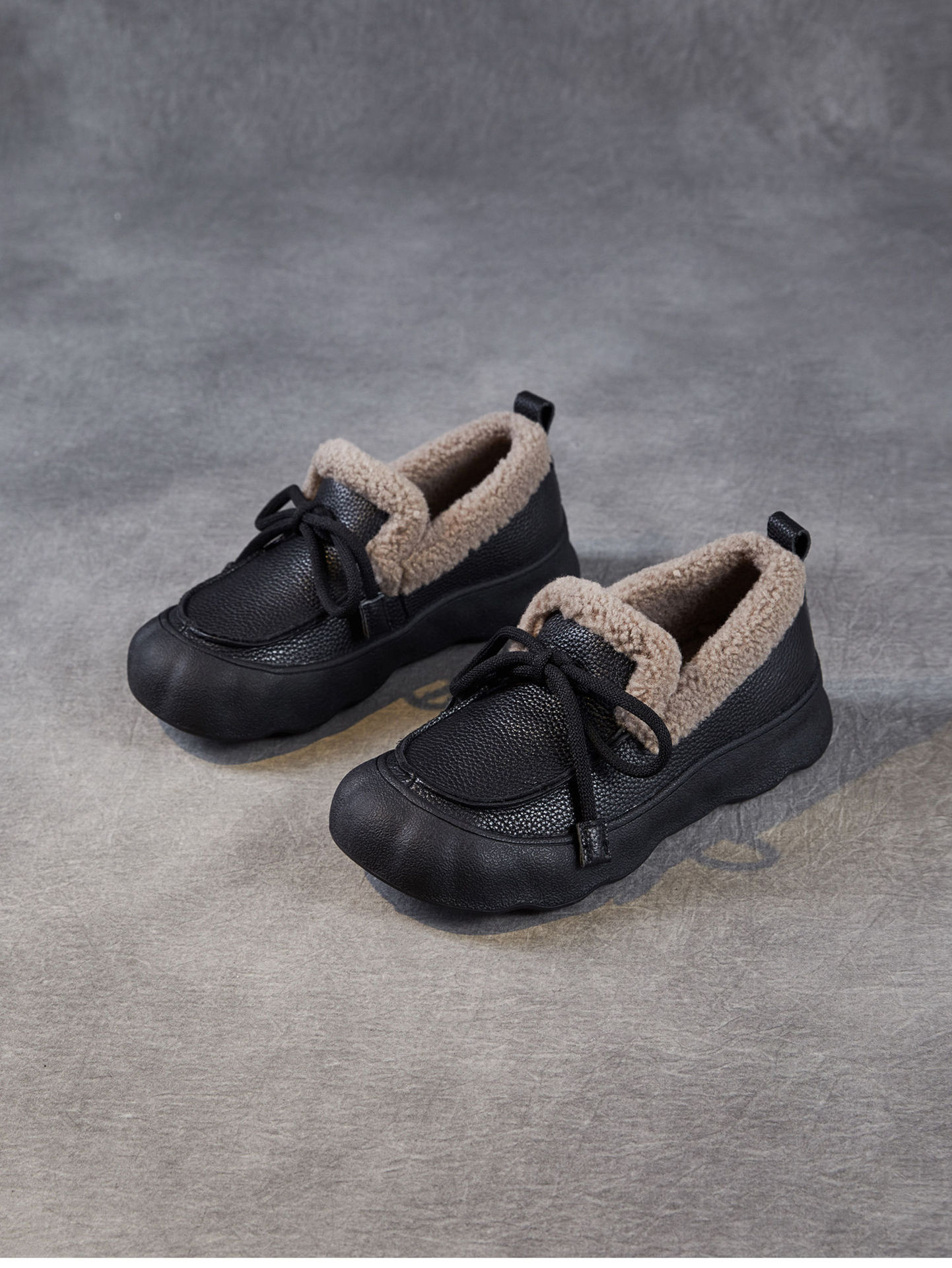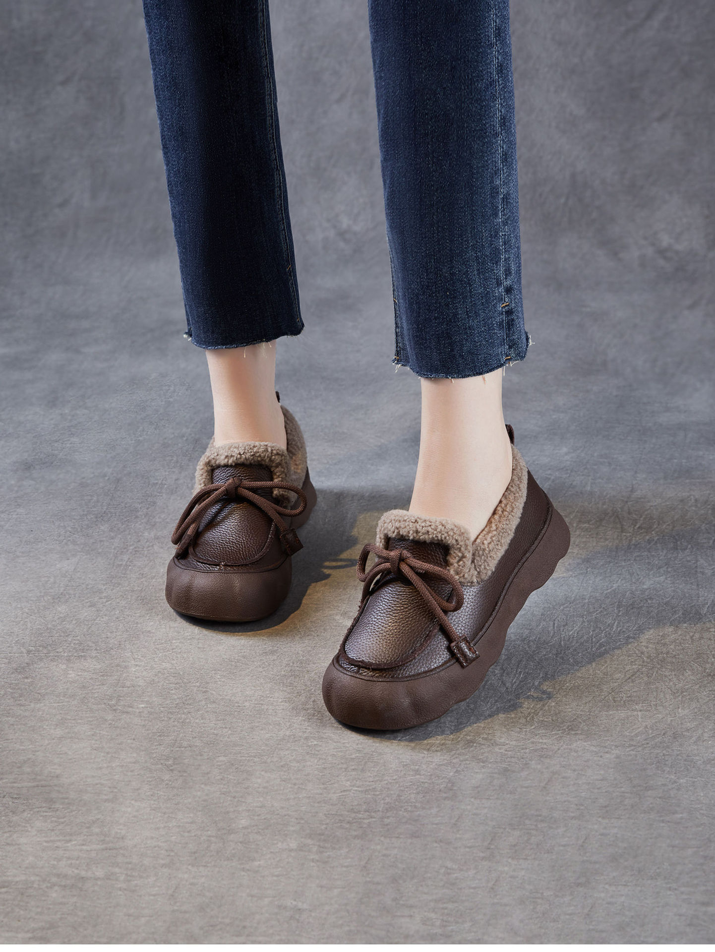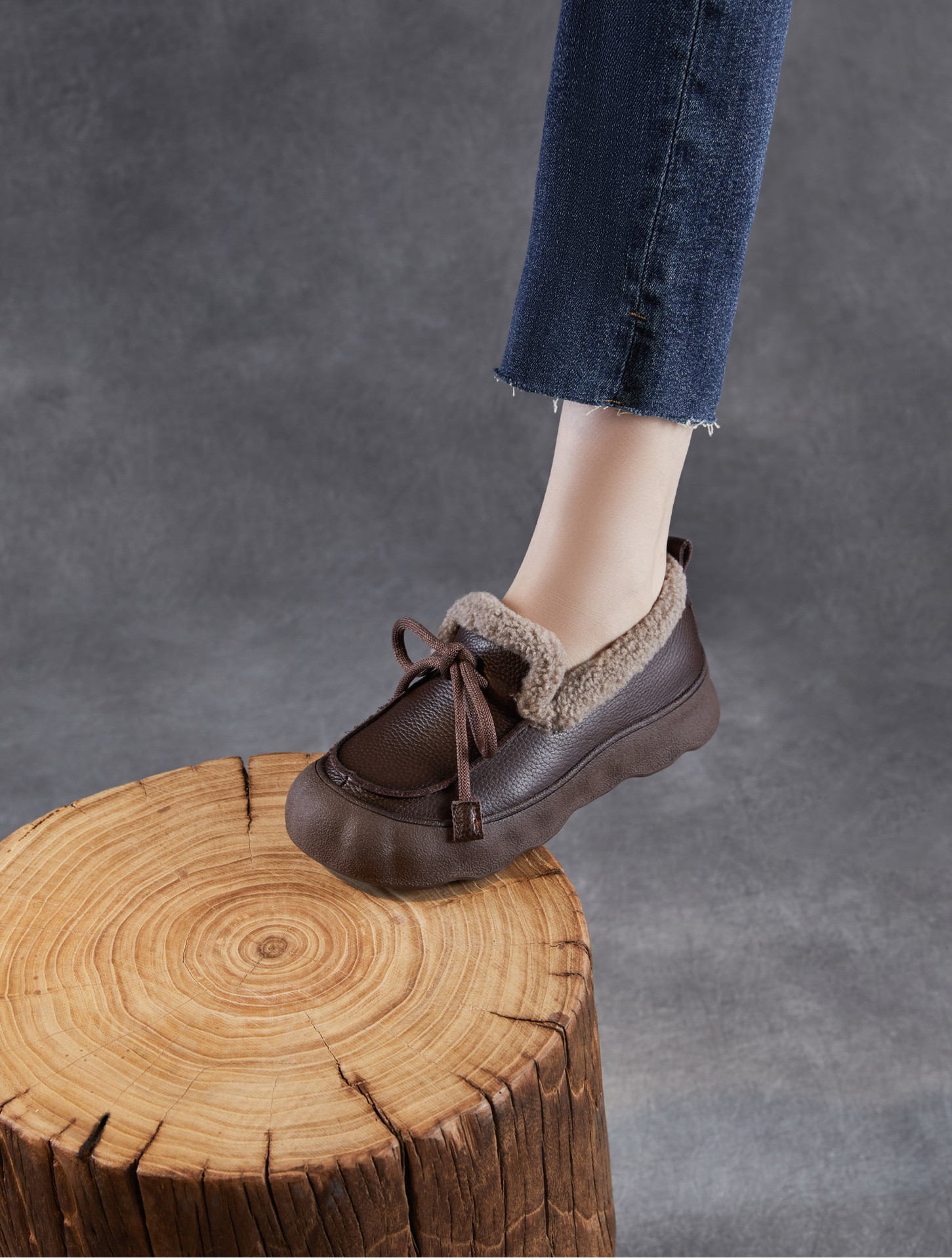 加绒保暖系带厚底休闲头层牛皮,复古平底毛毛棉鞋ZM258718