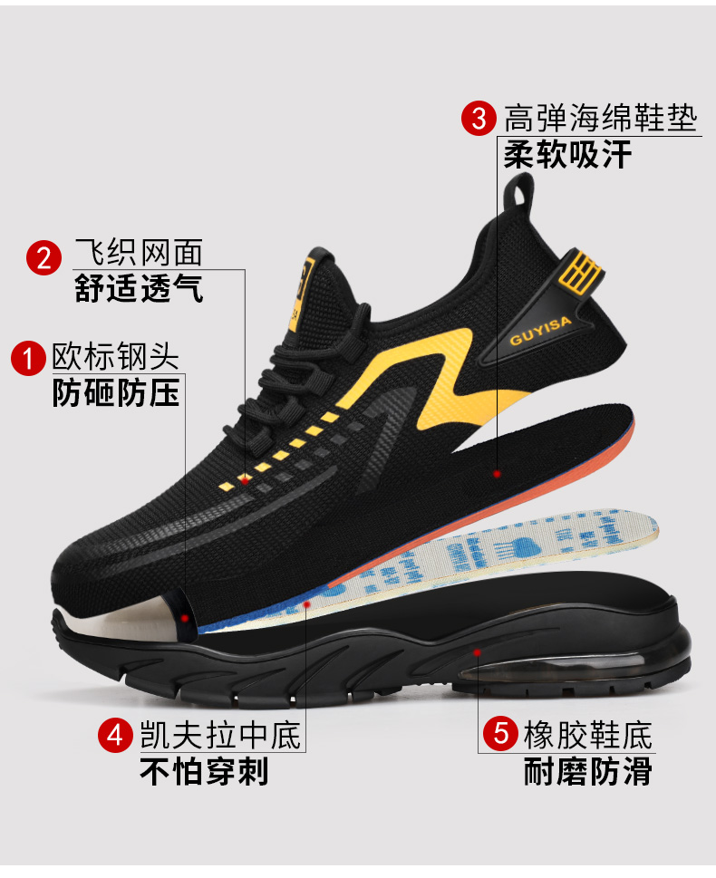 【爆款】劳保鞋男女同款防砸防刺轻便夏季透气带钢板耐磨工地鞋