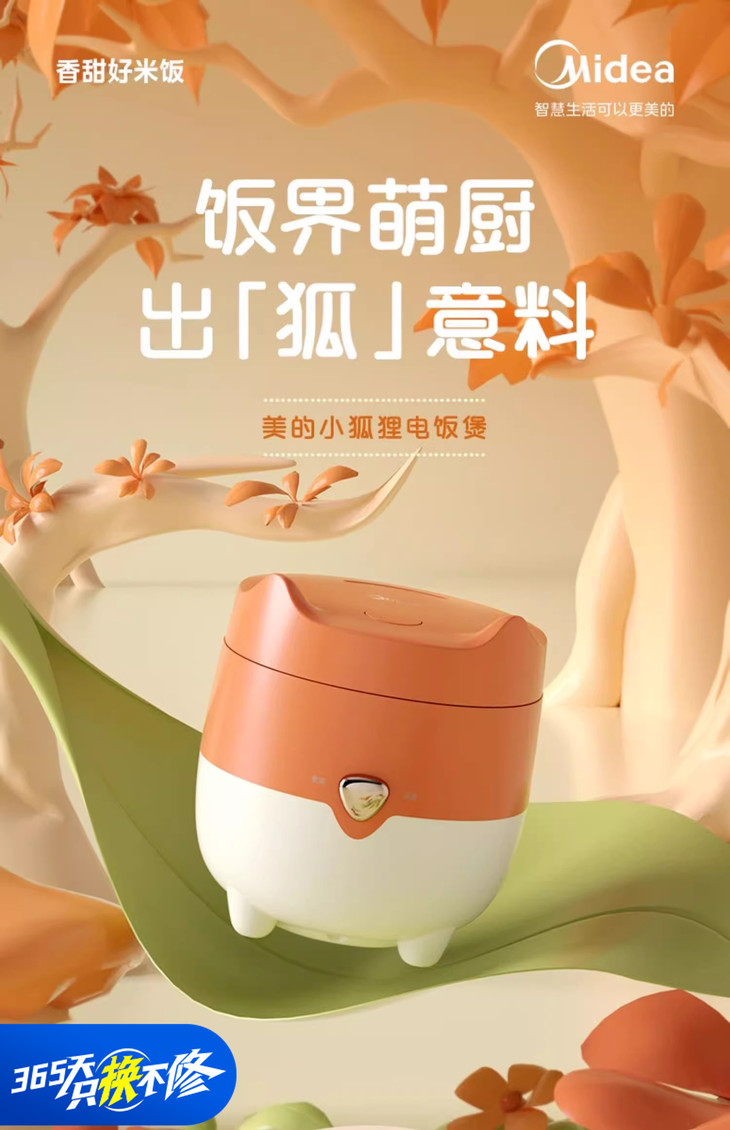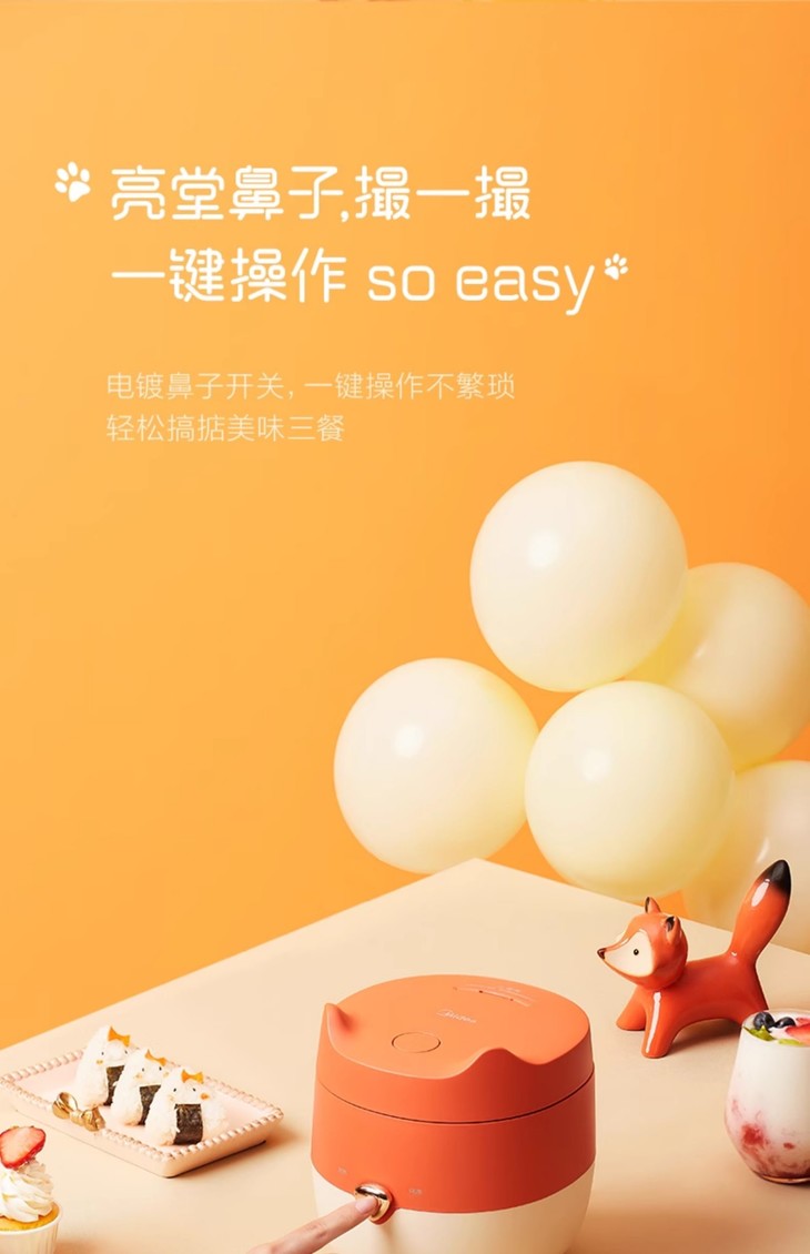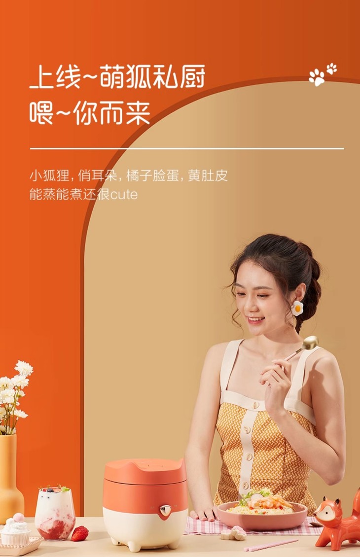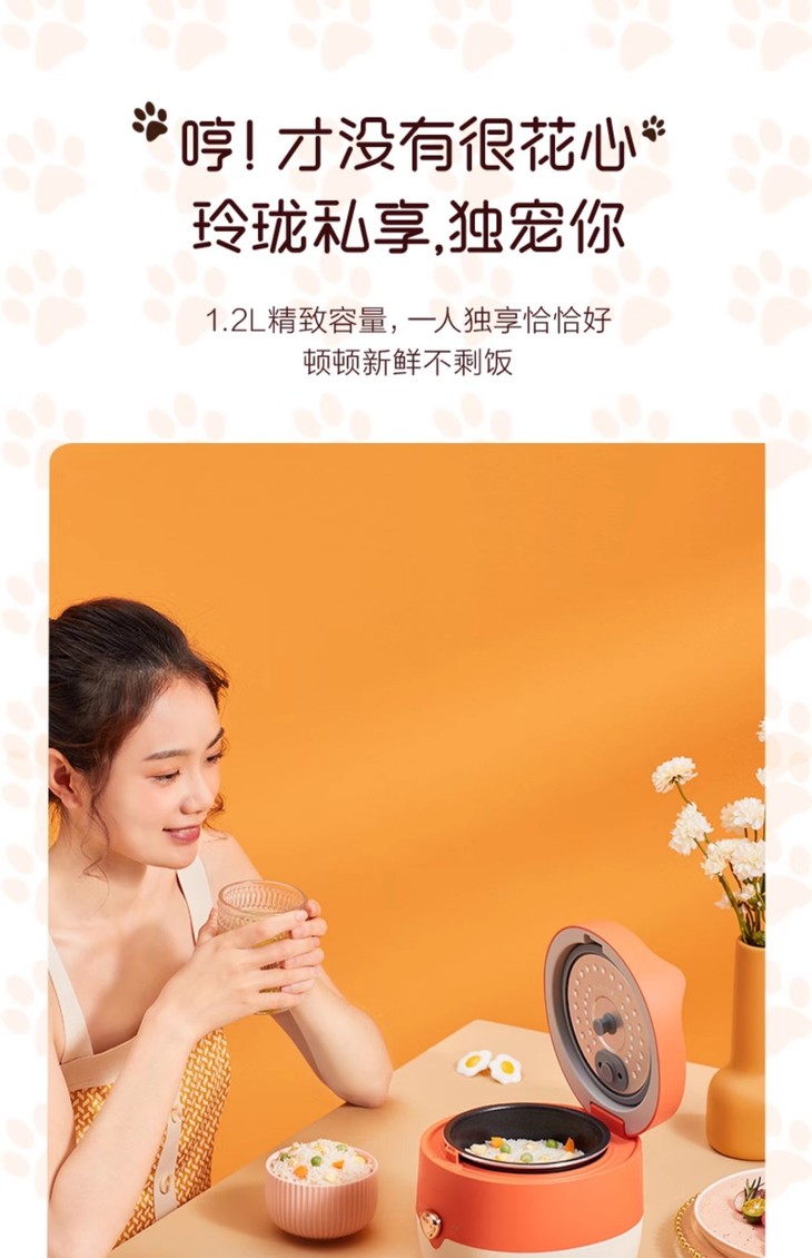 【美的】小型电饭煲家用橙色【1.2L 狐狸饭煲】MB-FB12X1-105B一人食学生宿舍迷你电饭锅煮饭
