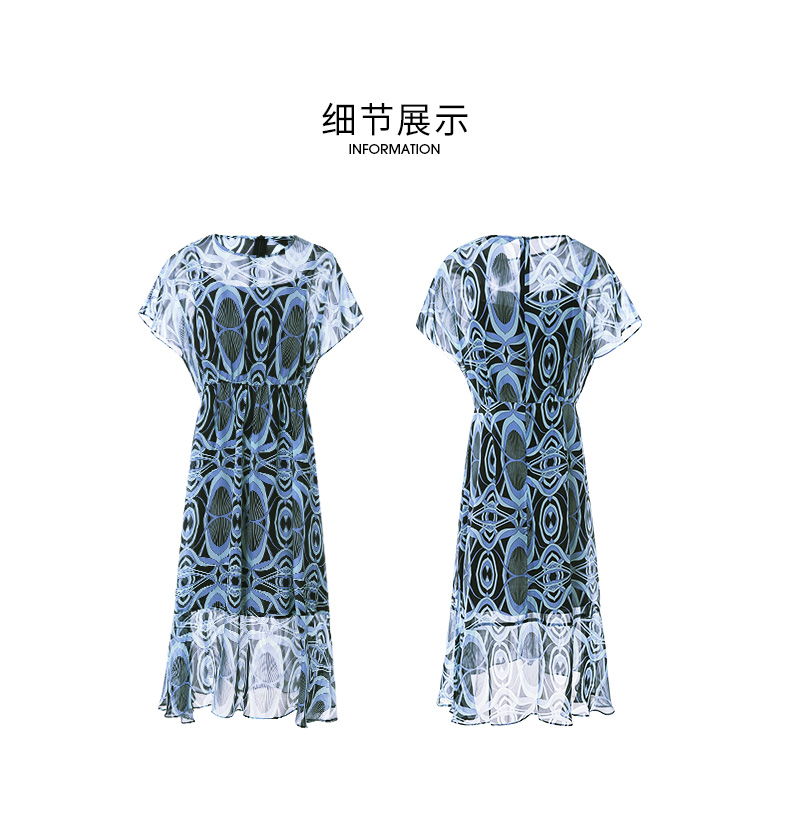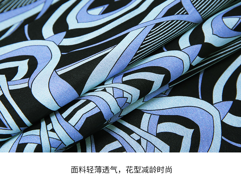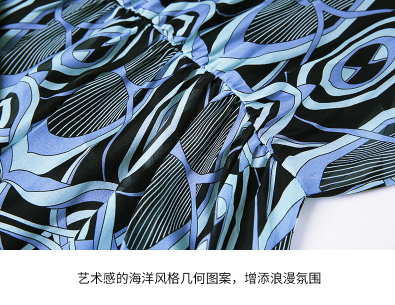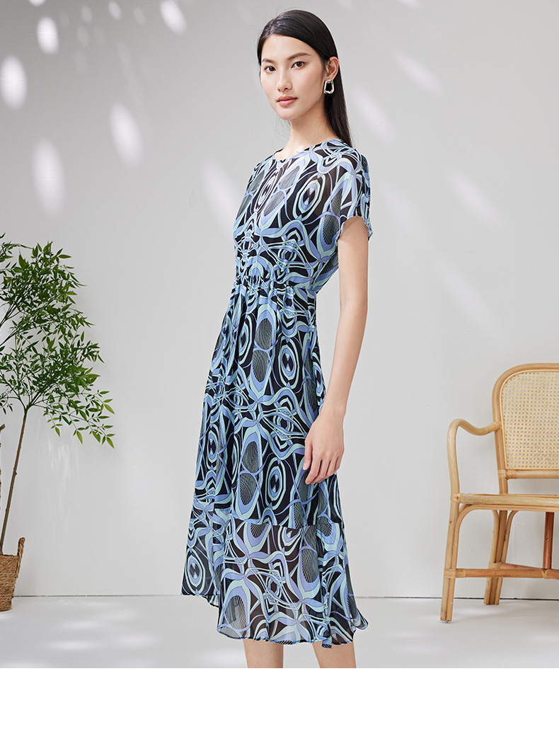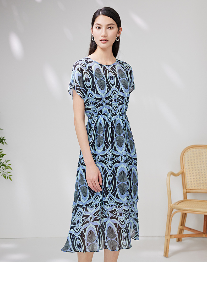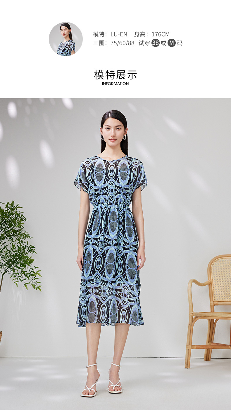 EITIE爱特爱夏款新品100%桑蚕丝优雅显瘦高腰舒适印花连衣裙7007728