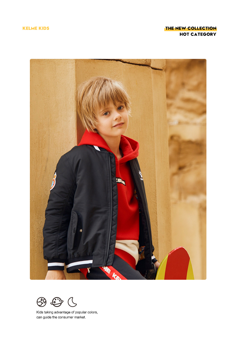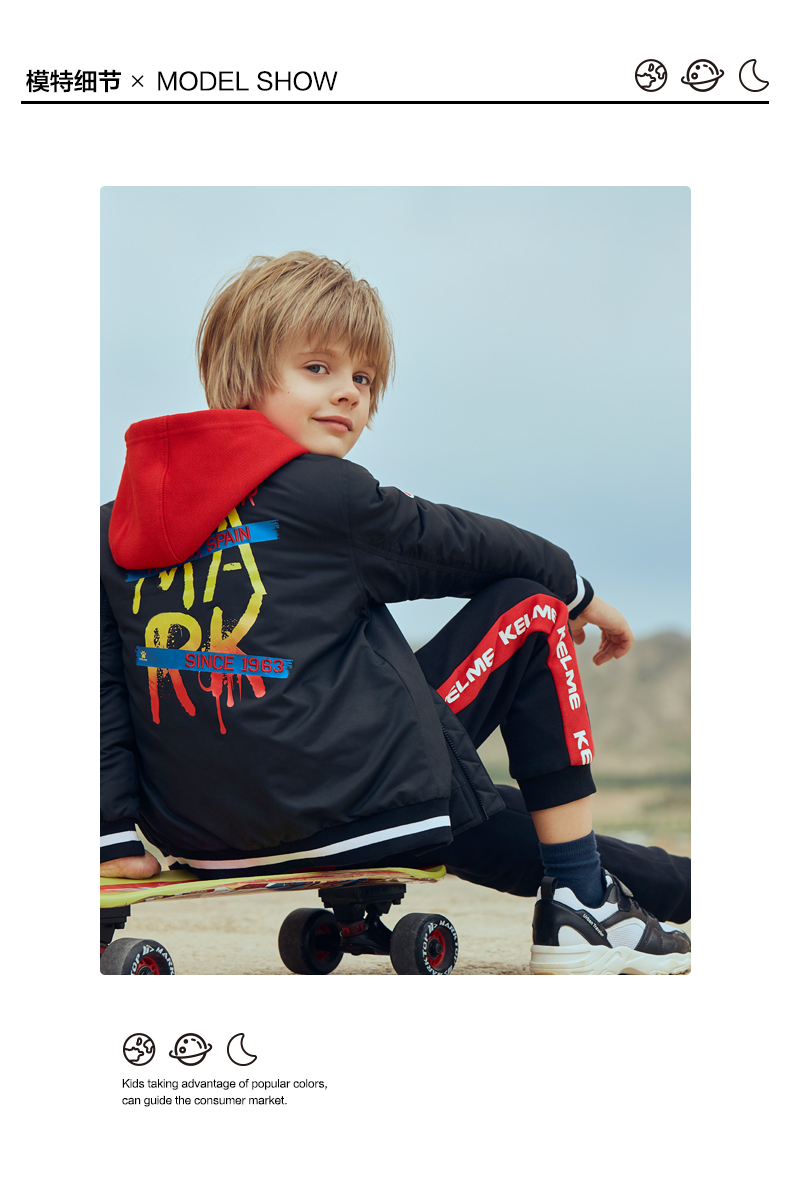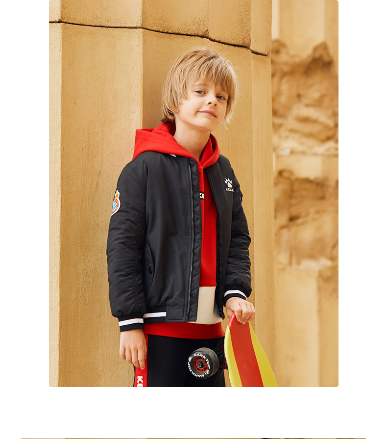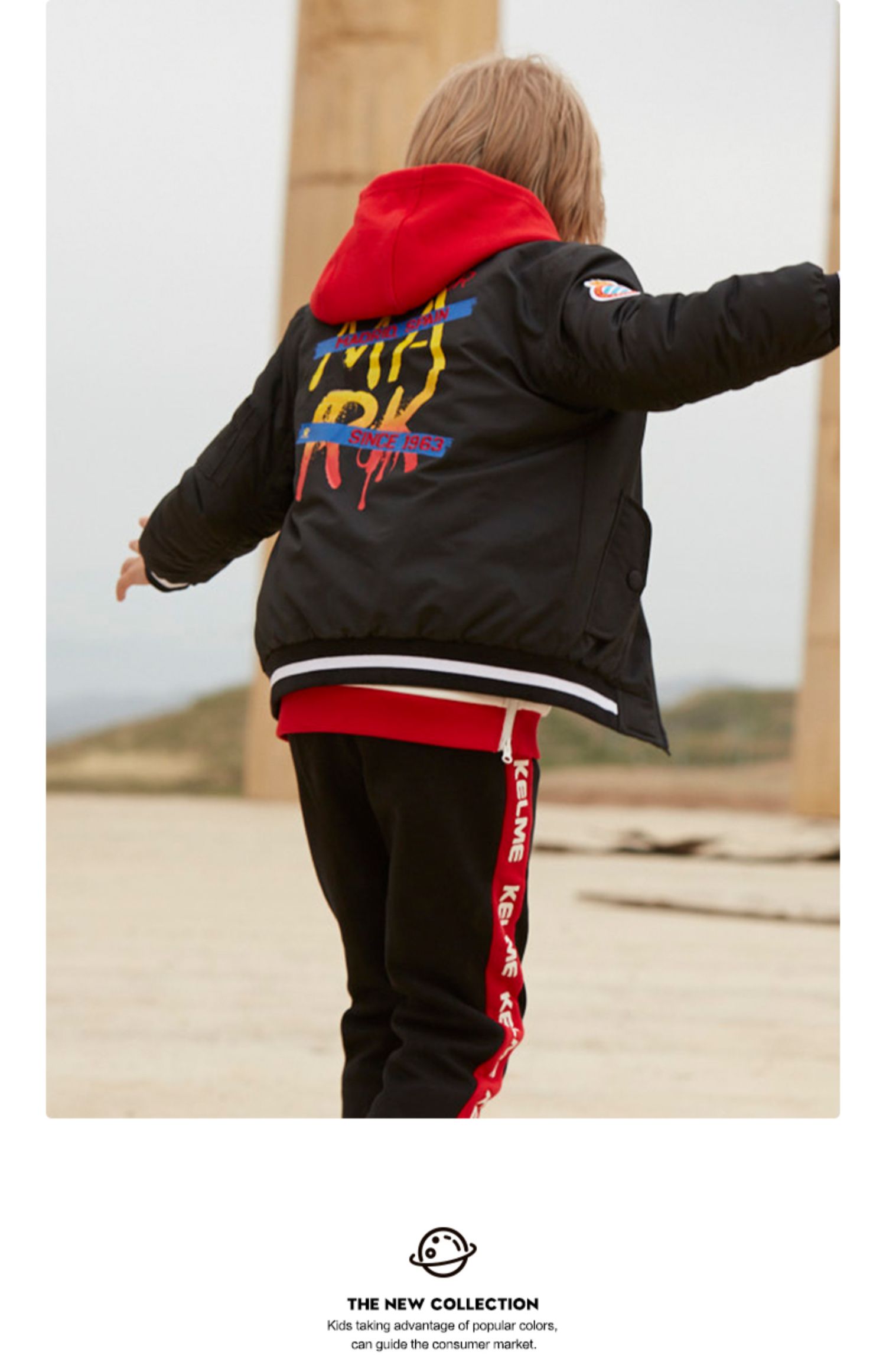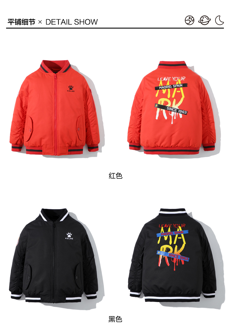 kelme(kids)童装男童棒球领棉衣新款烫画开衫拉链外套上衣,