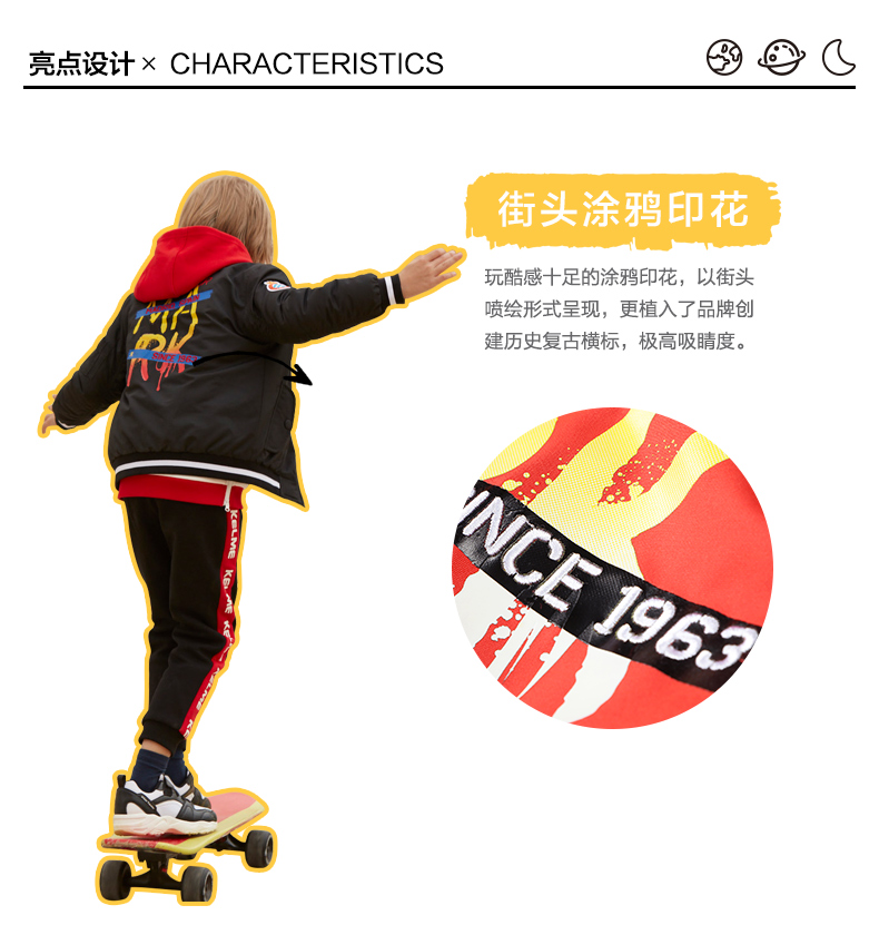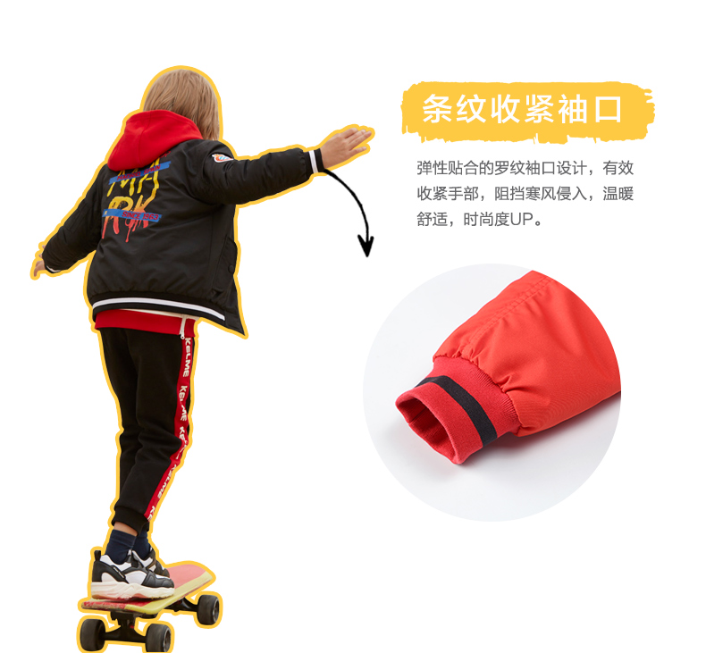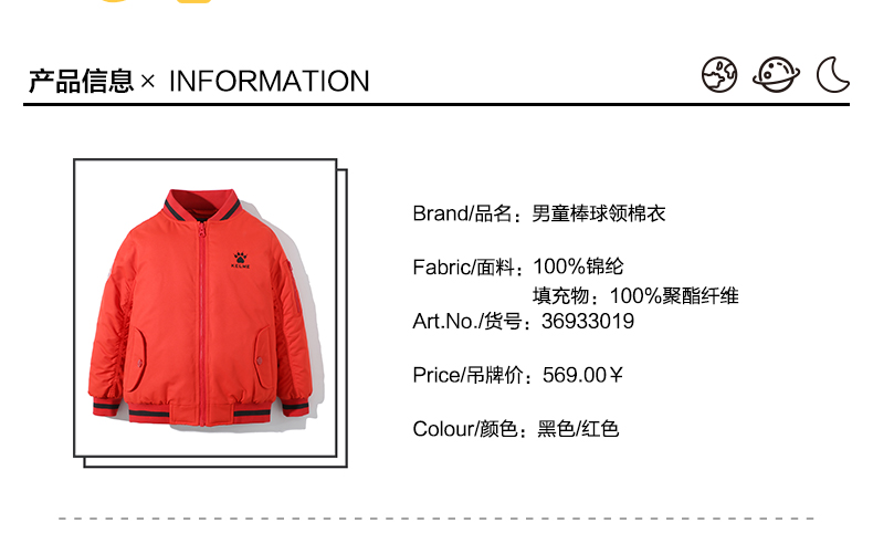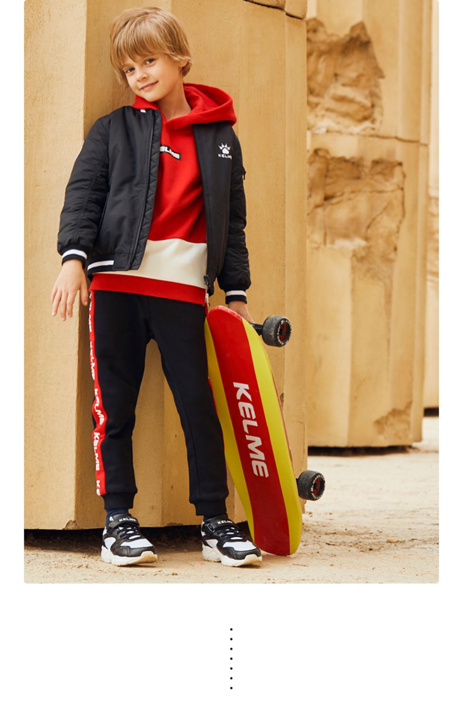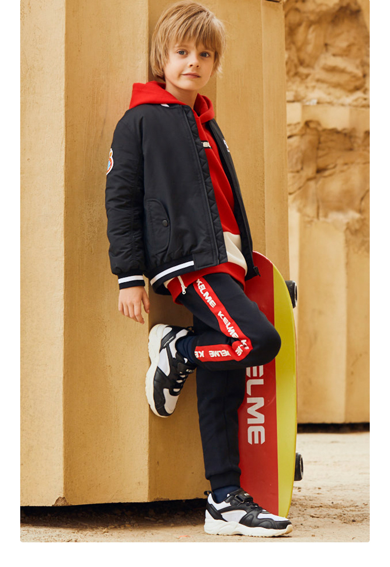 kelme(kids)童装男童棒球领棉衣新款烫画开衫拉链外套上衣,