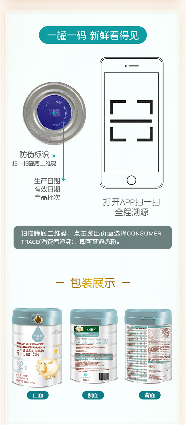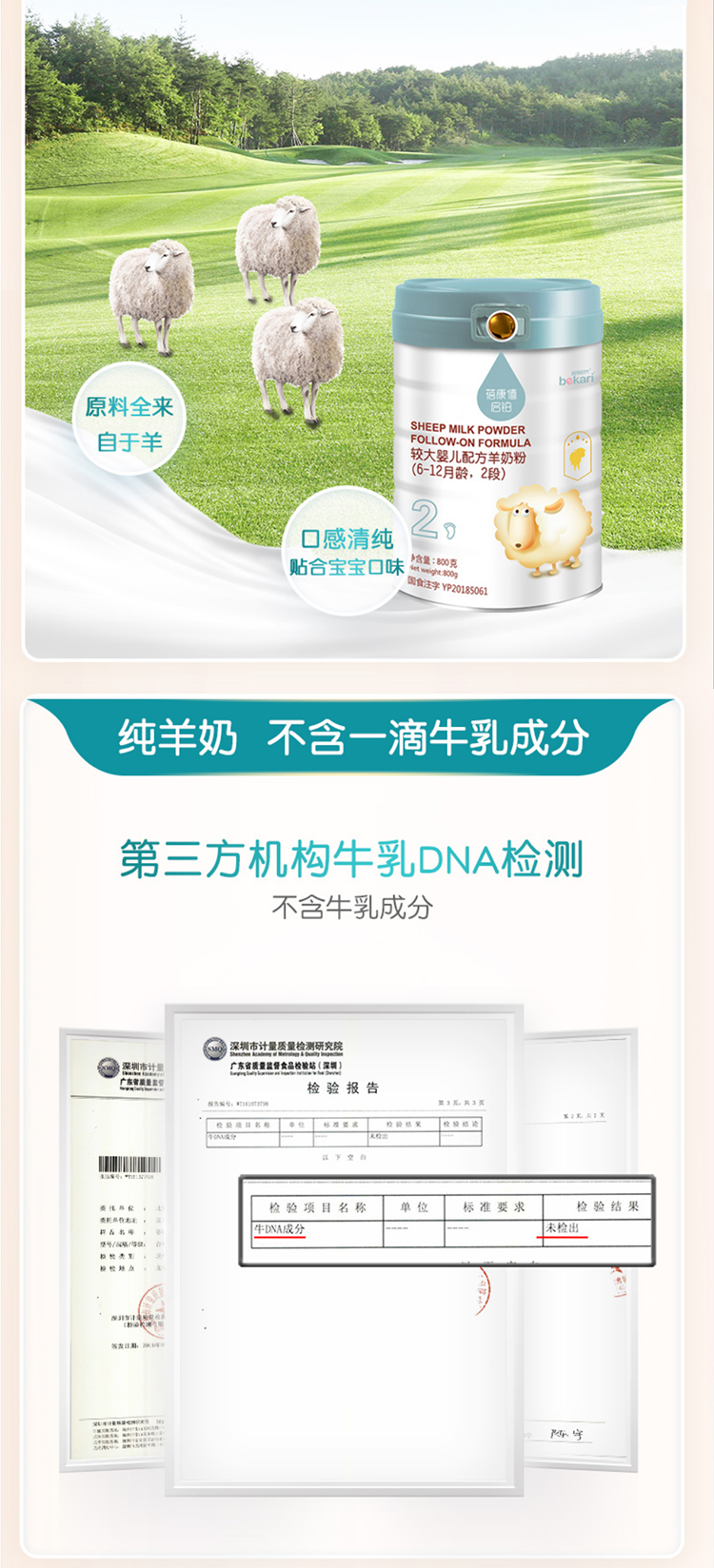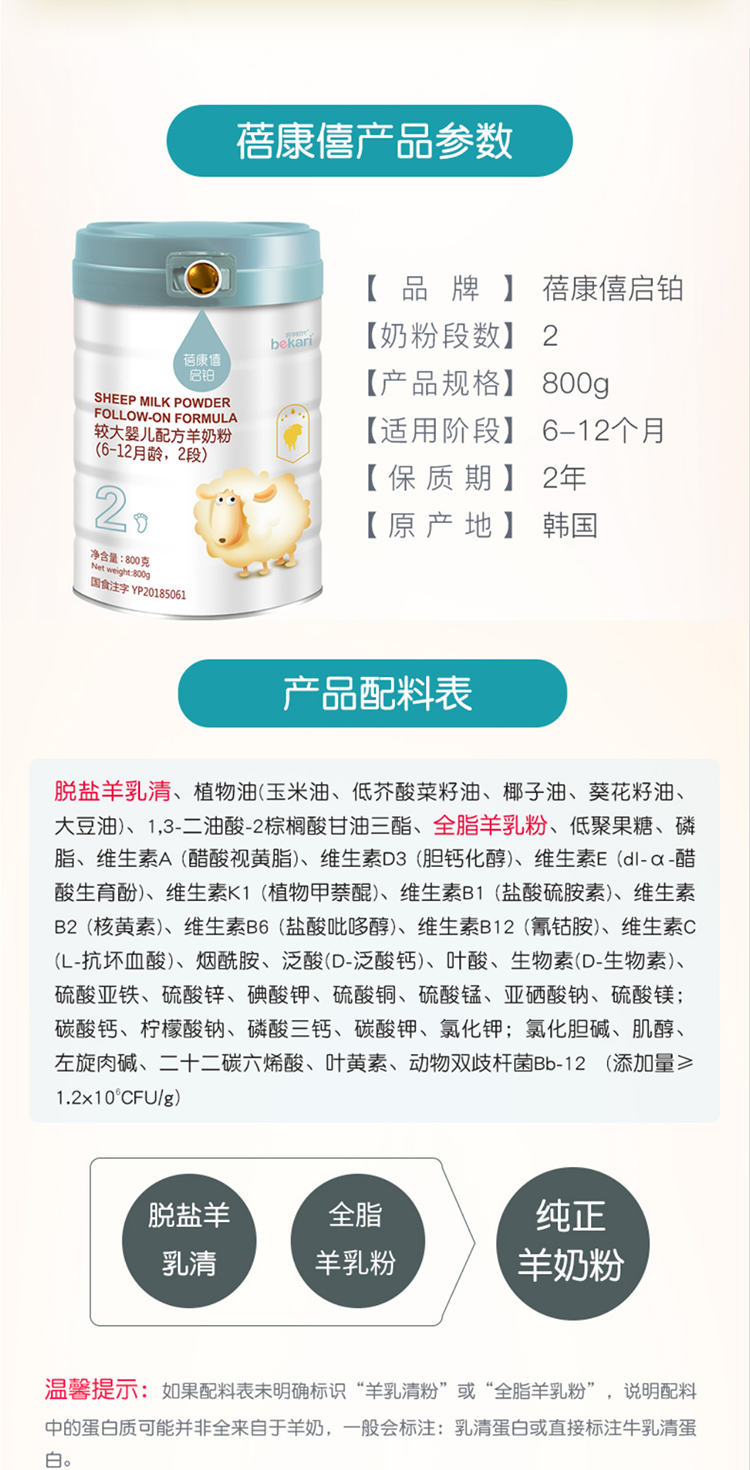 韩国进口蓓康僖启铂较大婴儿配方羊奶粉2段 800g