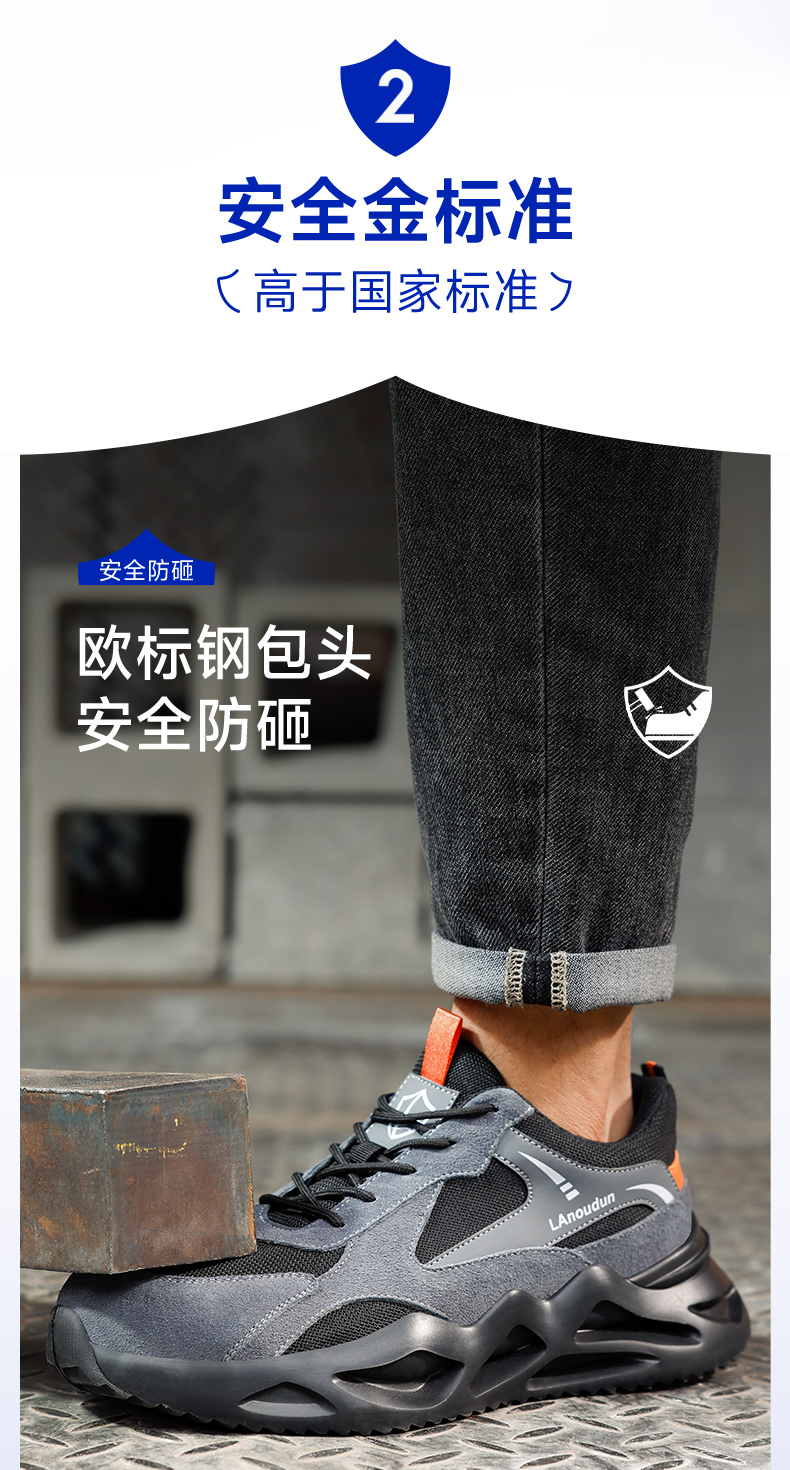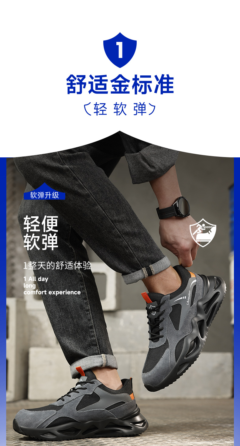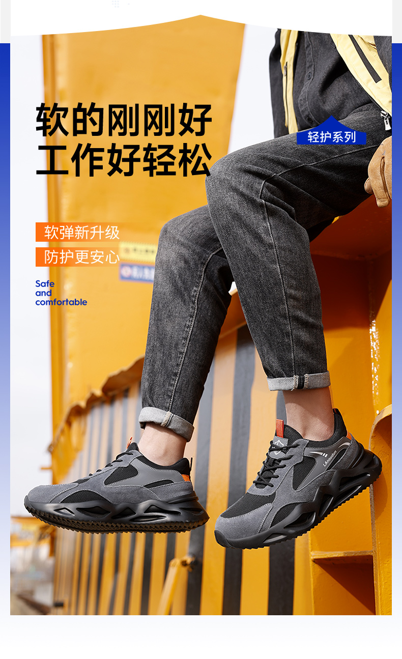 蓝鸥盾四季款透气劳保鞋男超轻防砸防刺安全鞋钢包头工作鞋