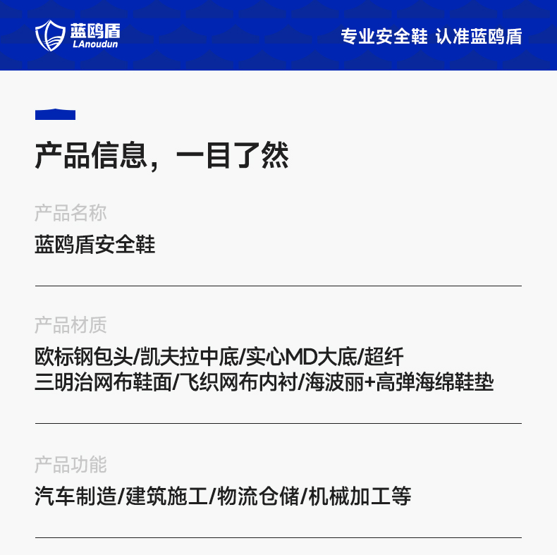 蓝鸥盾四季款新款防砸防刺安全鞋4.0凯夫拉MD底
