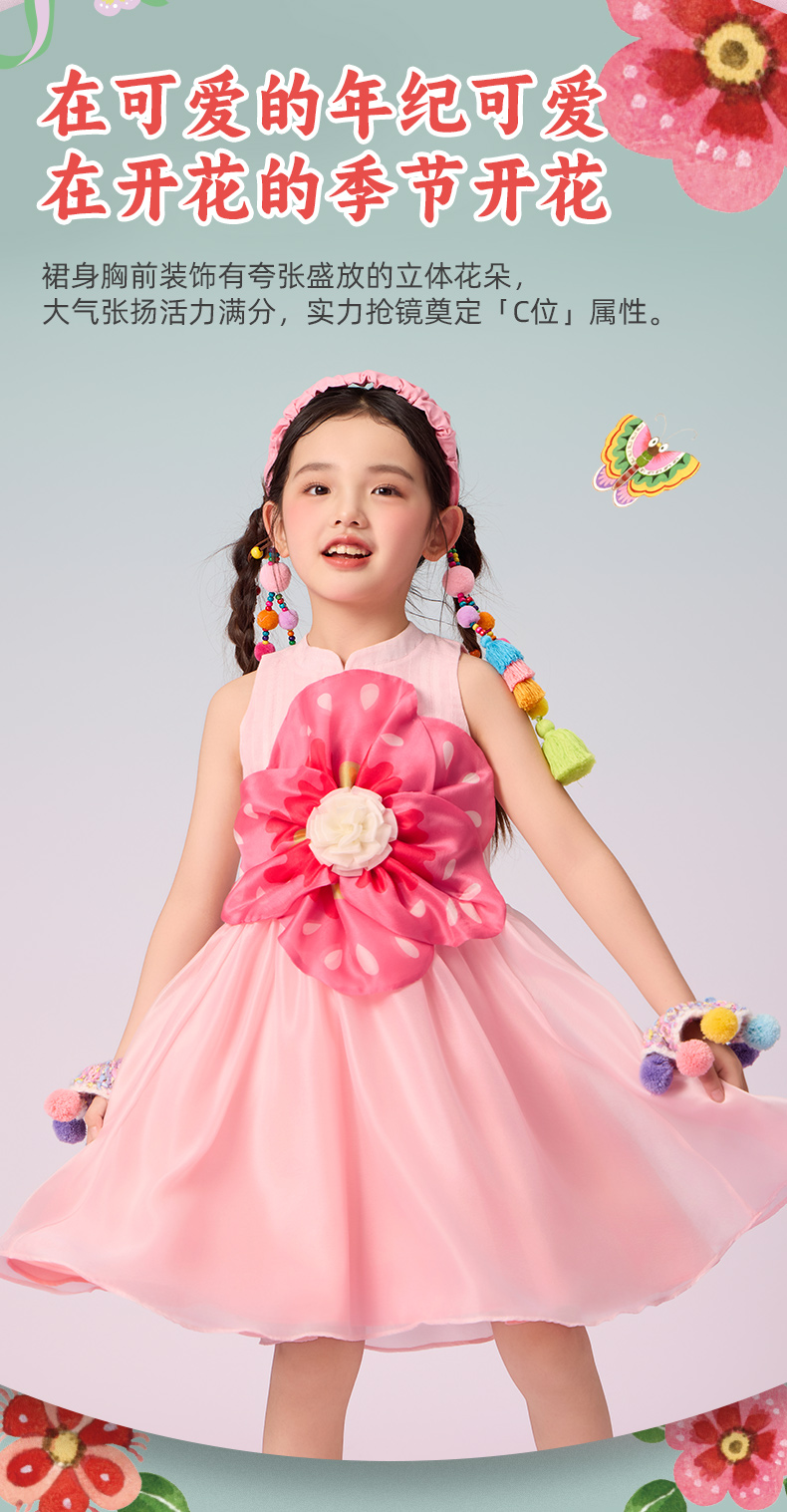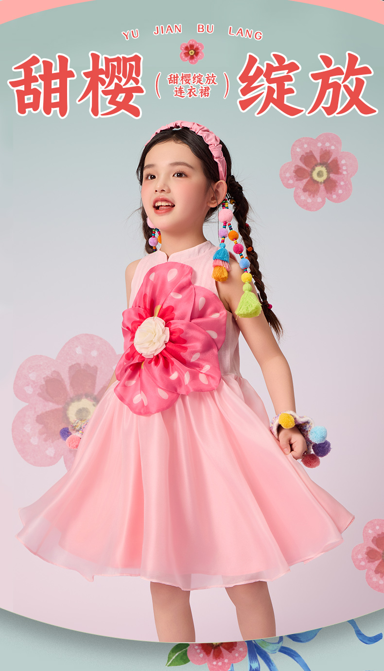 【年衣】连衣裙2025夏季新款儿童新中式公主裙子甜樱绽放连衣裙(预售5.26发货)