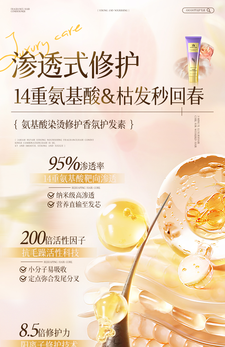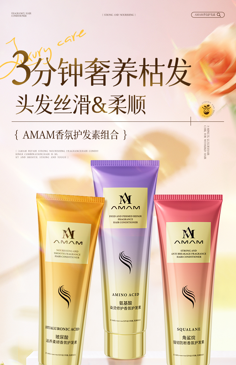 【品名】【超值3支装】AMAM香氛护发素组合 清爽柔顺 水润光泽 200ml*3支 【规格】 氨基酸护发素200ml*1 玻尿酸护发素200ml*1 角鲨烷护发素200ml*1 【许可证编号】粤妆20161240 【执行标准】QB/T 1975 【产地】国内 【保质期】3年 【发货包装】独立包装 【发货地】广州 【发货快递】中通、圆通、申通、韵达随机发 【不发货区域】新疆、西藏、港澳台 【发货时效】48-72小时,周末节假日顺延 |