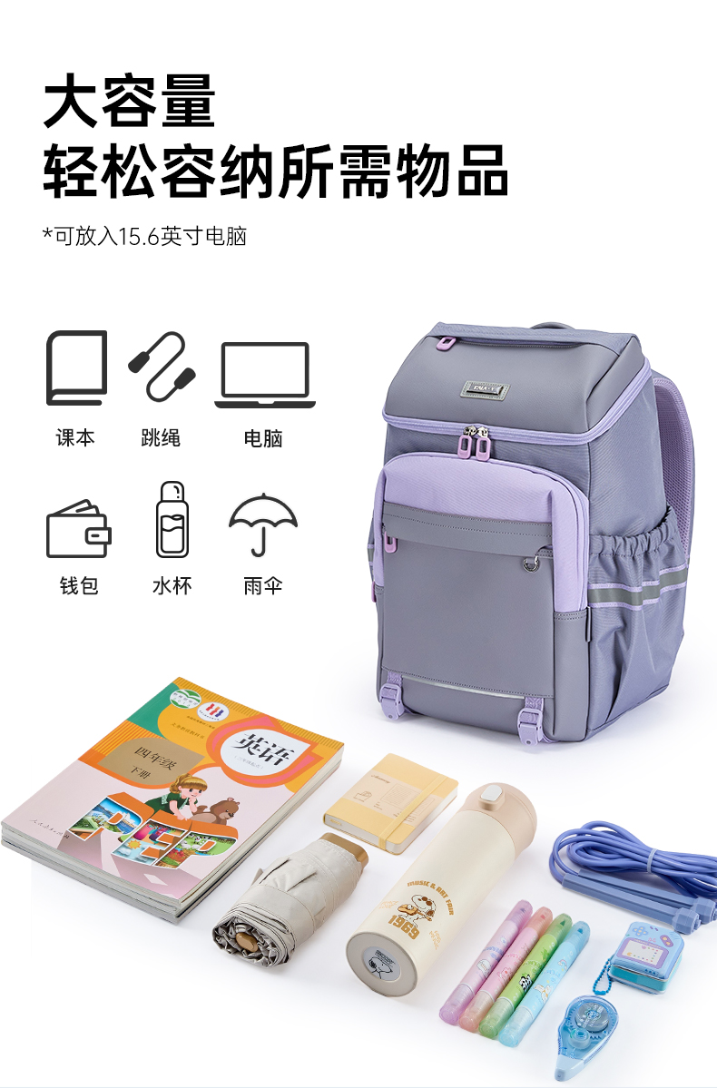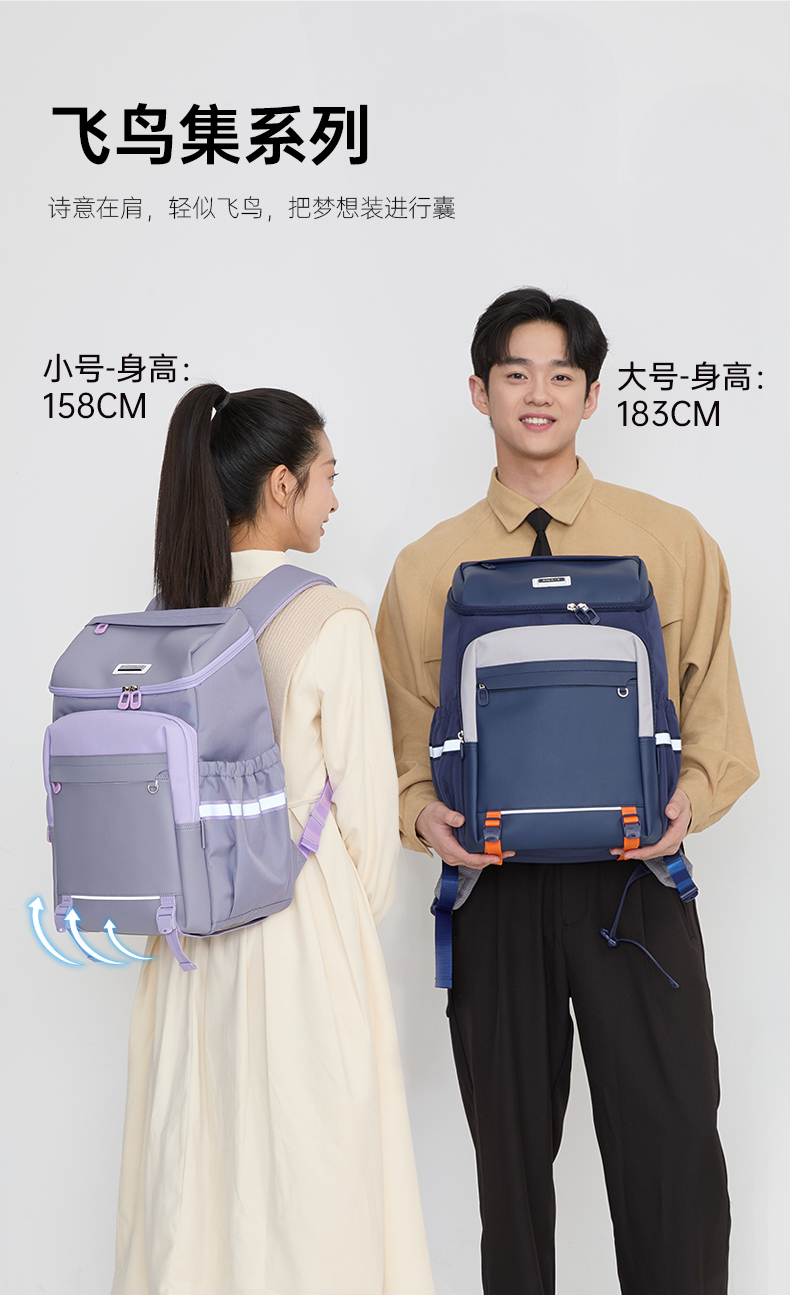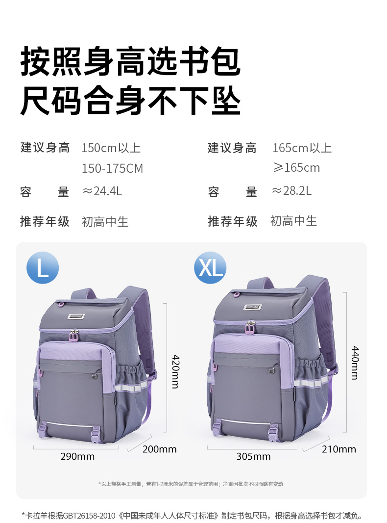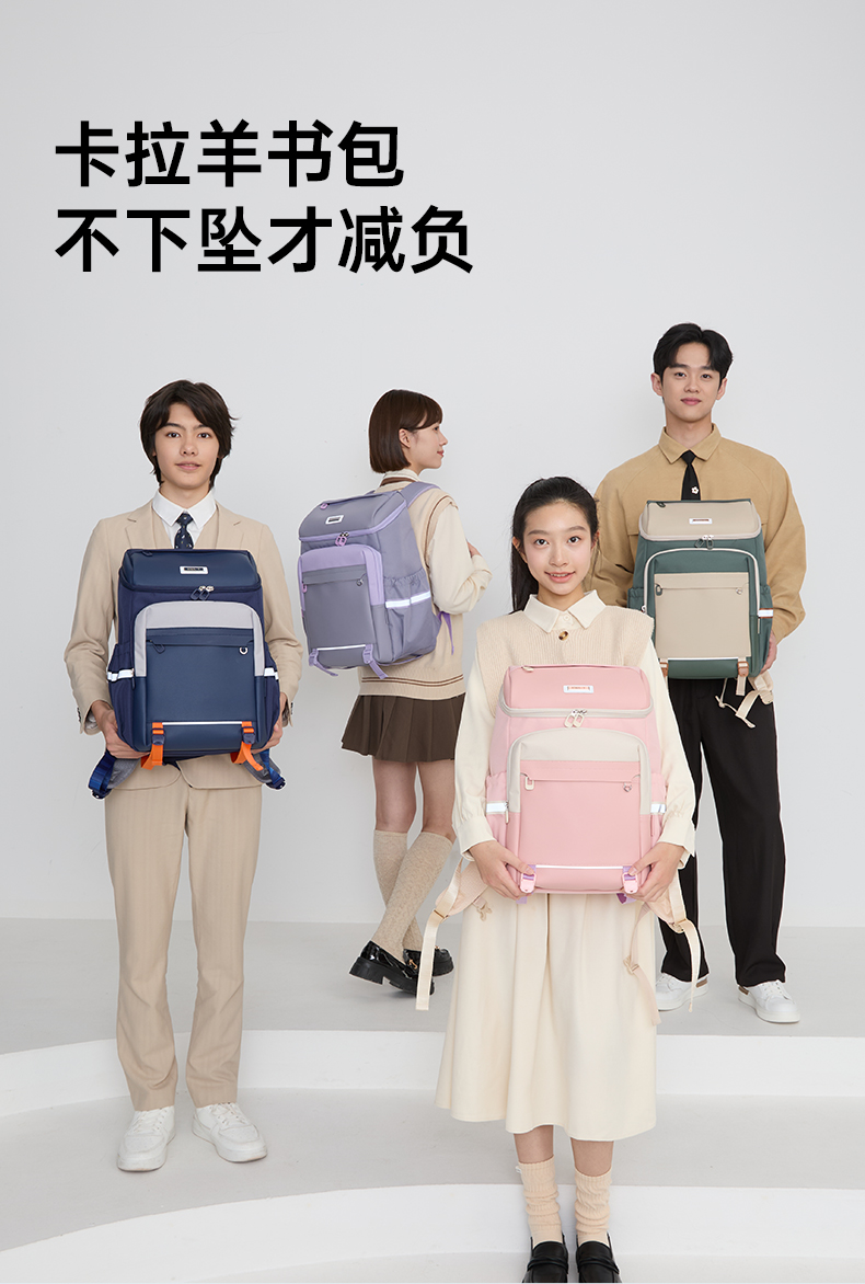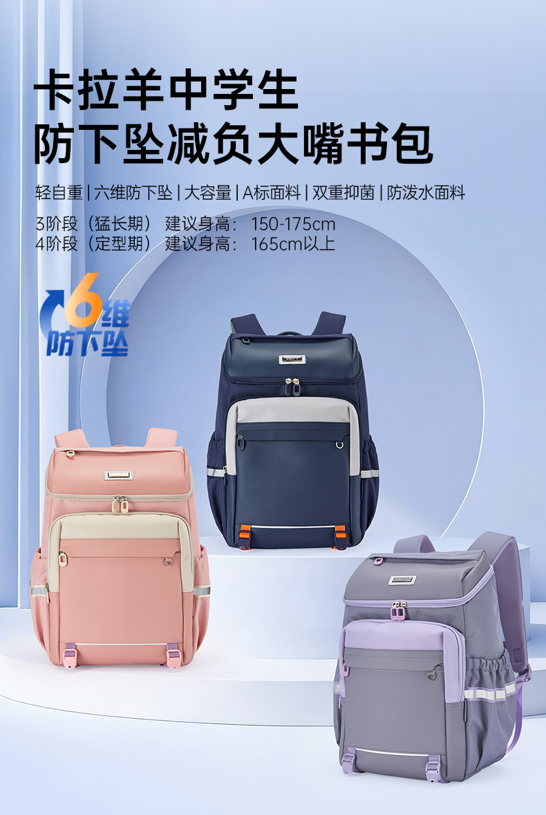 【大嘴书包3.0】卡拉羊初高中生6维减负防下坠大嘴书包大容量双肩背包飞鸟集CX5195/L