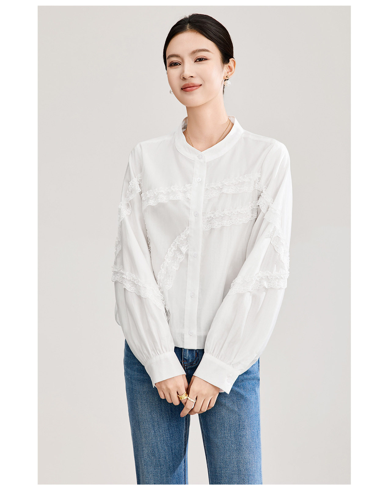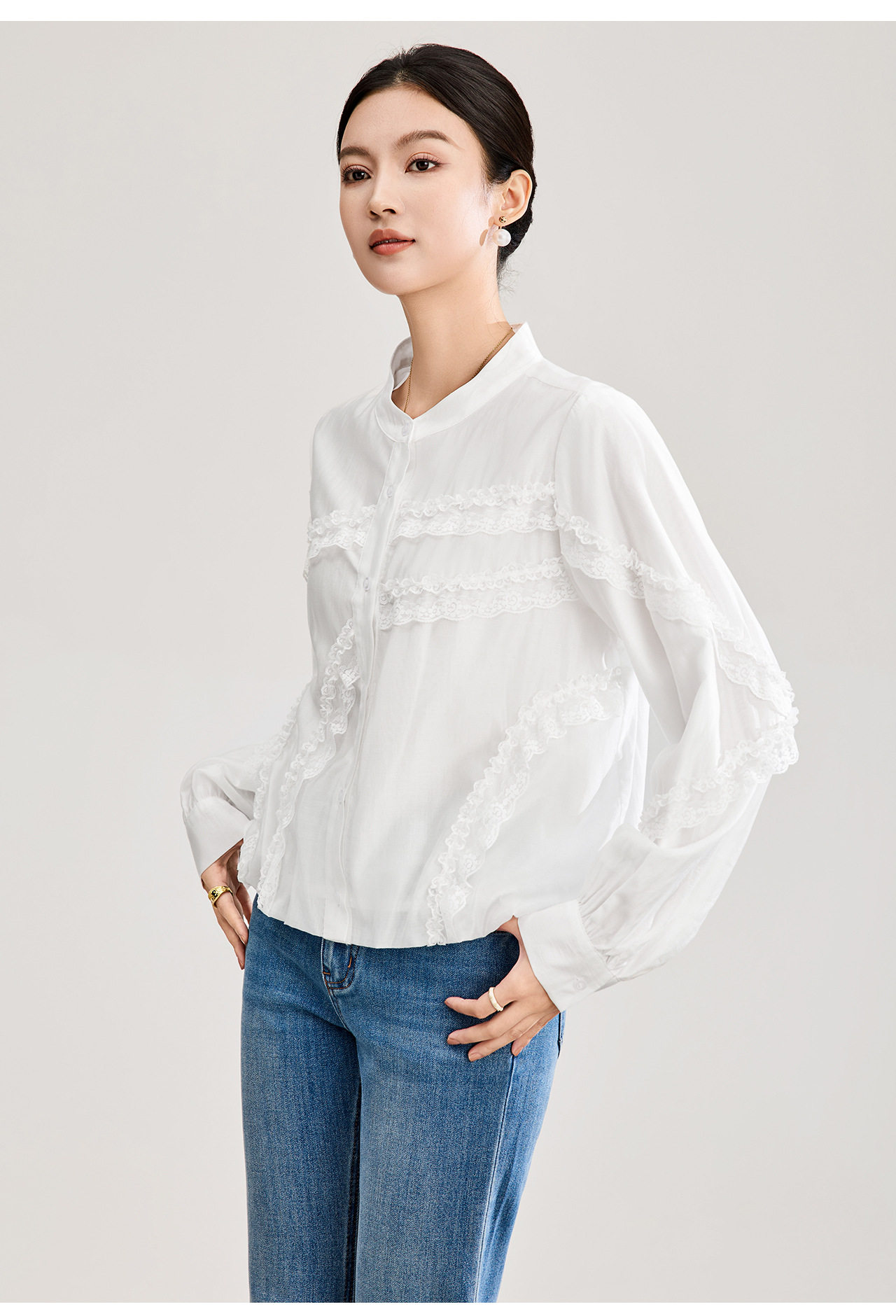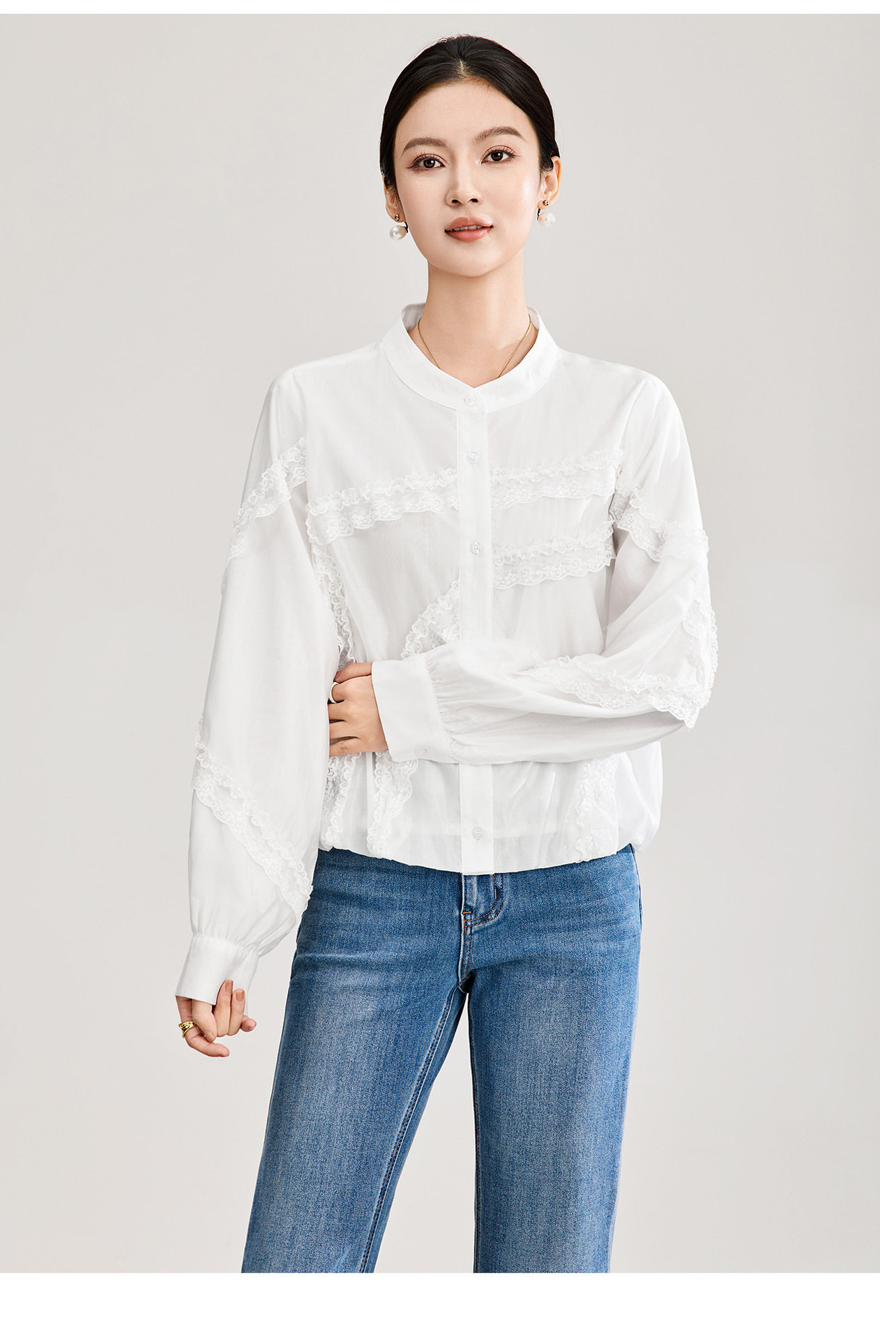 「高货wl」全新升级【铂金会员275/天猫369/差价94】(00843)洛诗琳法式气质蕾丝拼接衬衫2026春季新款天丝刺绣上衣