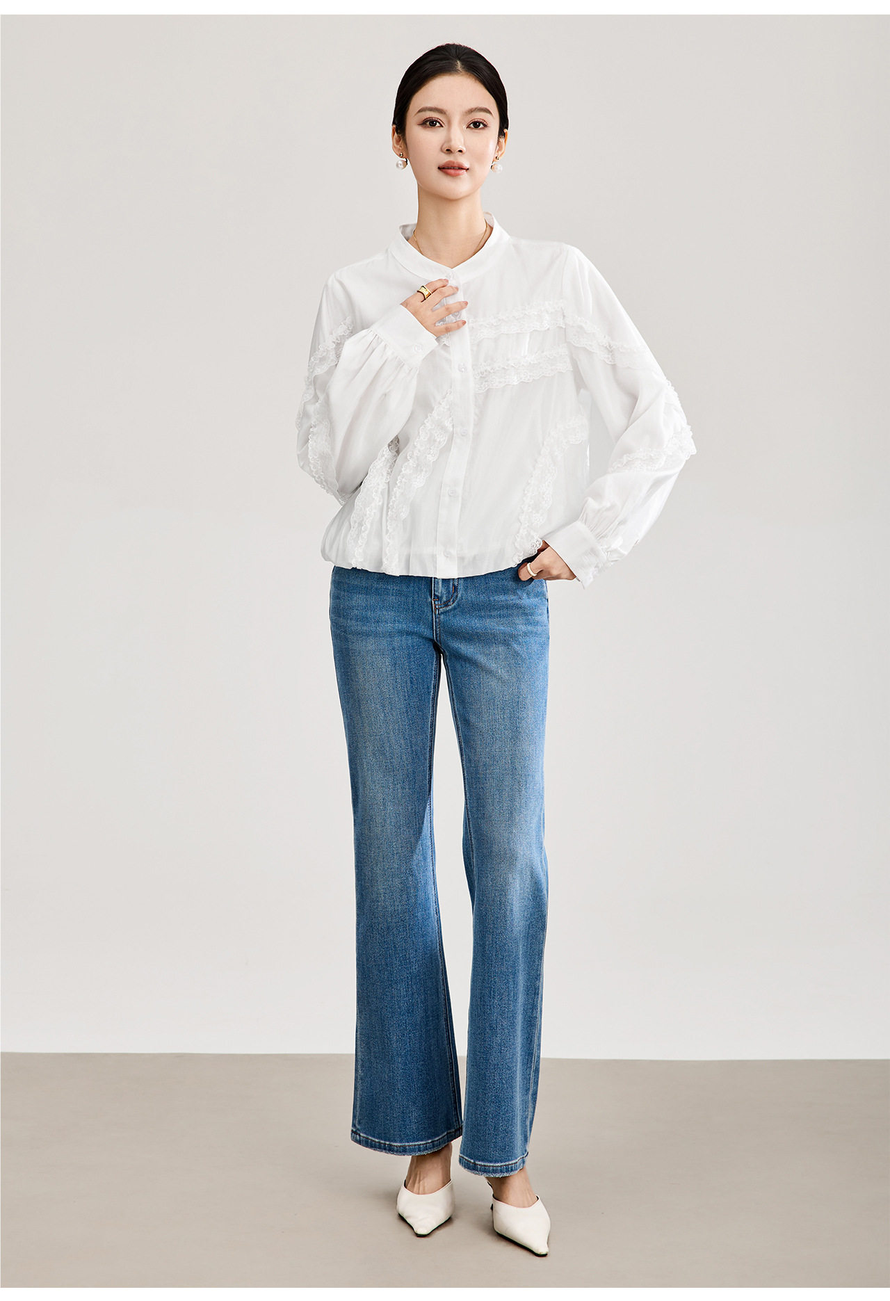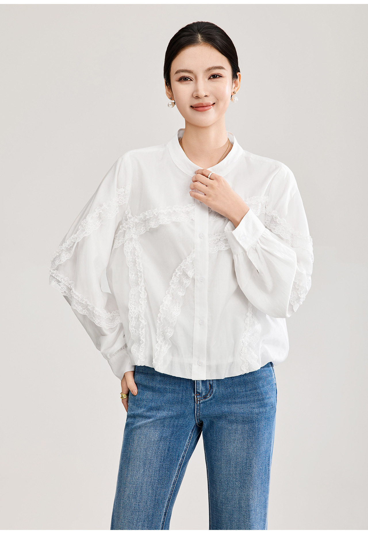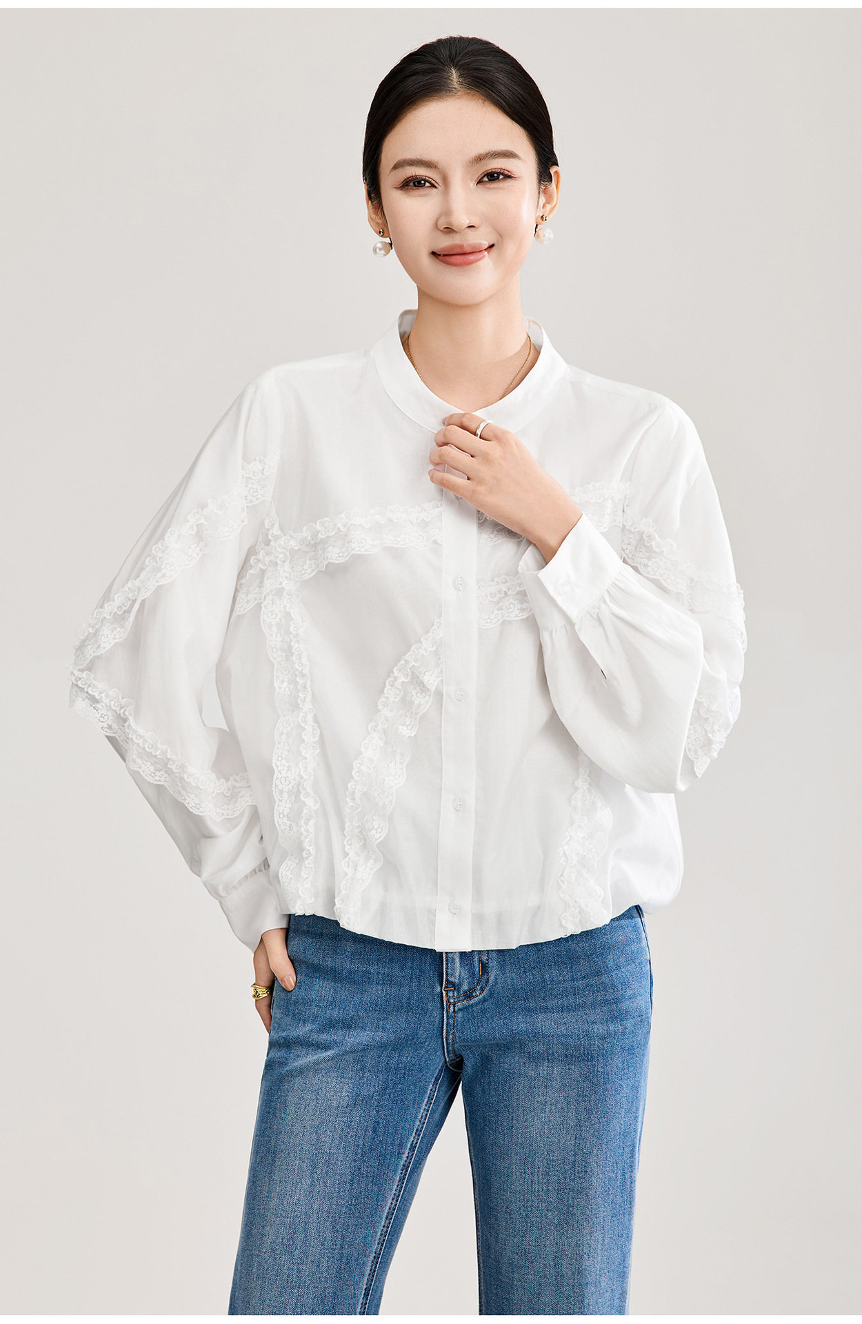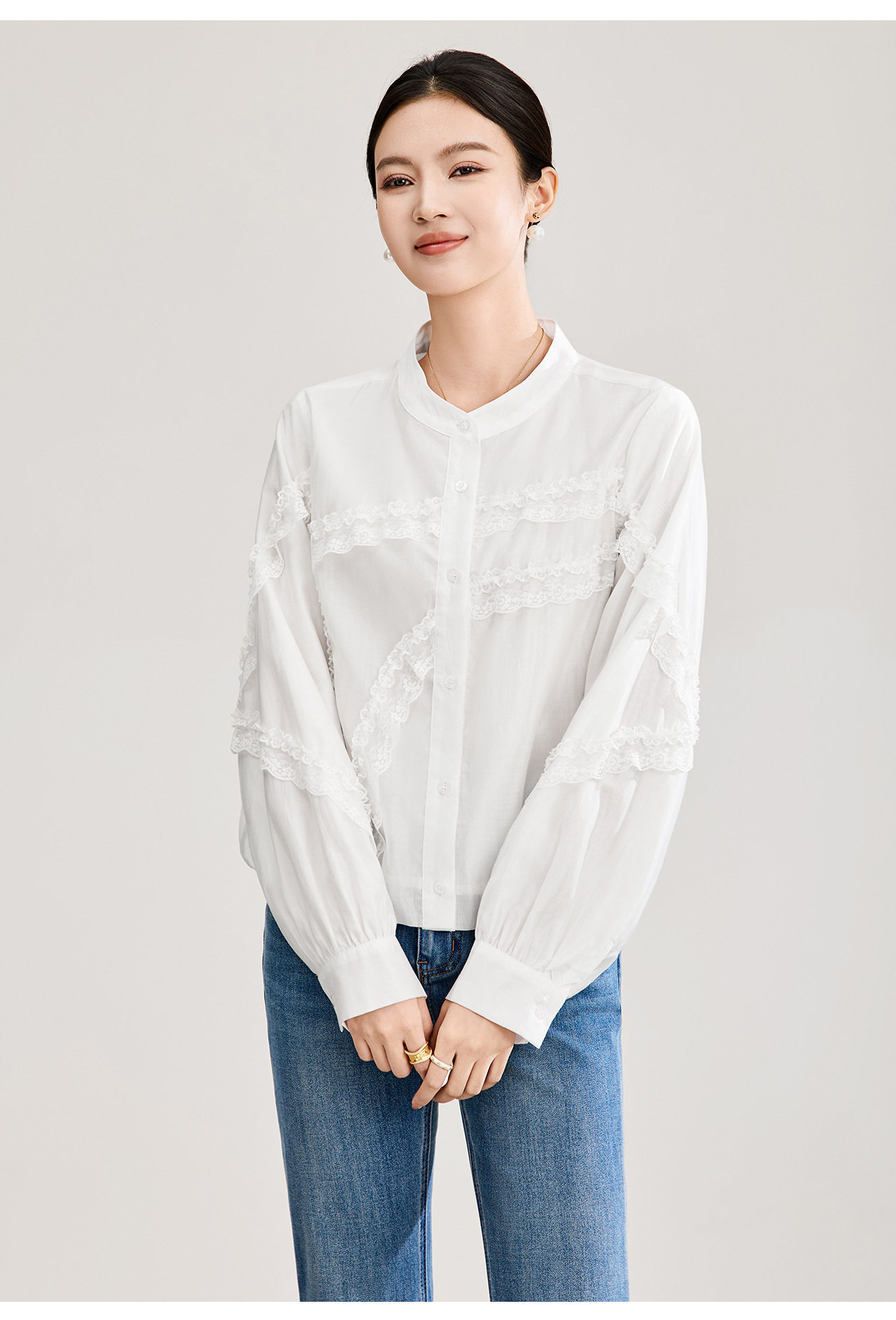 「高货wl」全新升级【铂金会员275/天猫369/差价94】(00843)洛诗琳法式气质蕾丝拼接衬衫2026春季新款天丝刺绣上衣