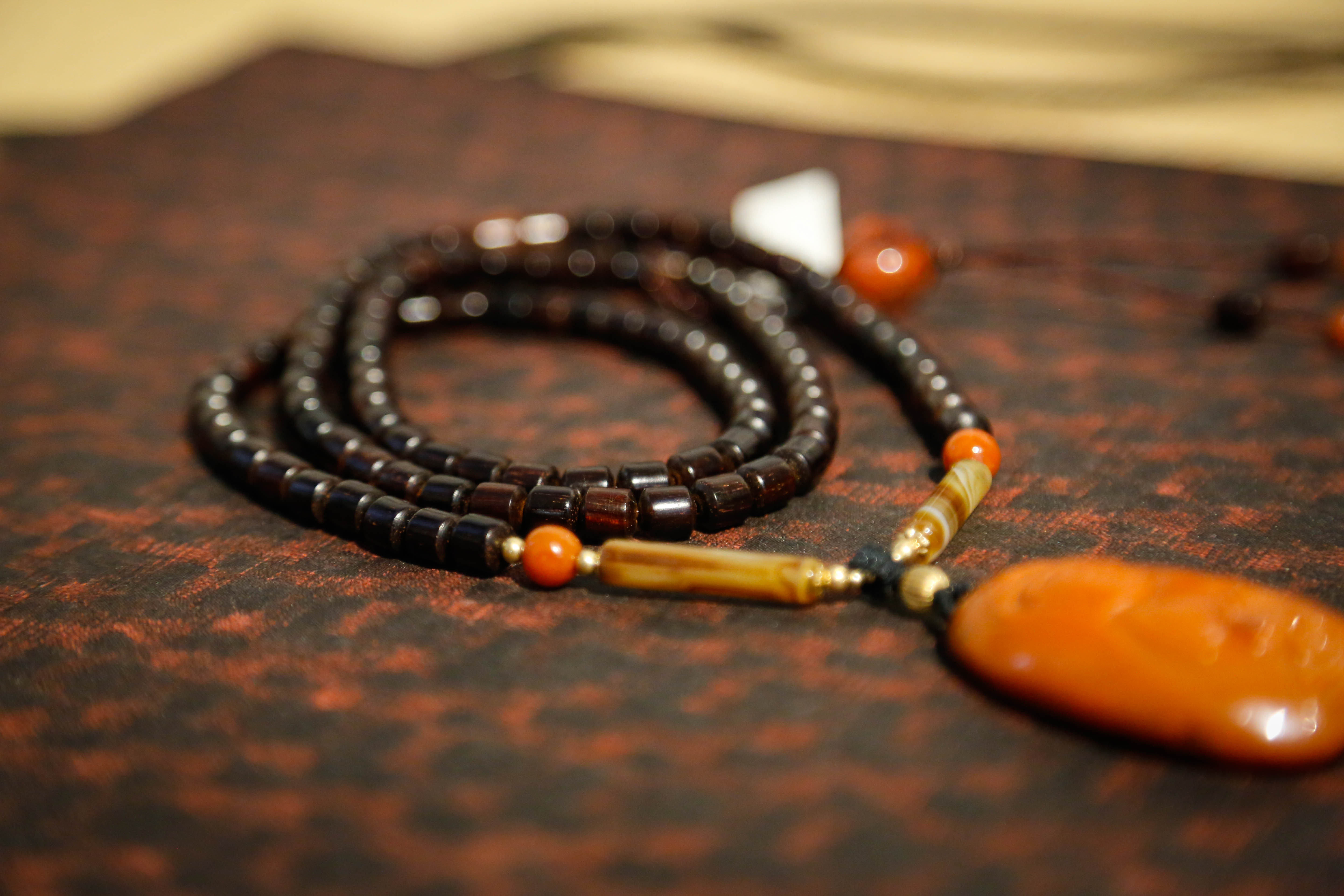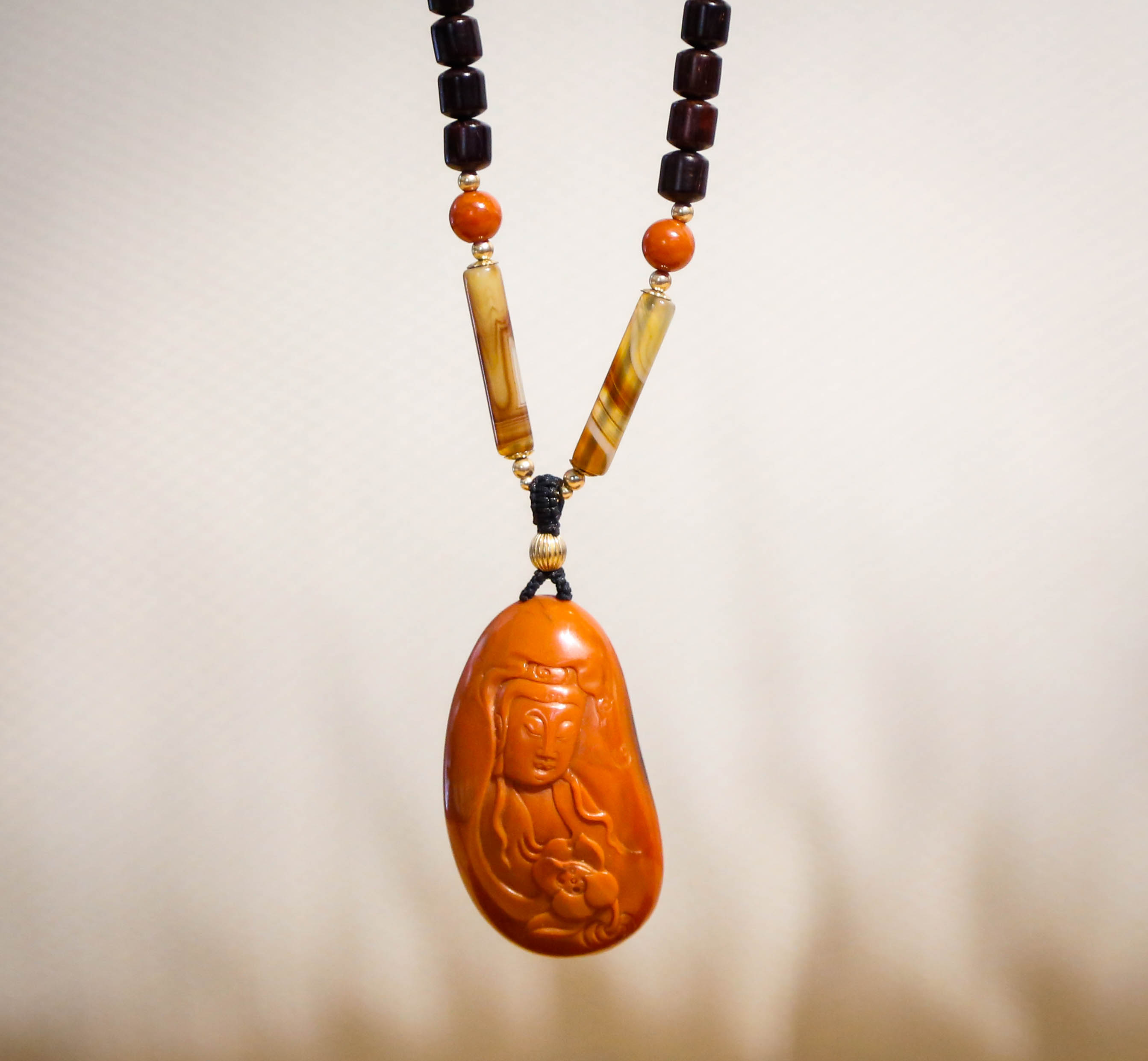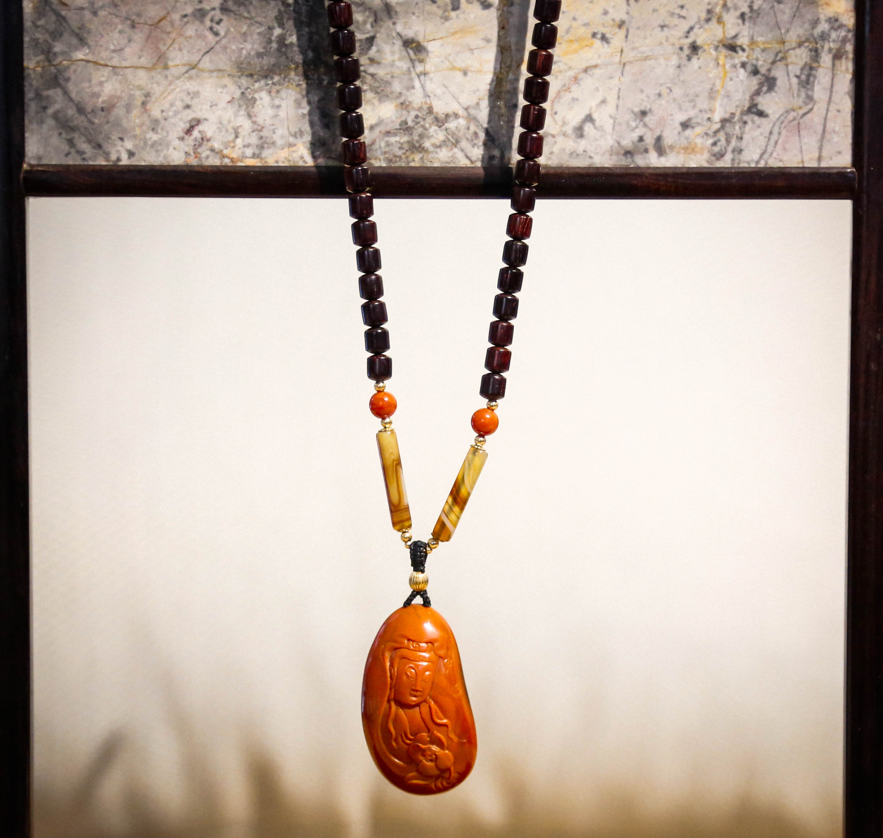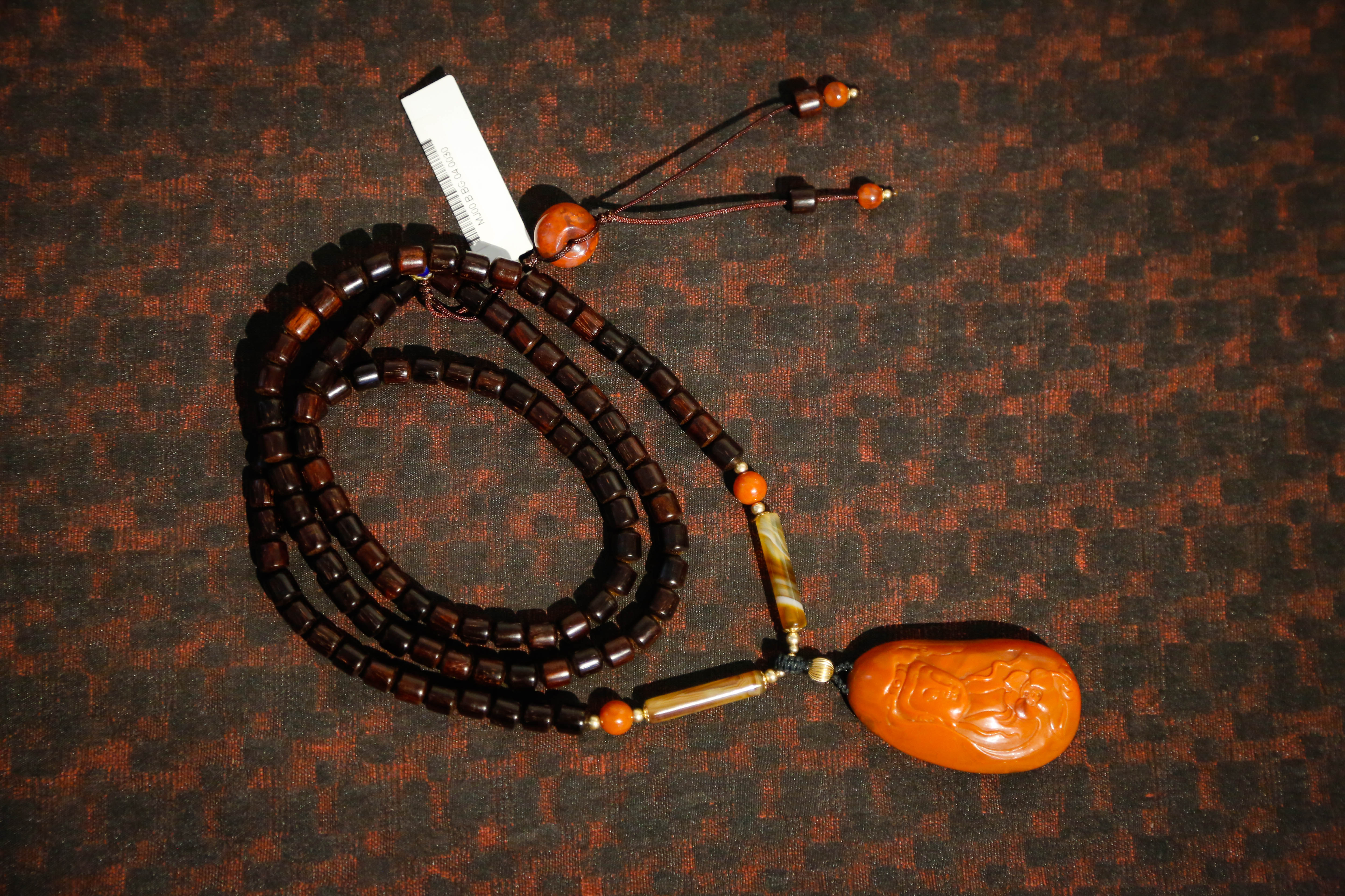 「小叶紫檀」南红莲花观音筒珠项链 6*6mm
